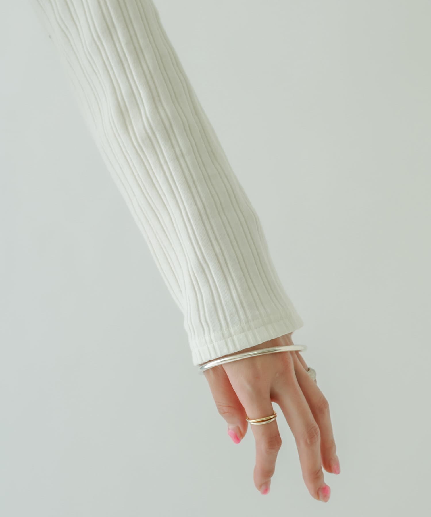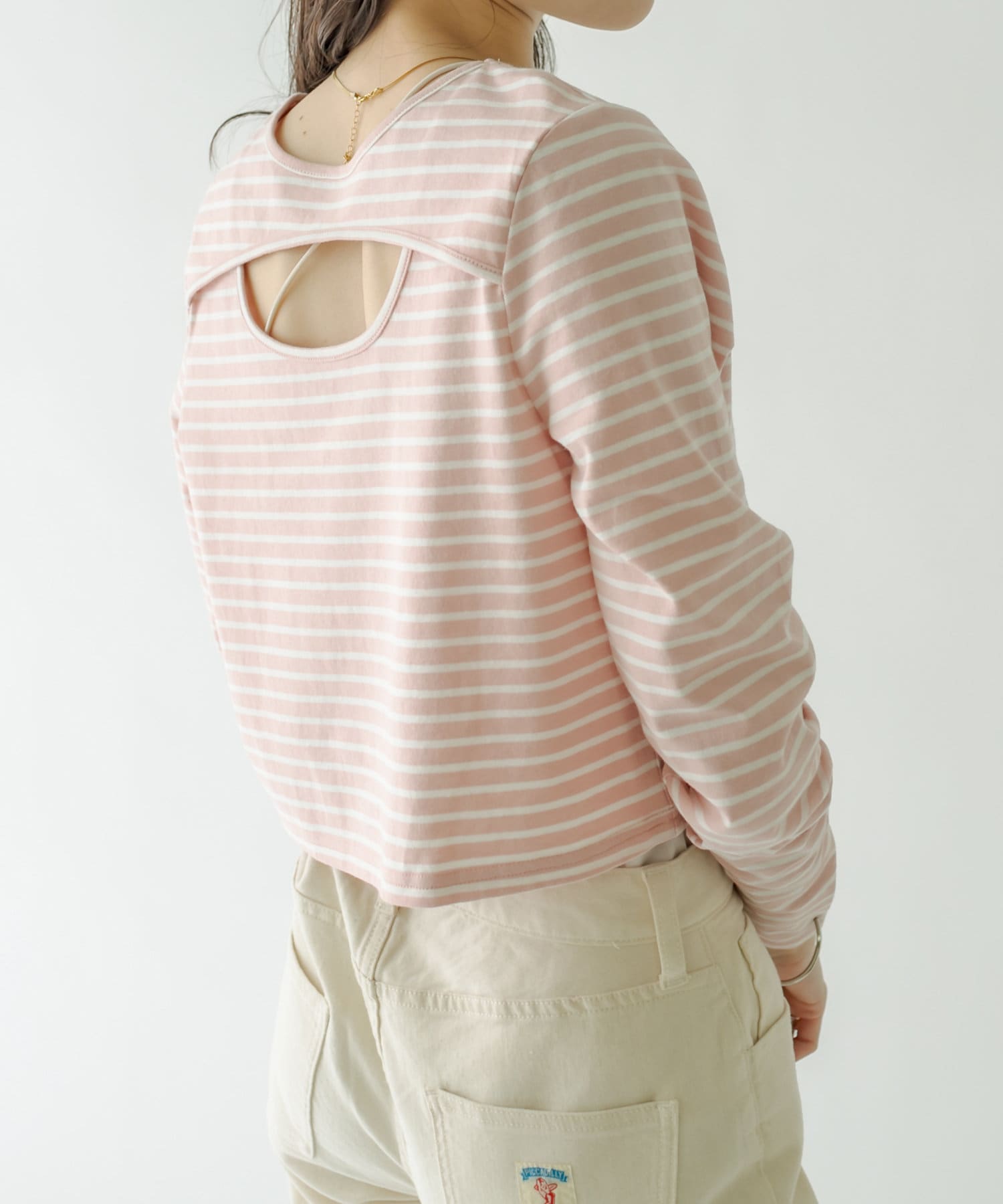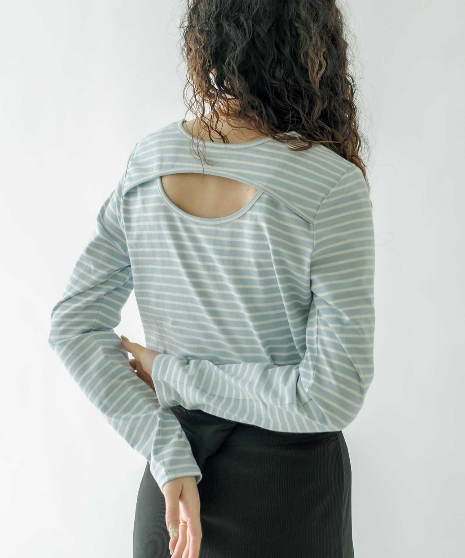 ・無地は伸縮性のあるリブのカットソー素材、ボーダー柄は天竺カットソー素材と異なる素材感です。