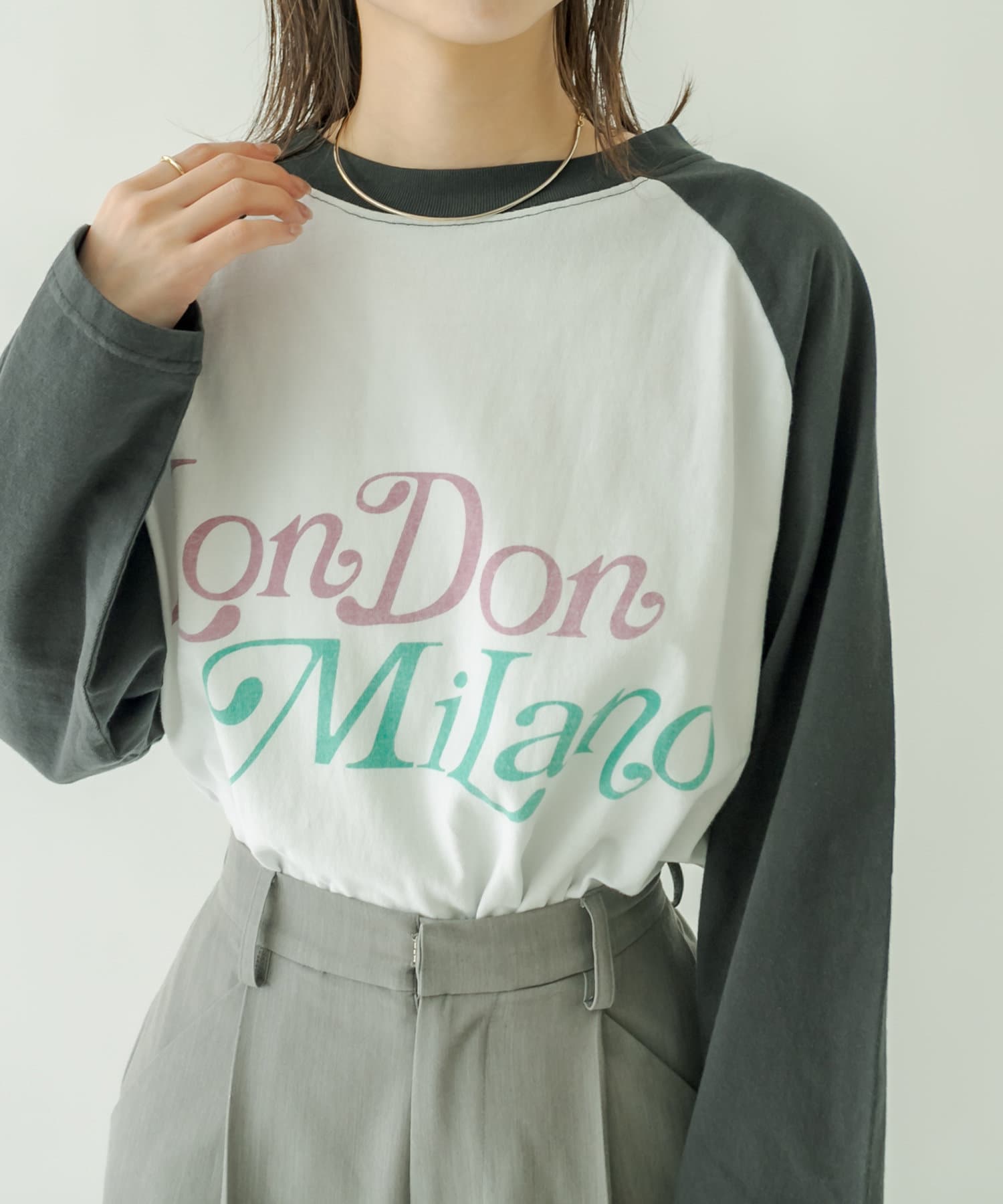 ・ラグランスリーブのカジュアルなロンTはこなれ見え間違いなしのアイテム。