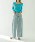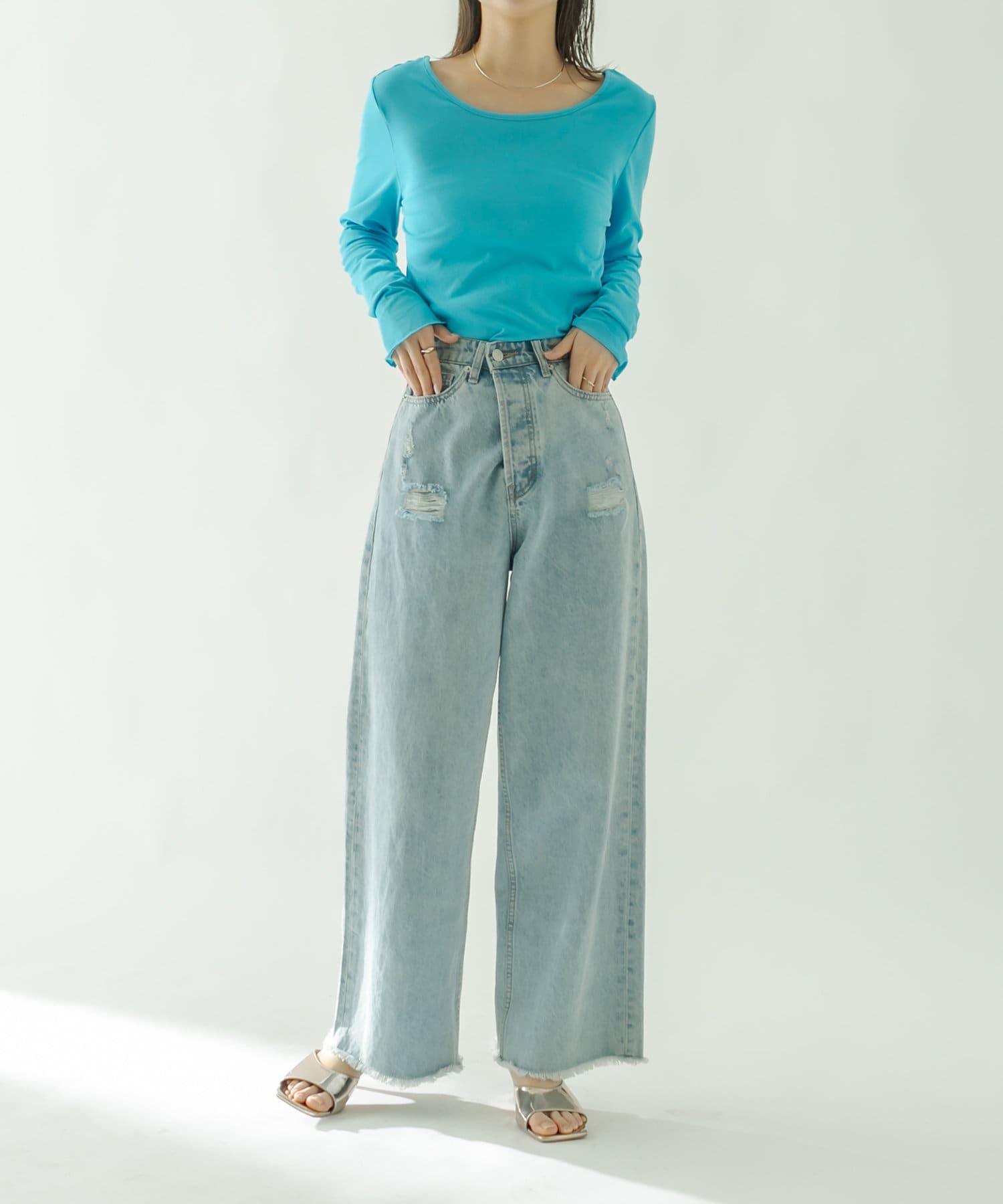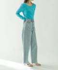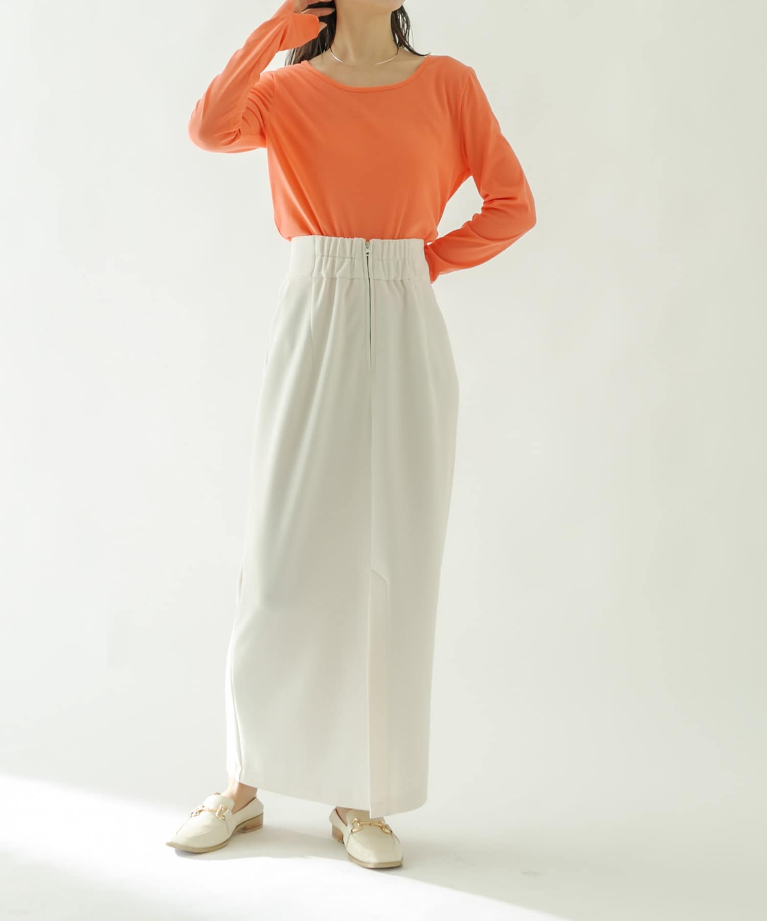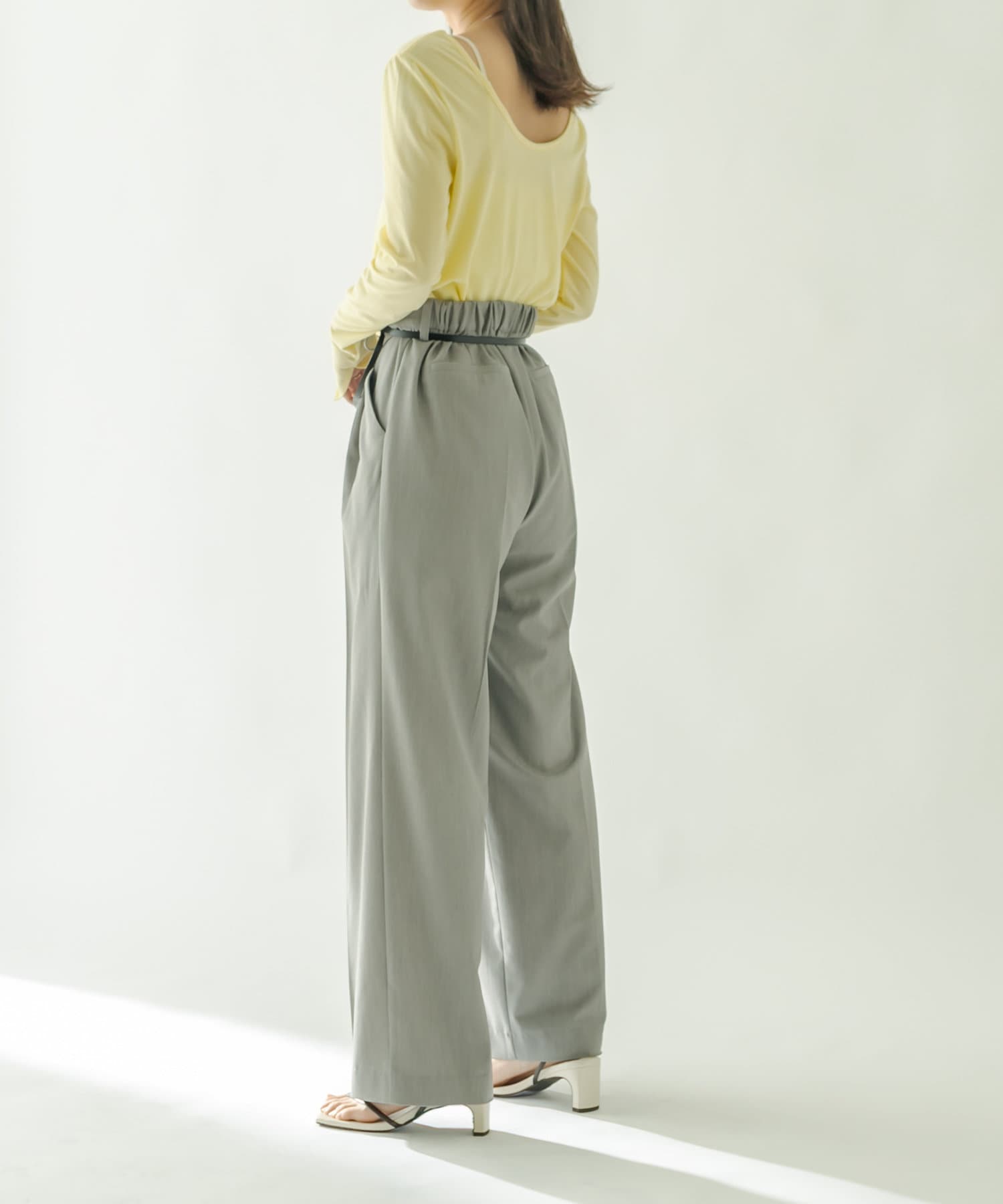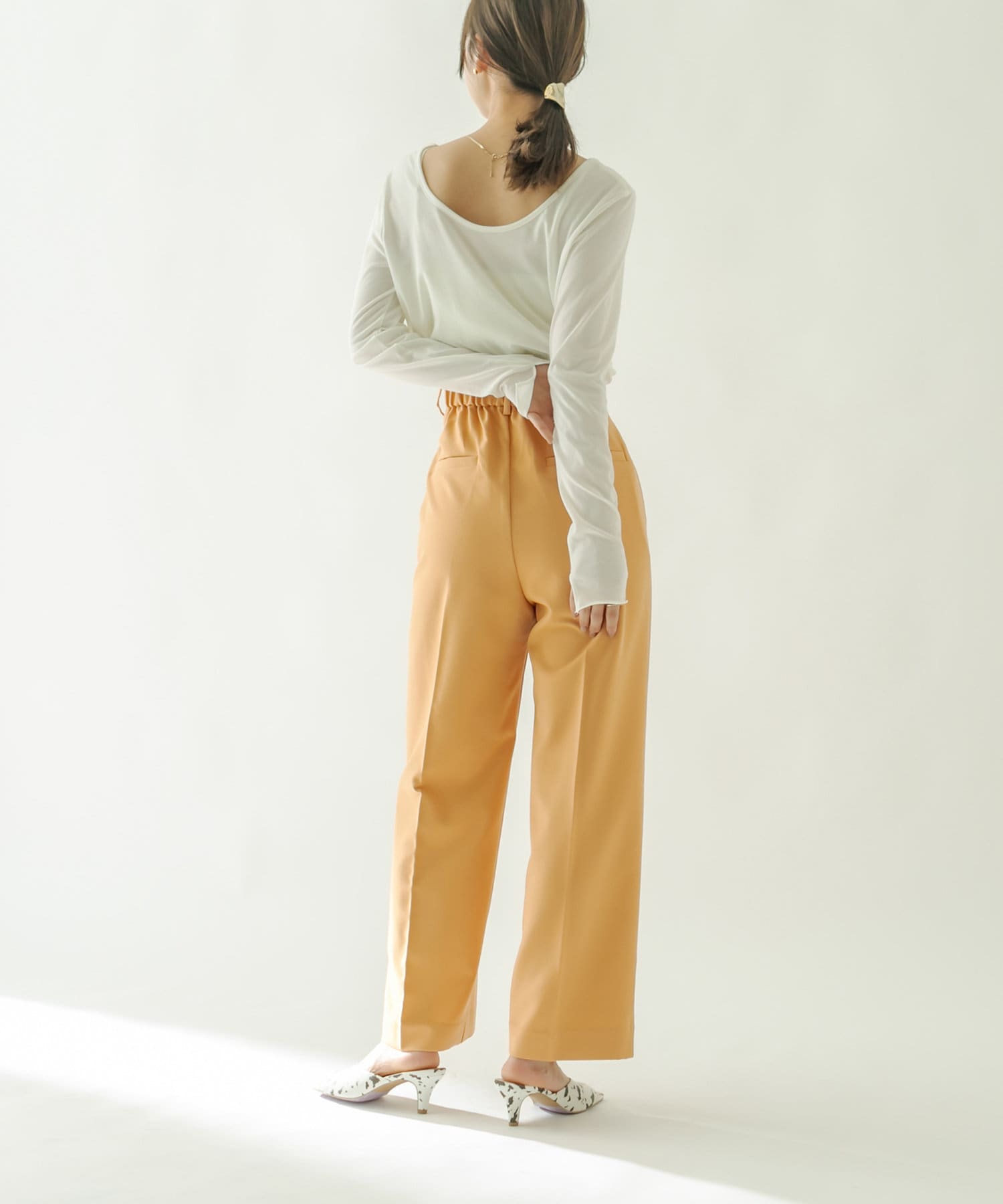 ハイウエストボトムに合わせてシンプルなスタイリングに◎