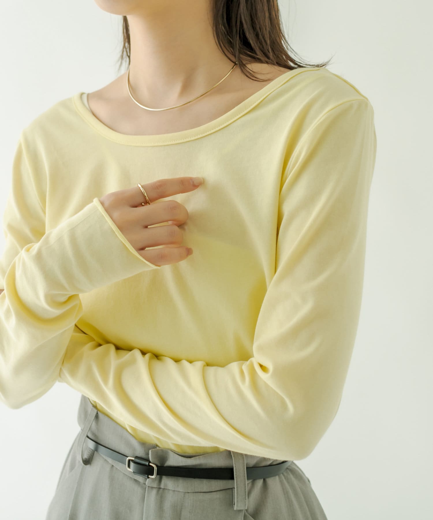 程よい透け感とフィット感、柔らかくて着心地の良い生地でとても使いやすいインナーです!黄色えお購入しましたが、ジレに合わせたり一枚で着たりと、汎用性が高くて本当に買ってよかったと思っています!