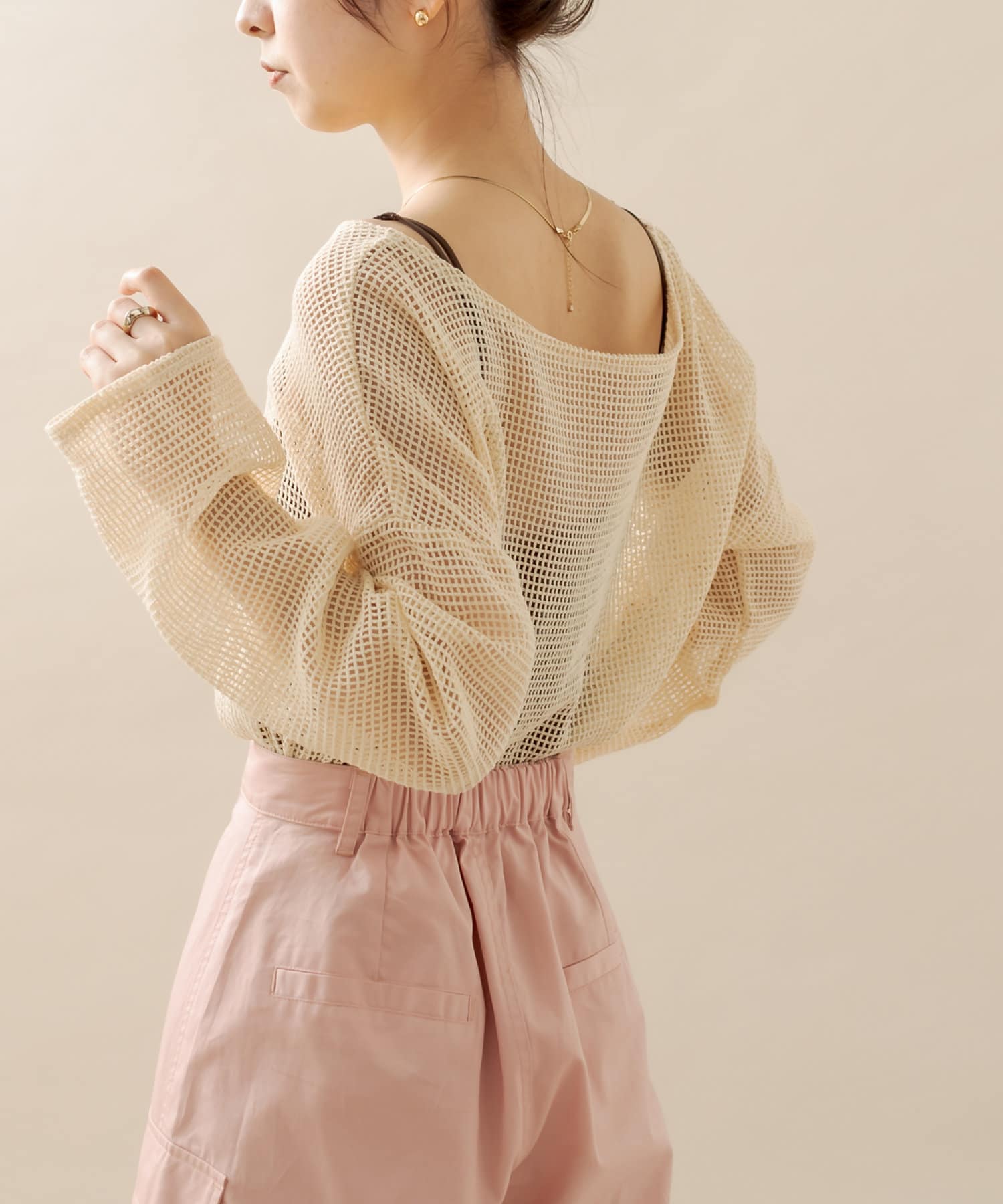 シンプルな網目なので無地インナーはもちろん、カラー使いでも印象が変わります