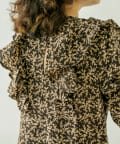 ・胸元のフリルデザインが華やかな印象に。