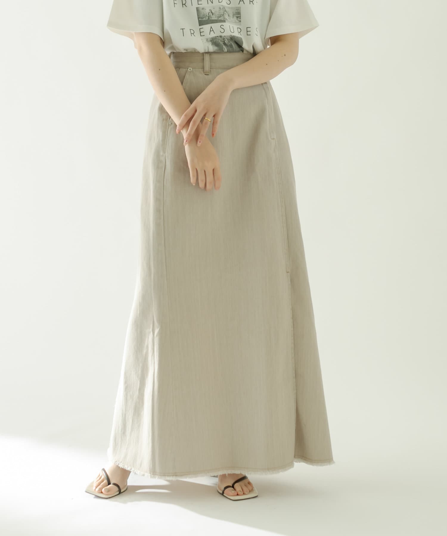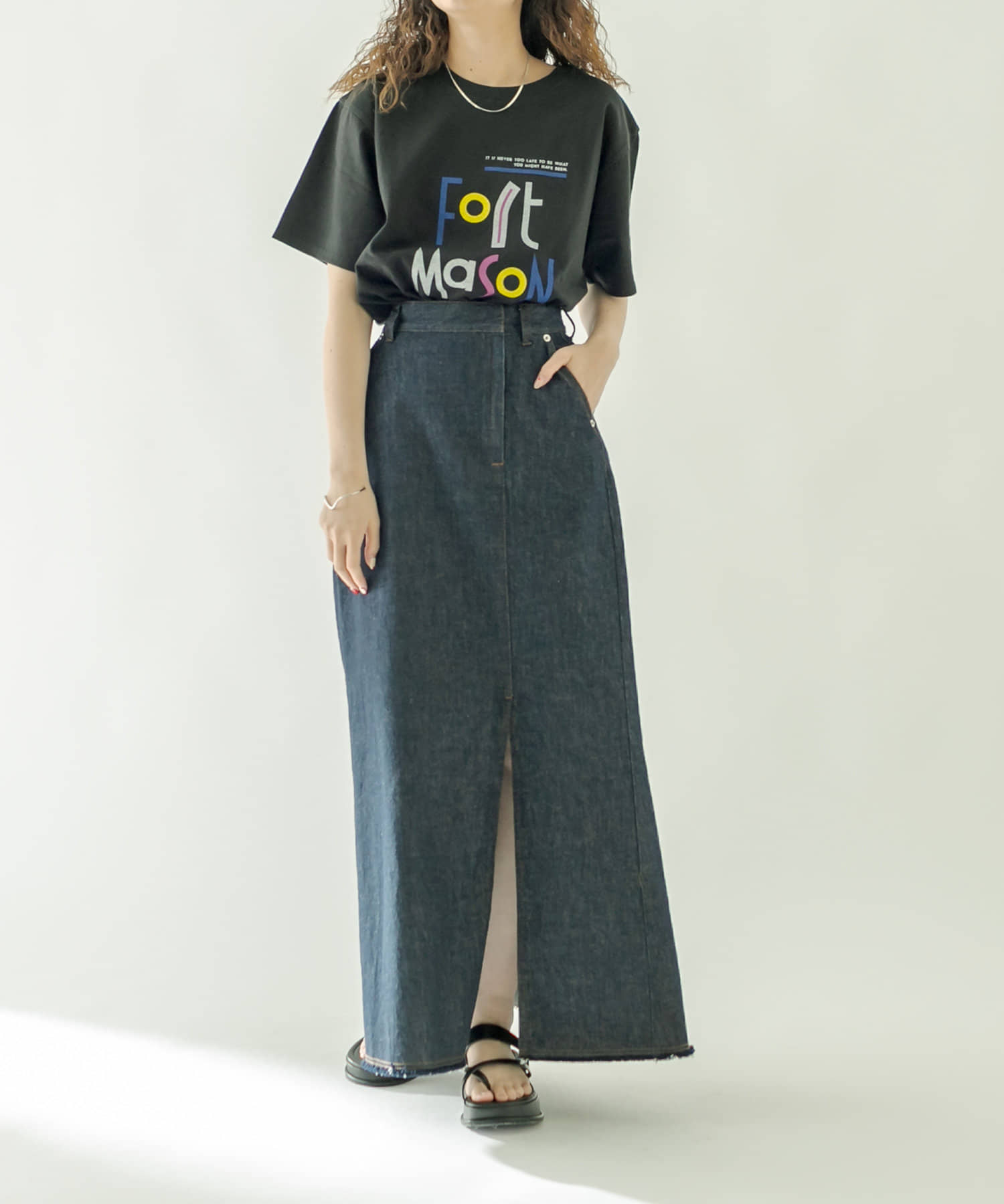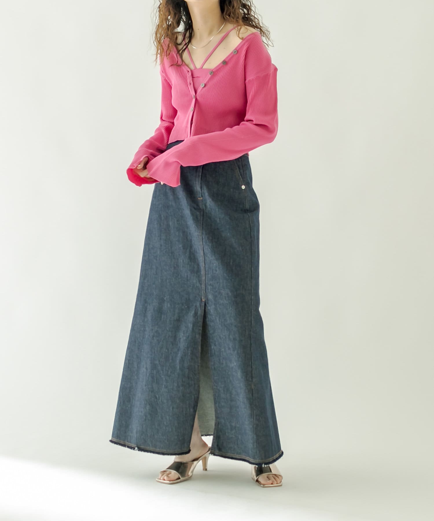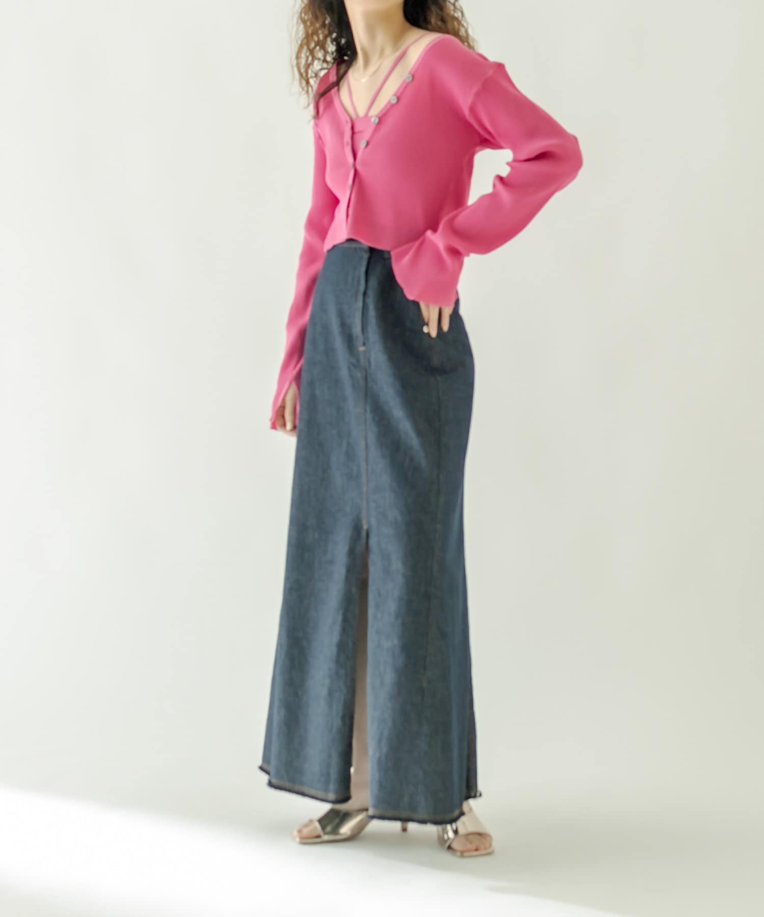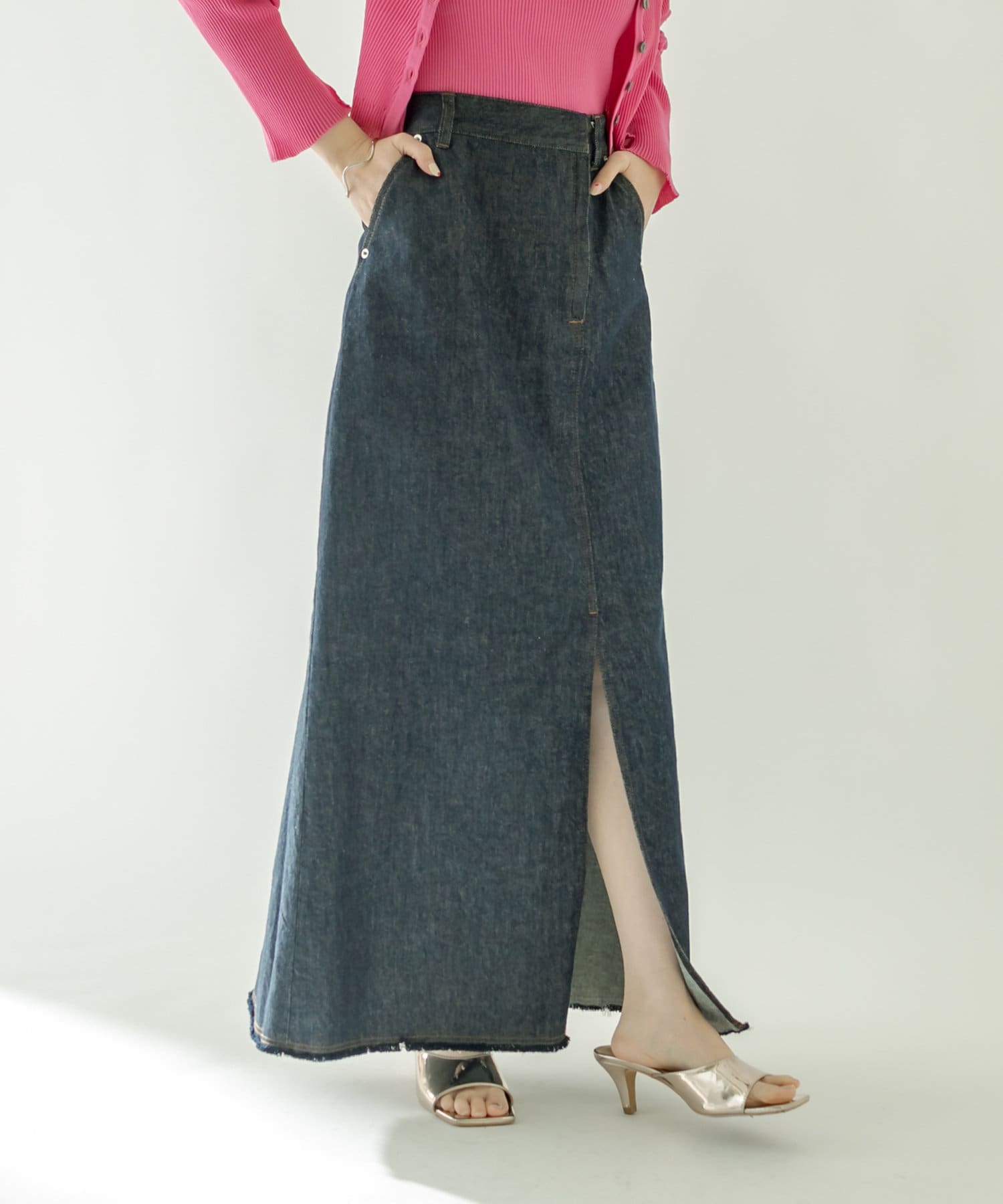 ・前スリットがスタイリングに抜け感をプラスしてくれます。