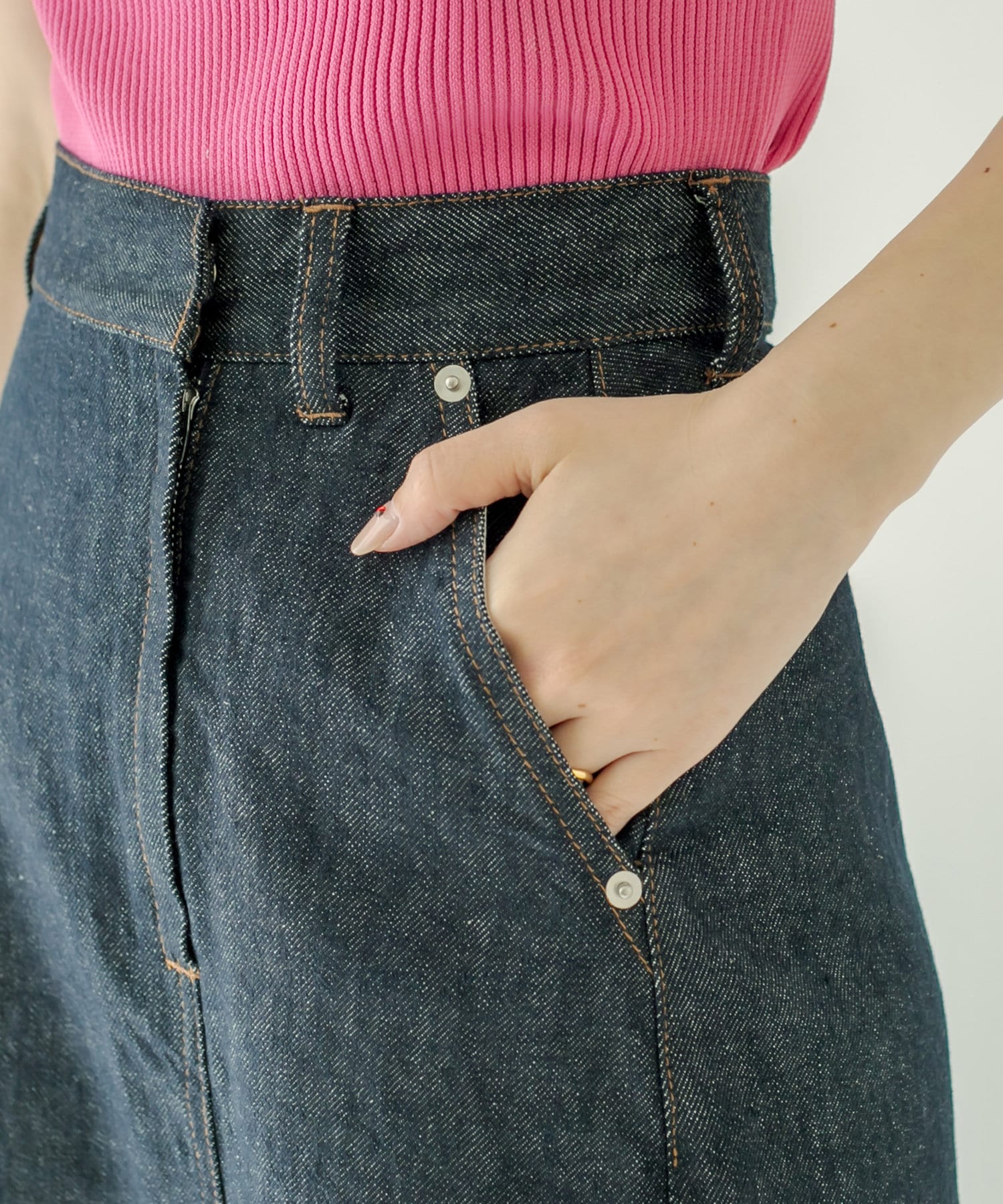 ・ハイウエストデザインなのでコンパクトなショートトップスとは相性抜群◎