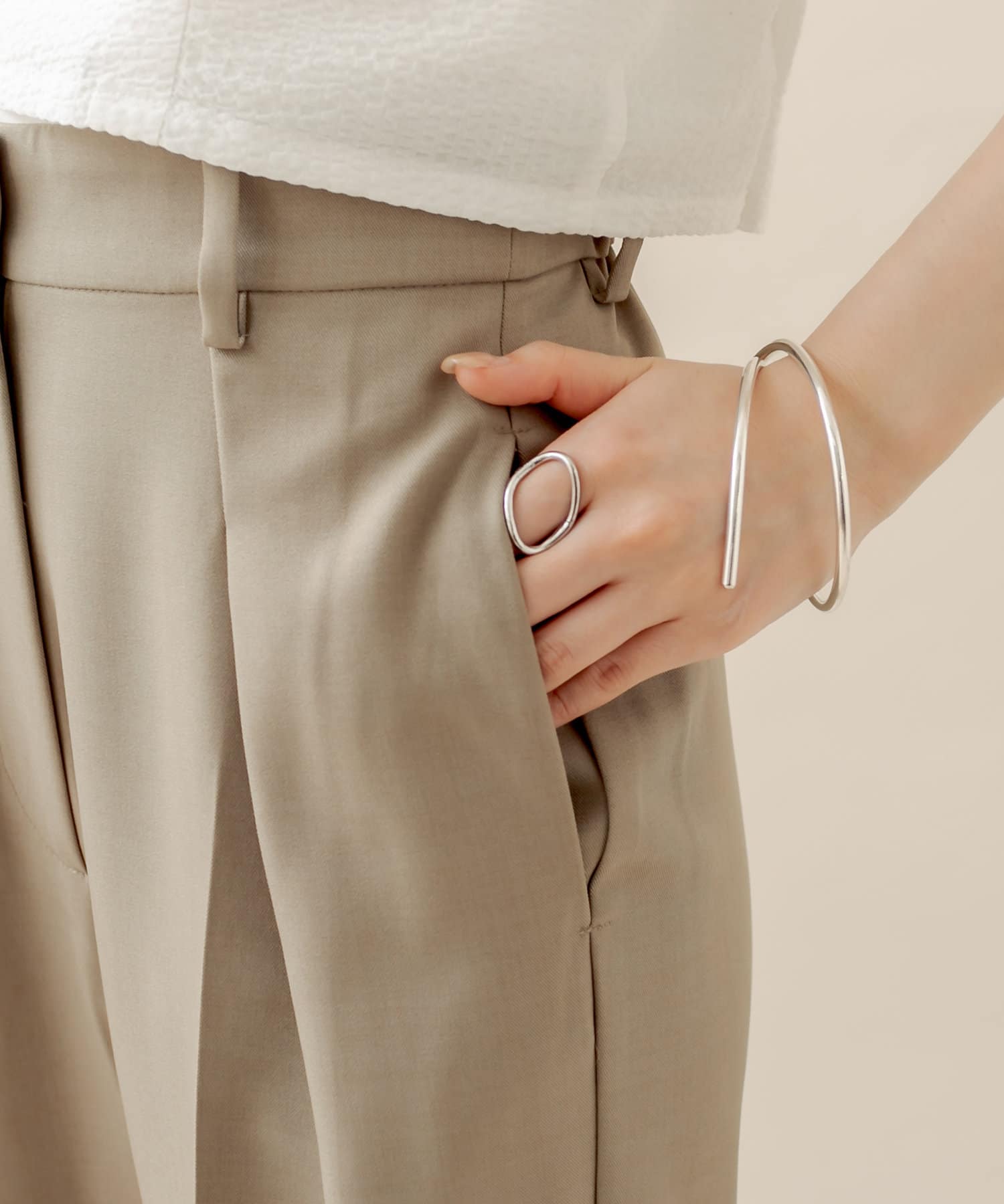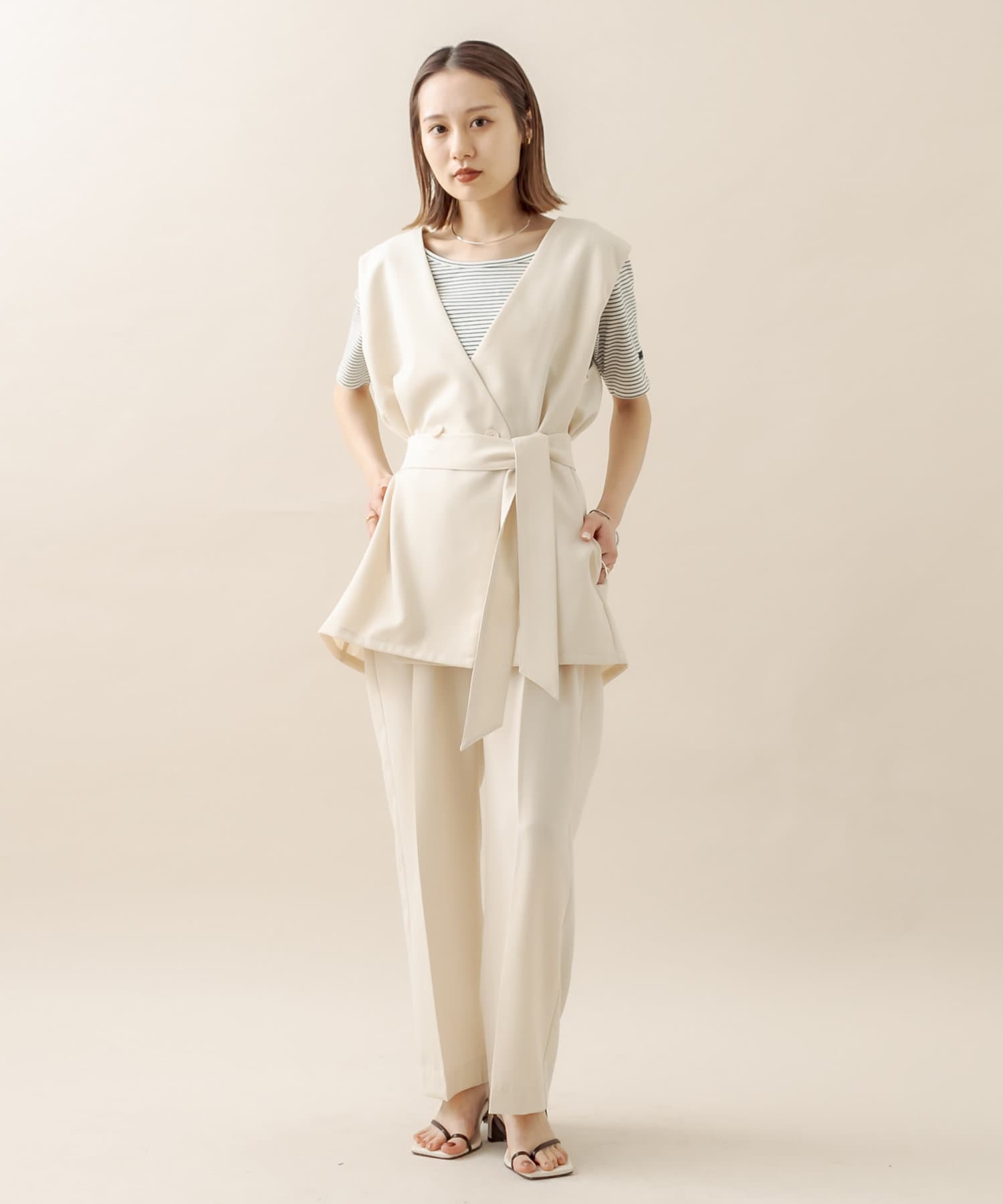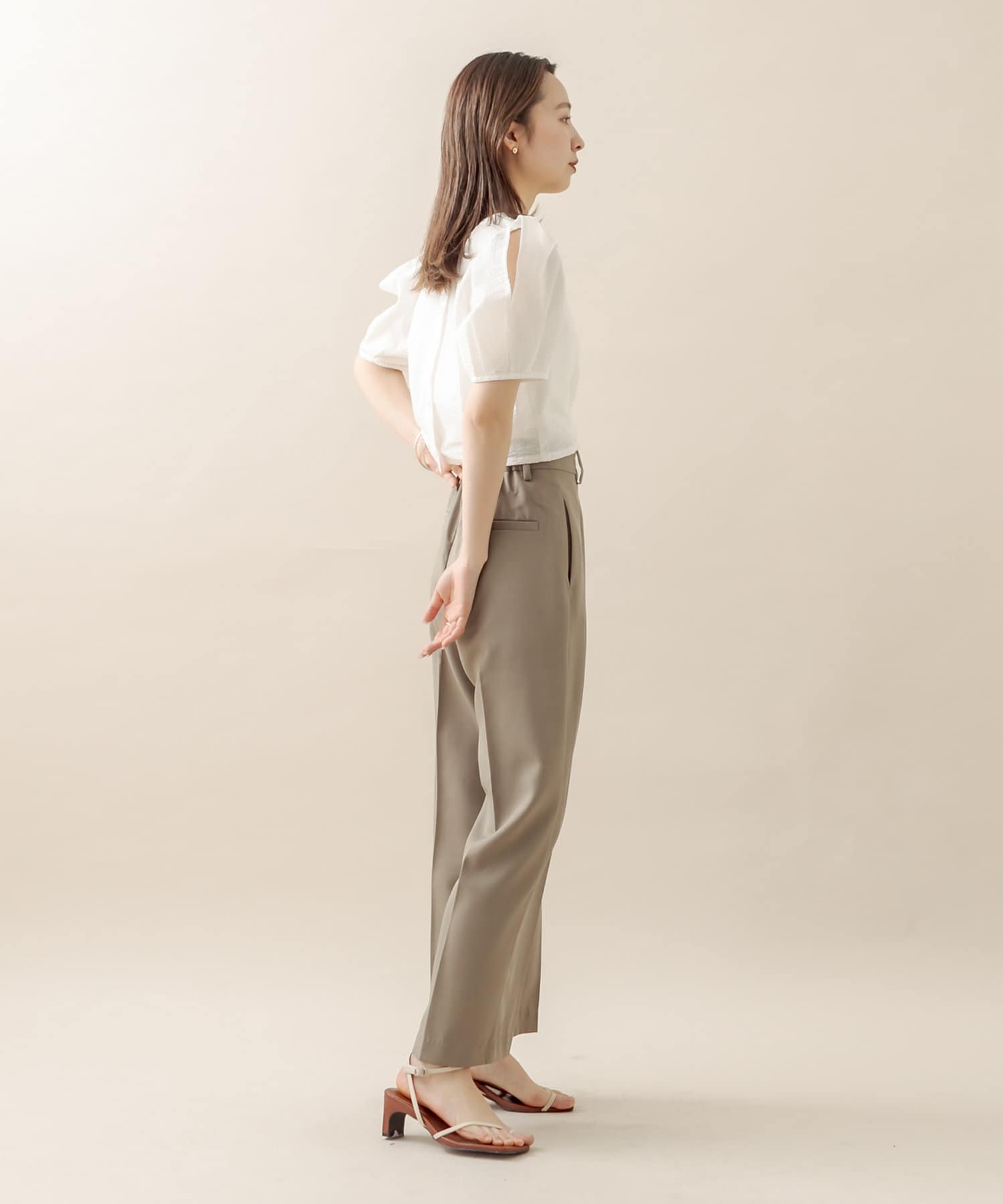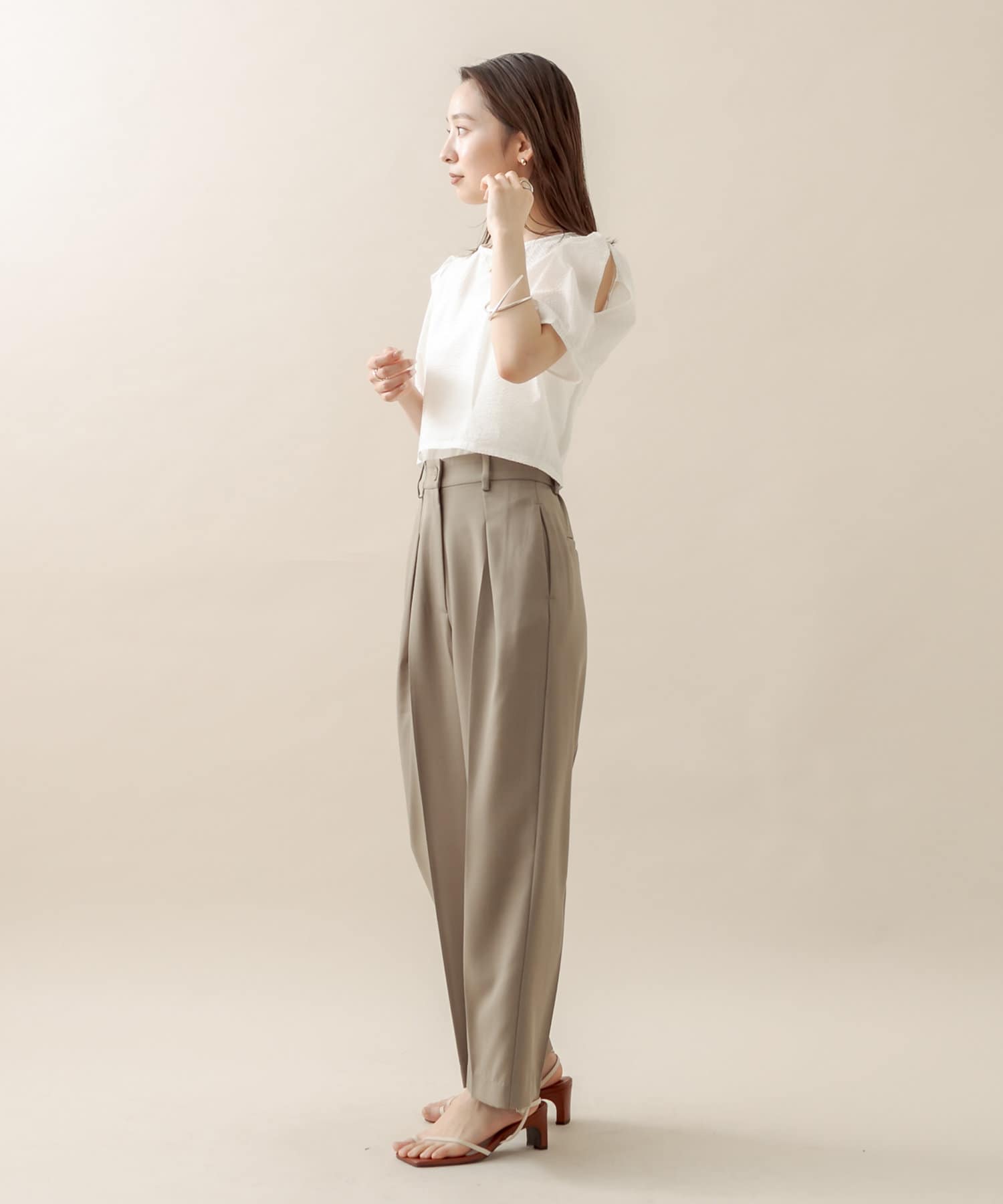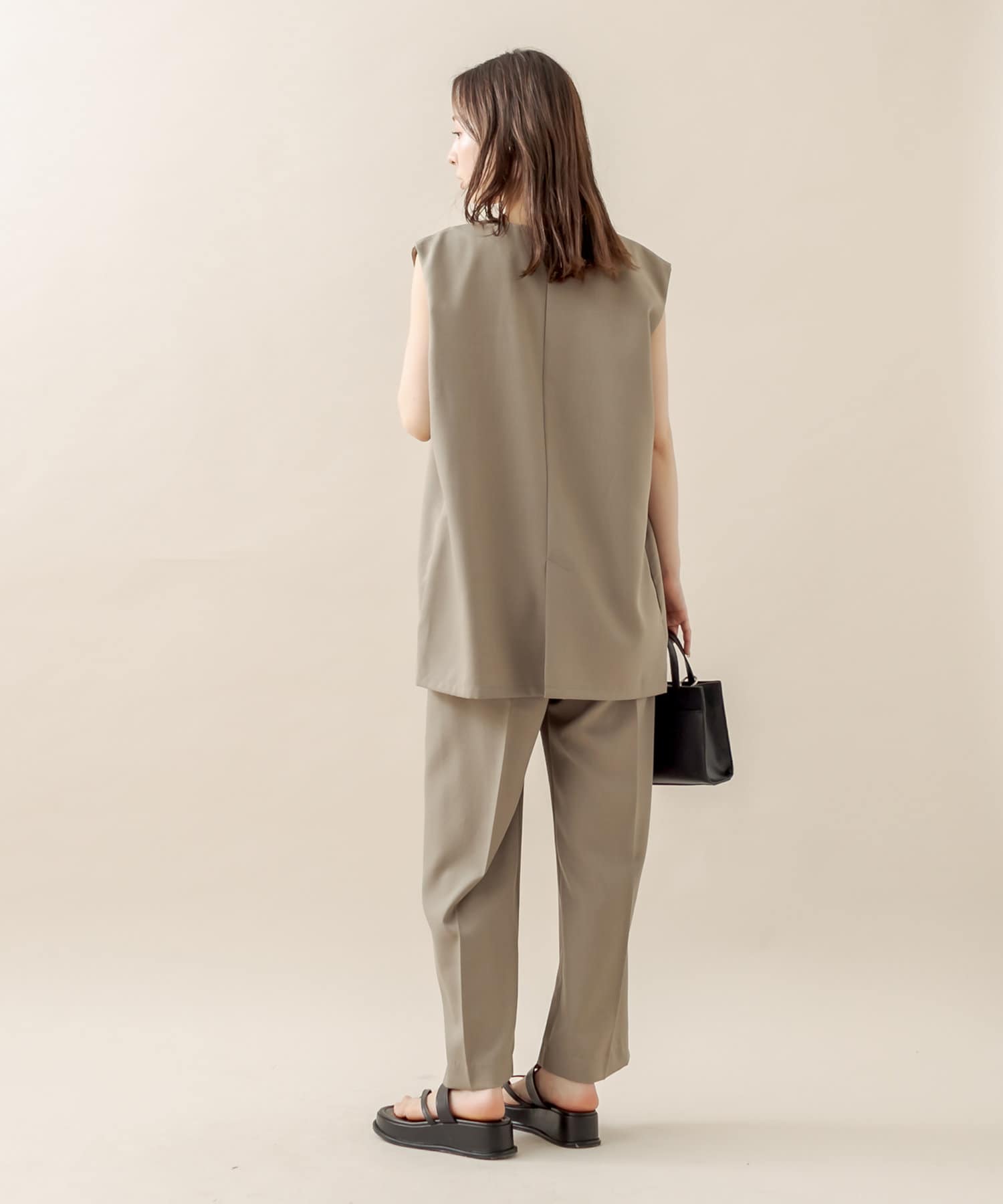 ジレと合わせてセットアップで着たくて、購入しました!軽い素材で動きやすいのに形もすごく綺麗で万能すぎます♡