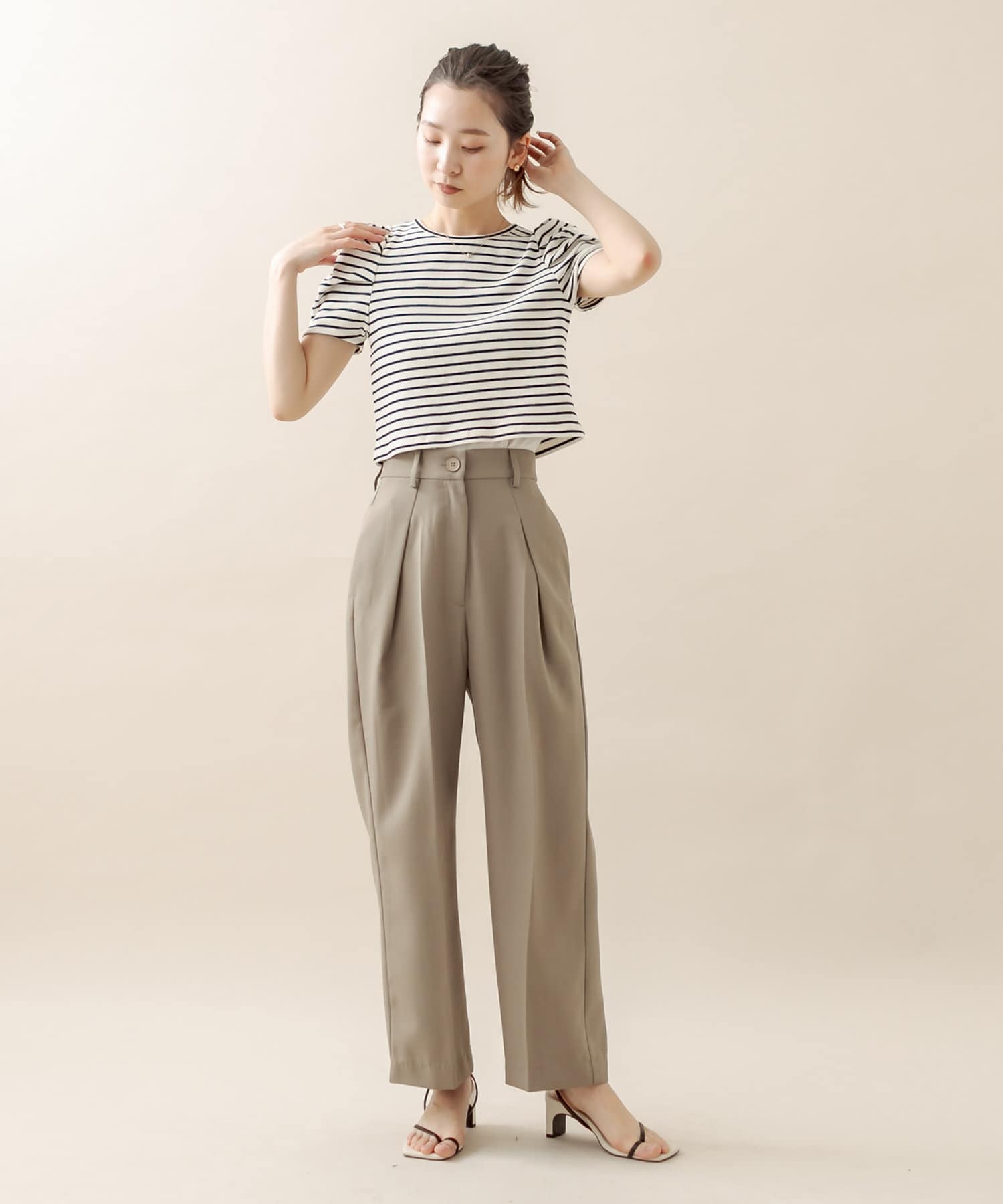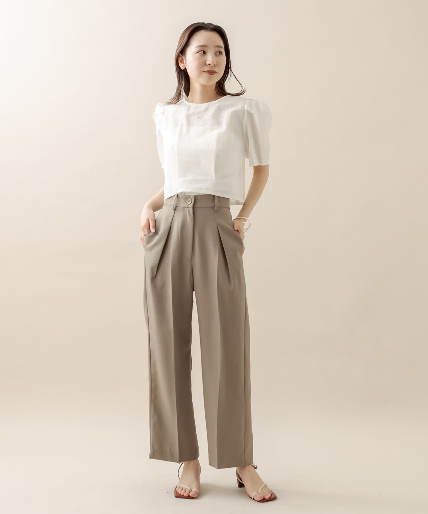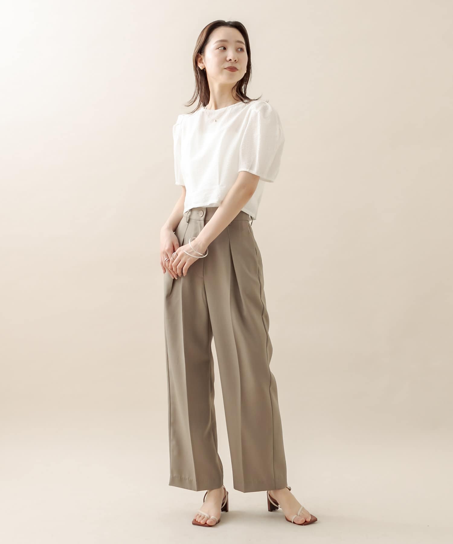 合わせやすいBEIはトップスのカラーを選ばないカラー!カジュアルにもフォーマルな場面でもお使い頂けます