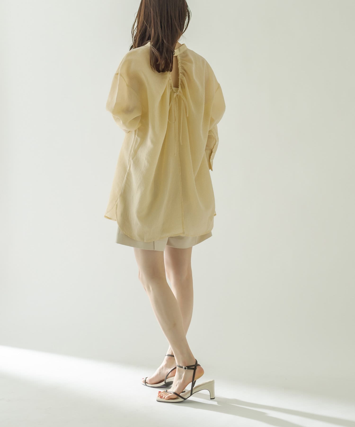 購入場所:パルクローゼット後ろのデザインが可愛すぎます!結ばず、サラッとシャツとして着ても可愛く着ることができ、色も可愛く2色買いしちゃいました!
