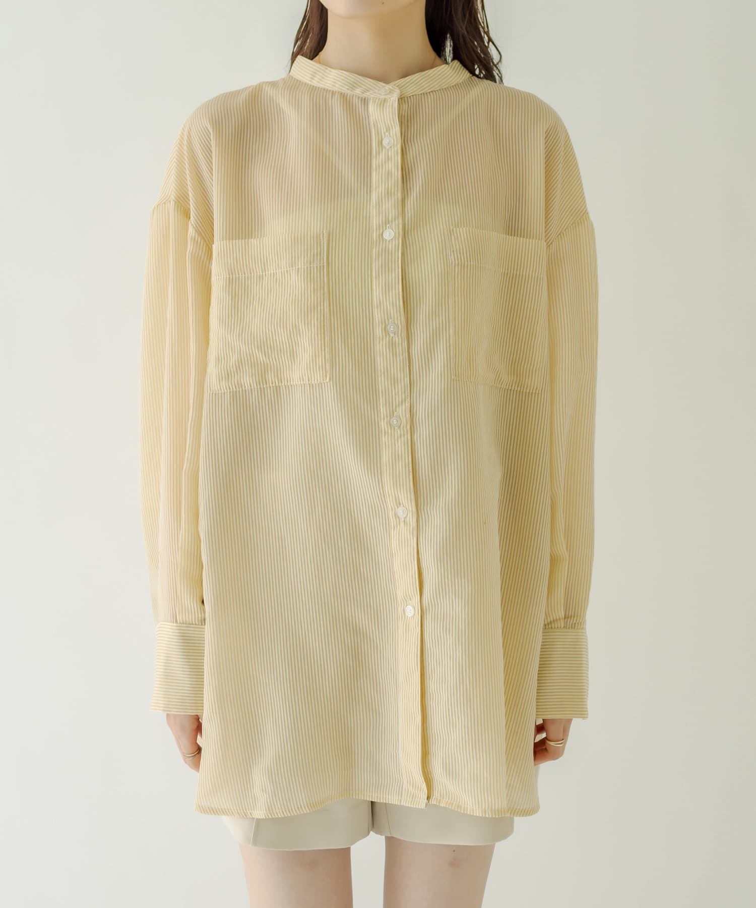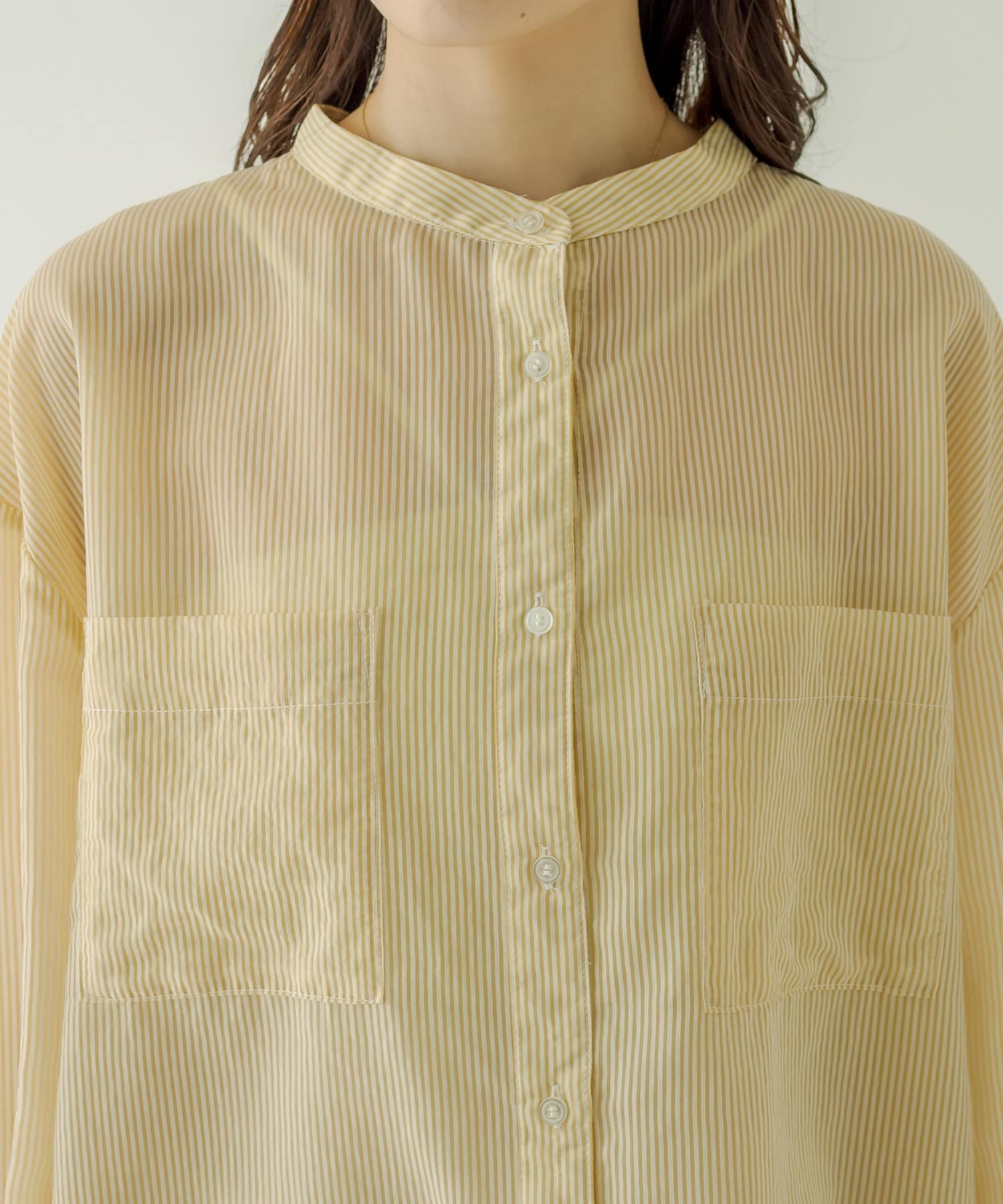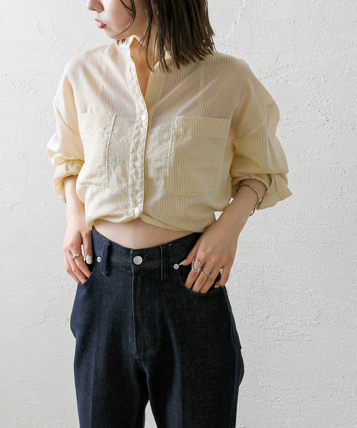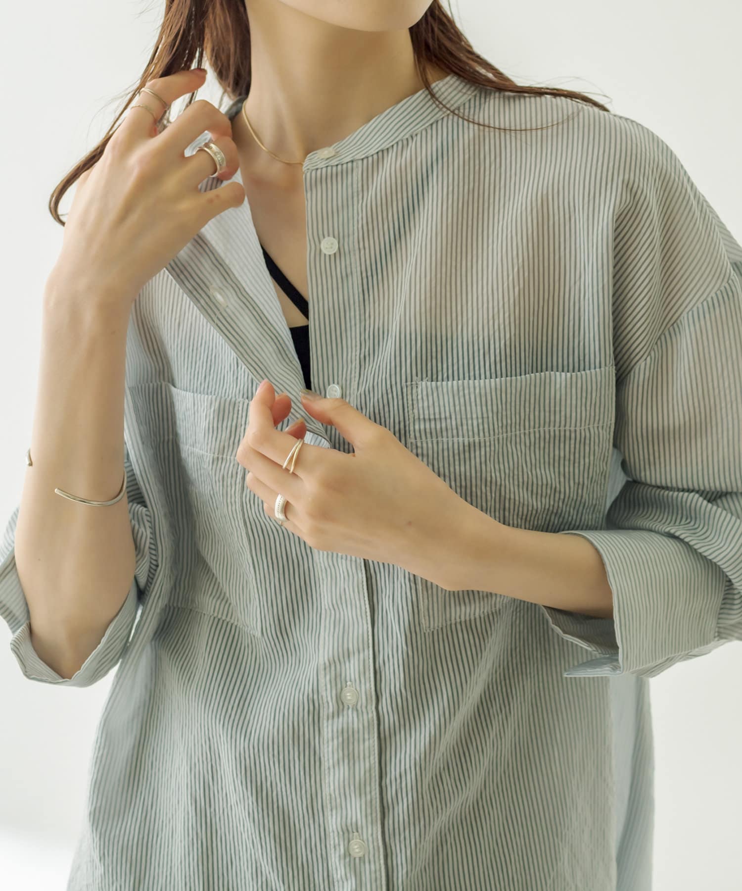 サイズ感タイトゆったり軽さ重い軽い厚み薄い厚いやわらかさかたいやわらかい伸縮性伸びない伸びる透け感透けない透けるストライプシャツ