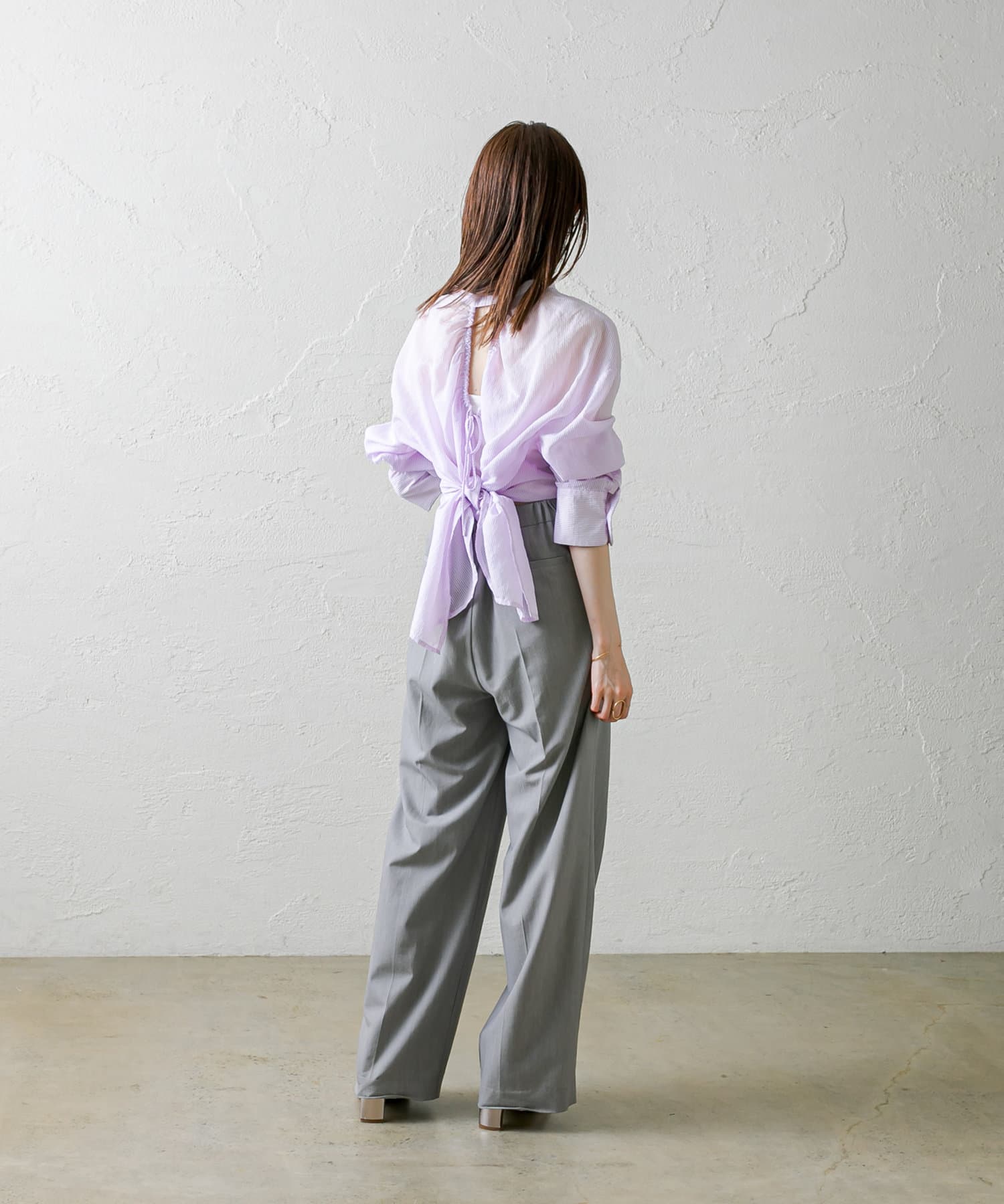 後ろがリボンで結んでもかわいいし、結ばずにパンツと合わせてもおしゃれでよかったです。