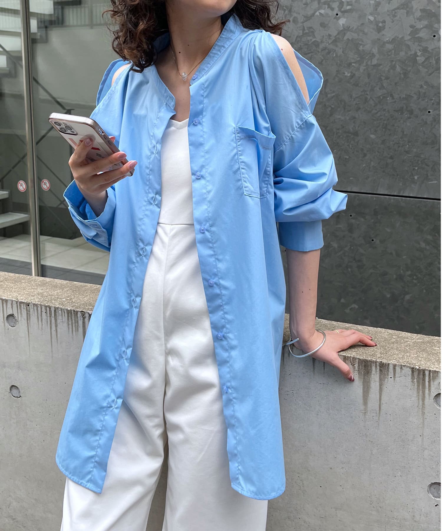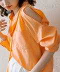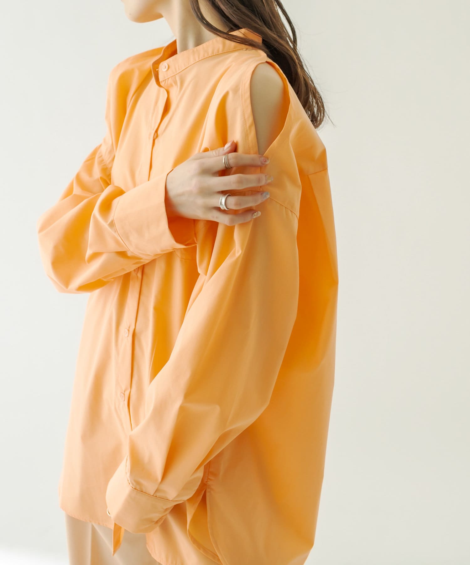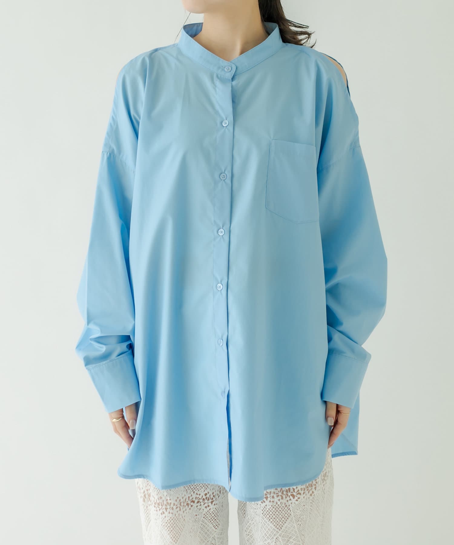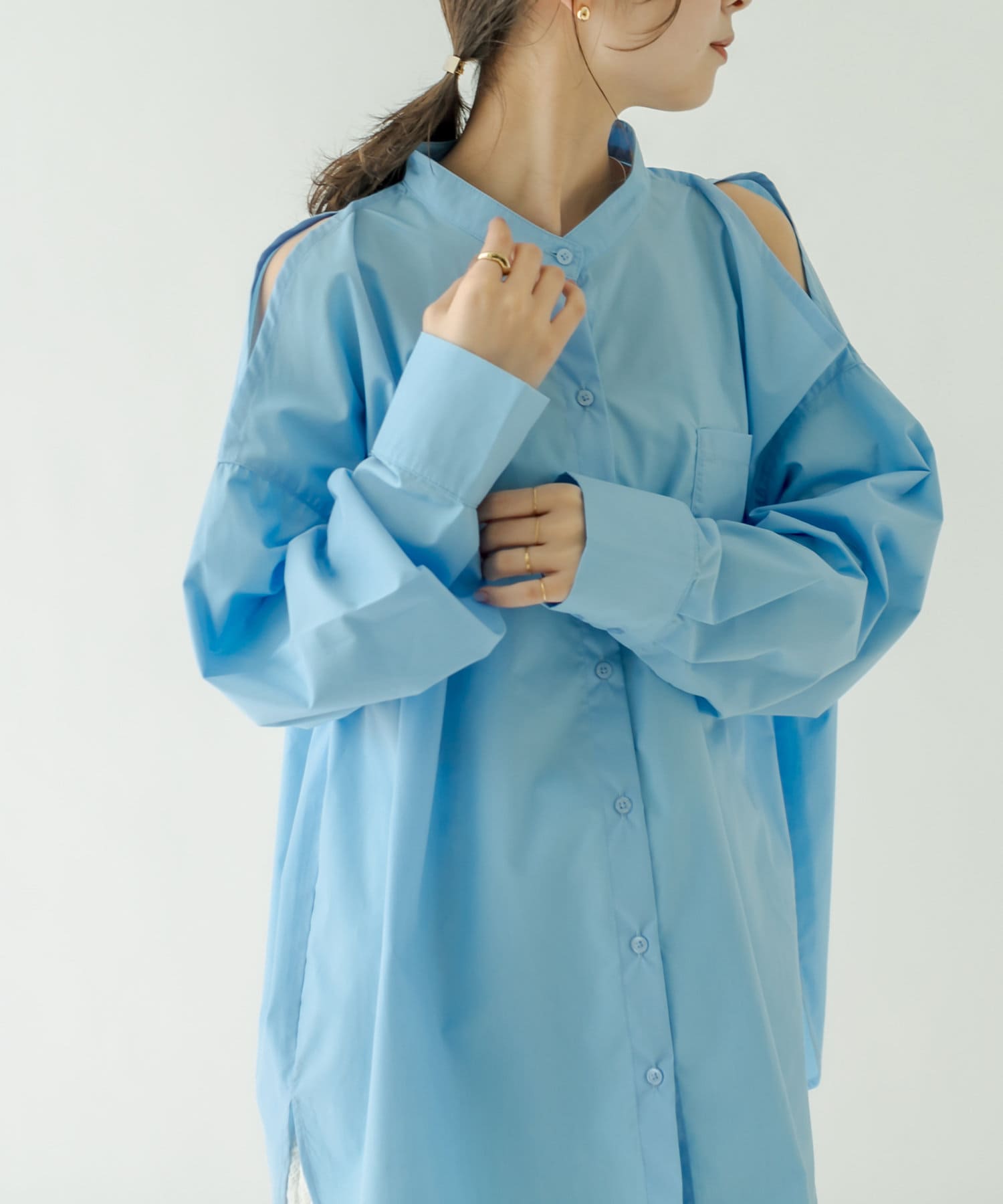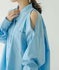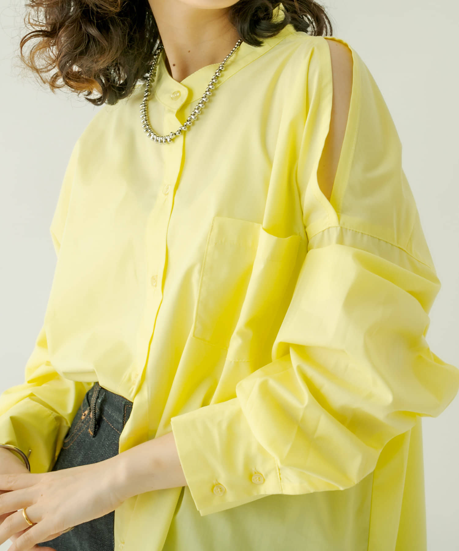 ・肩開きのデザインが1枚でこなれた印象に決まるデザインシャツ。