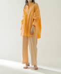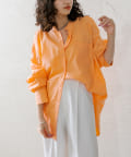 あまり見ない華やかなオレンジ。肌馴染みいい色で、透け感はそこまで気になりません。もちろんインナーは着ますが、シアーでは無いです!