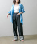 綺麗めなパンツにあわせてスッキリと大人っぽいスタイリングがオススメ◎