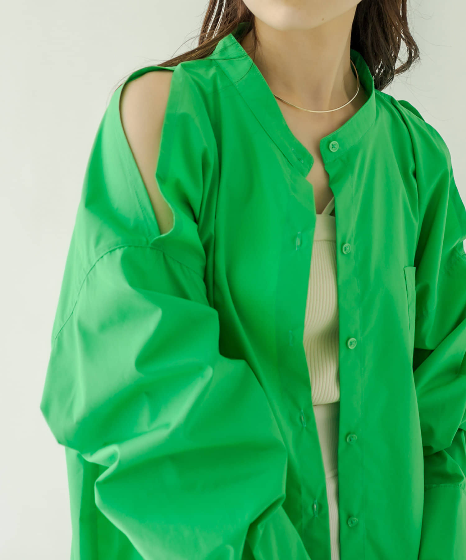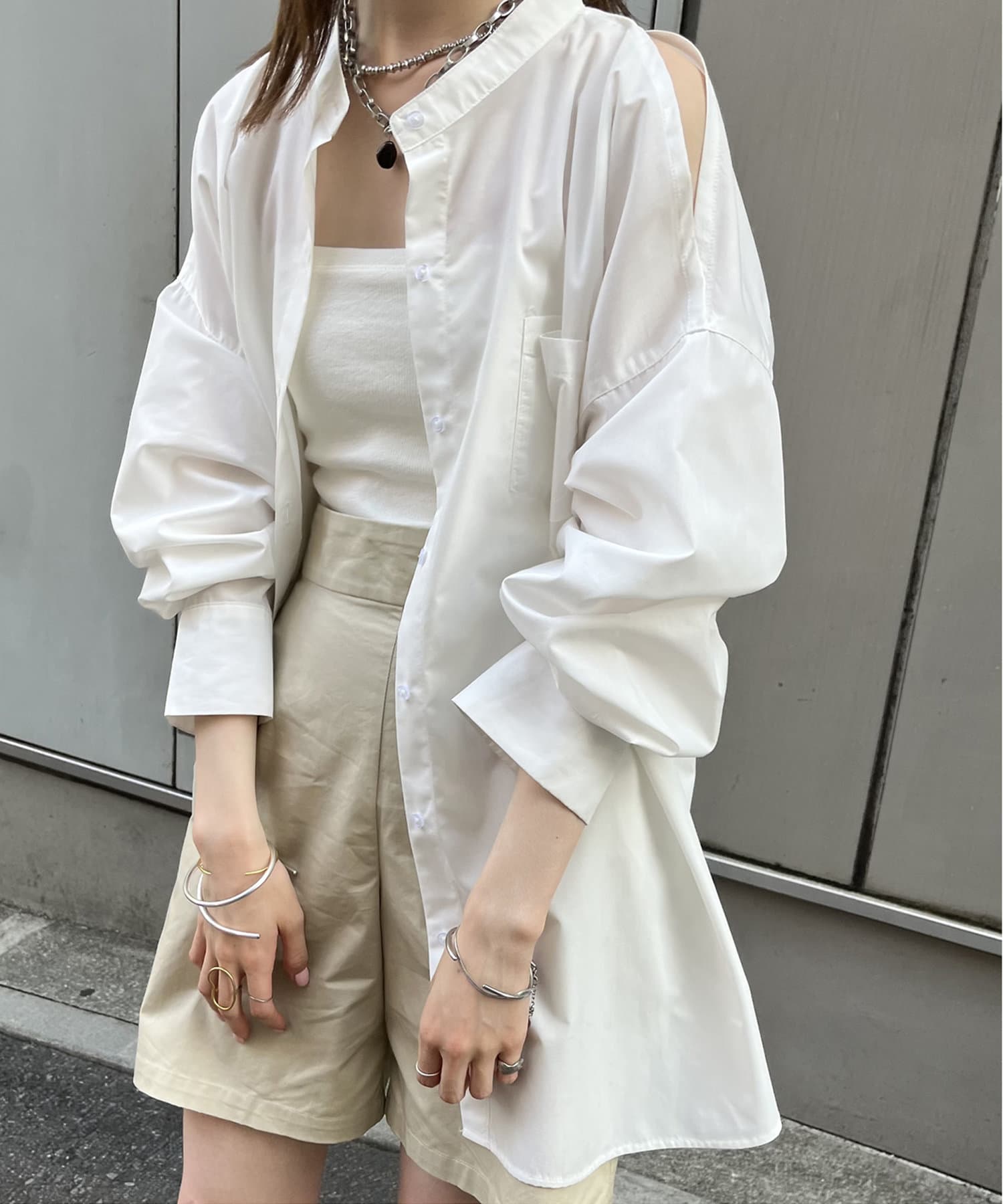 トレンドの肩開きデザインが目を惹くデザインシャツが登場!