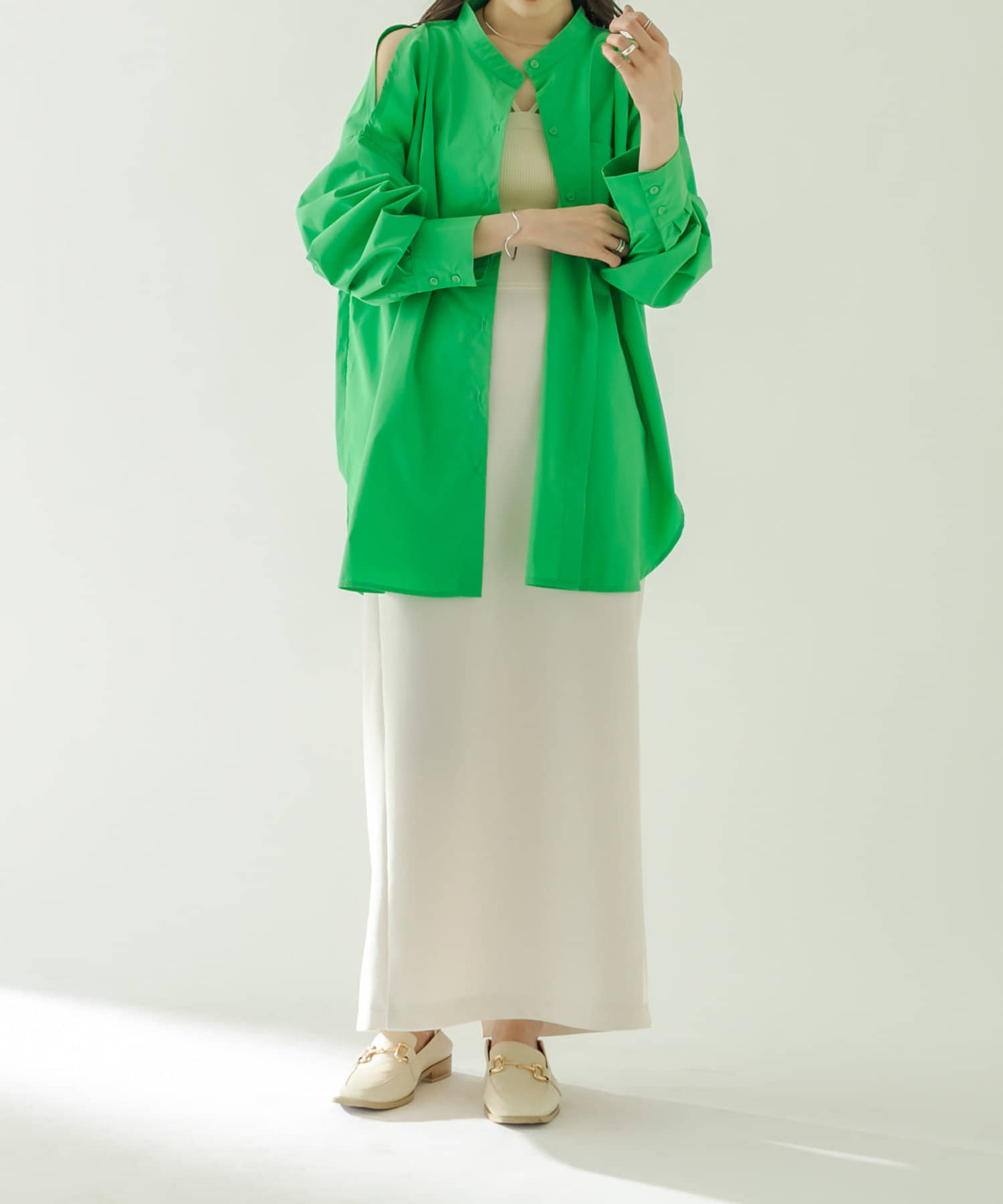 肩開きデザインがスタイリングに程よい抜け感を出してくれます!