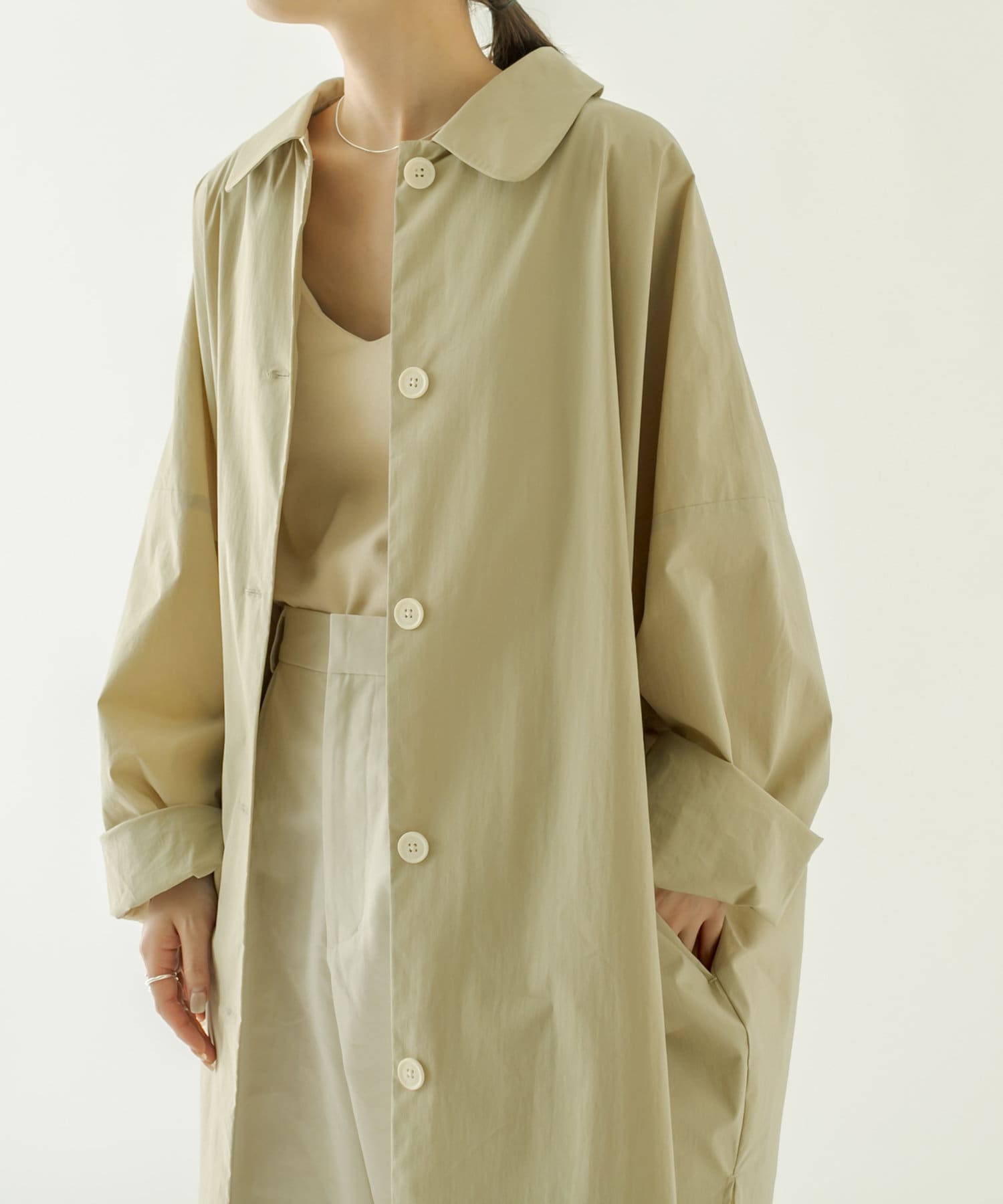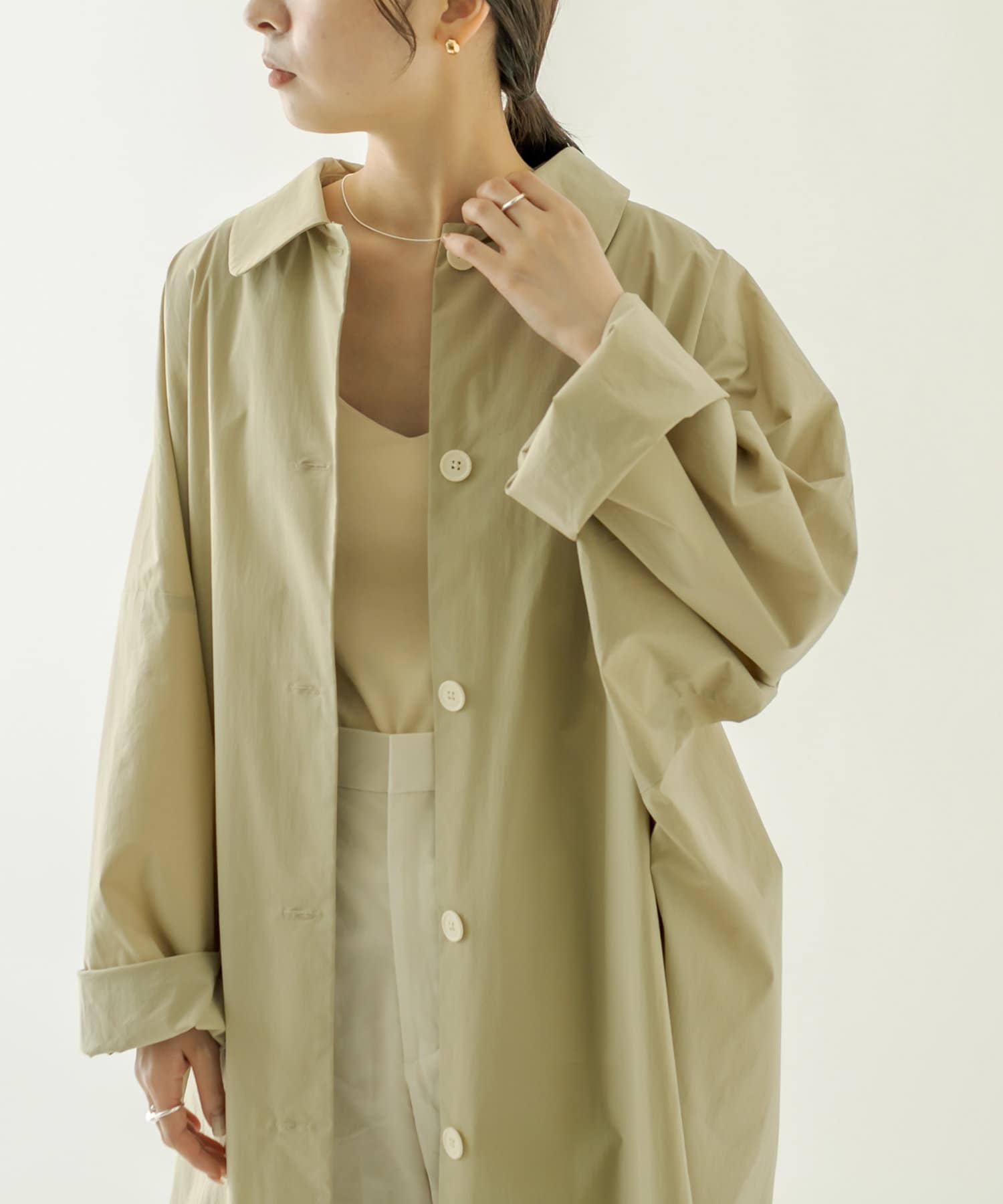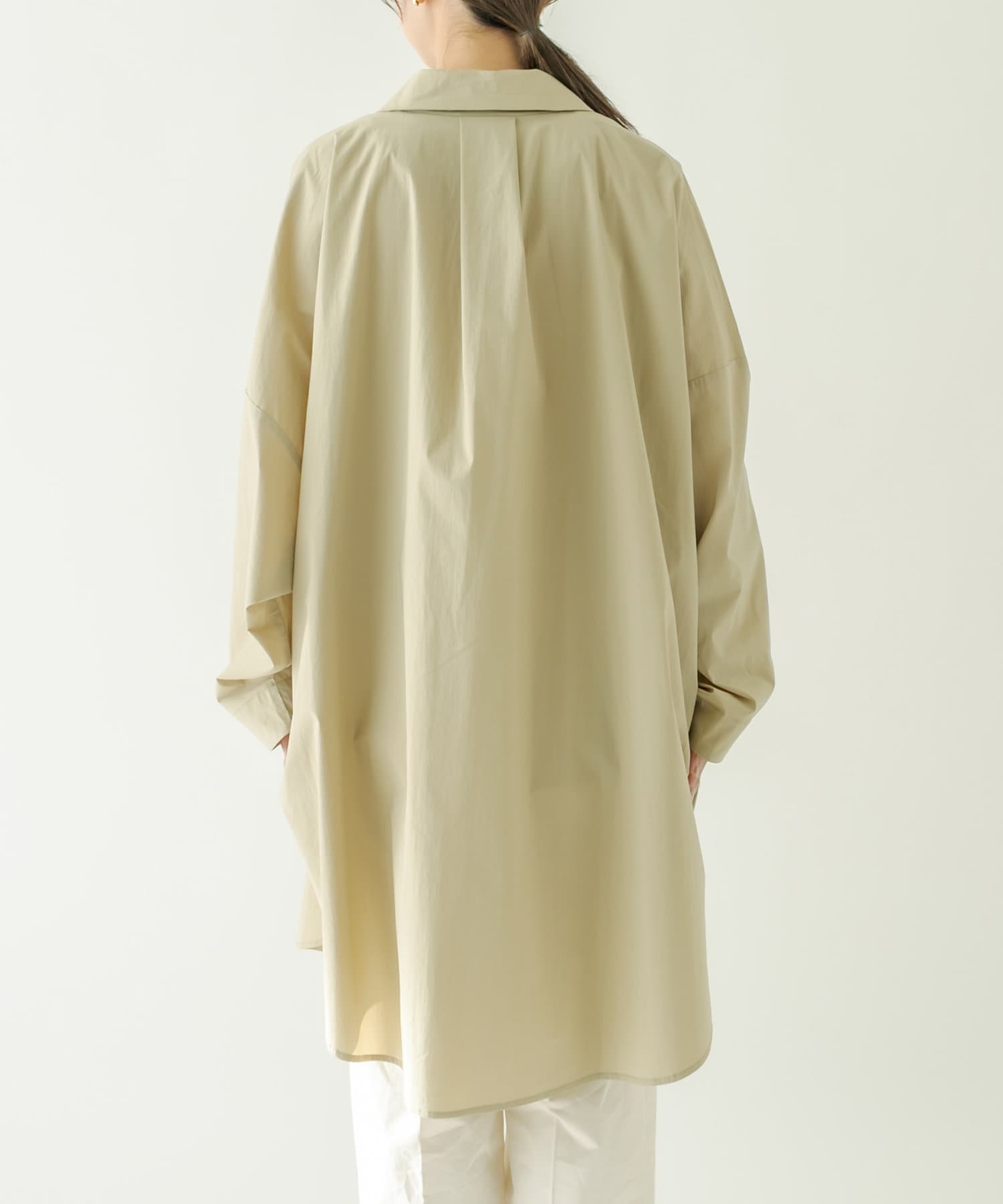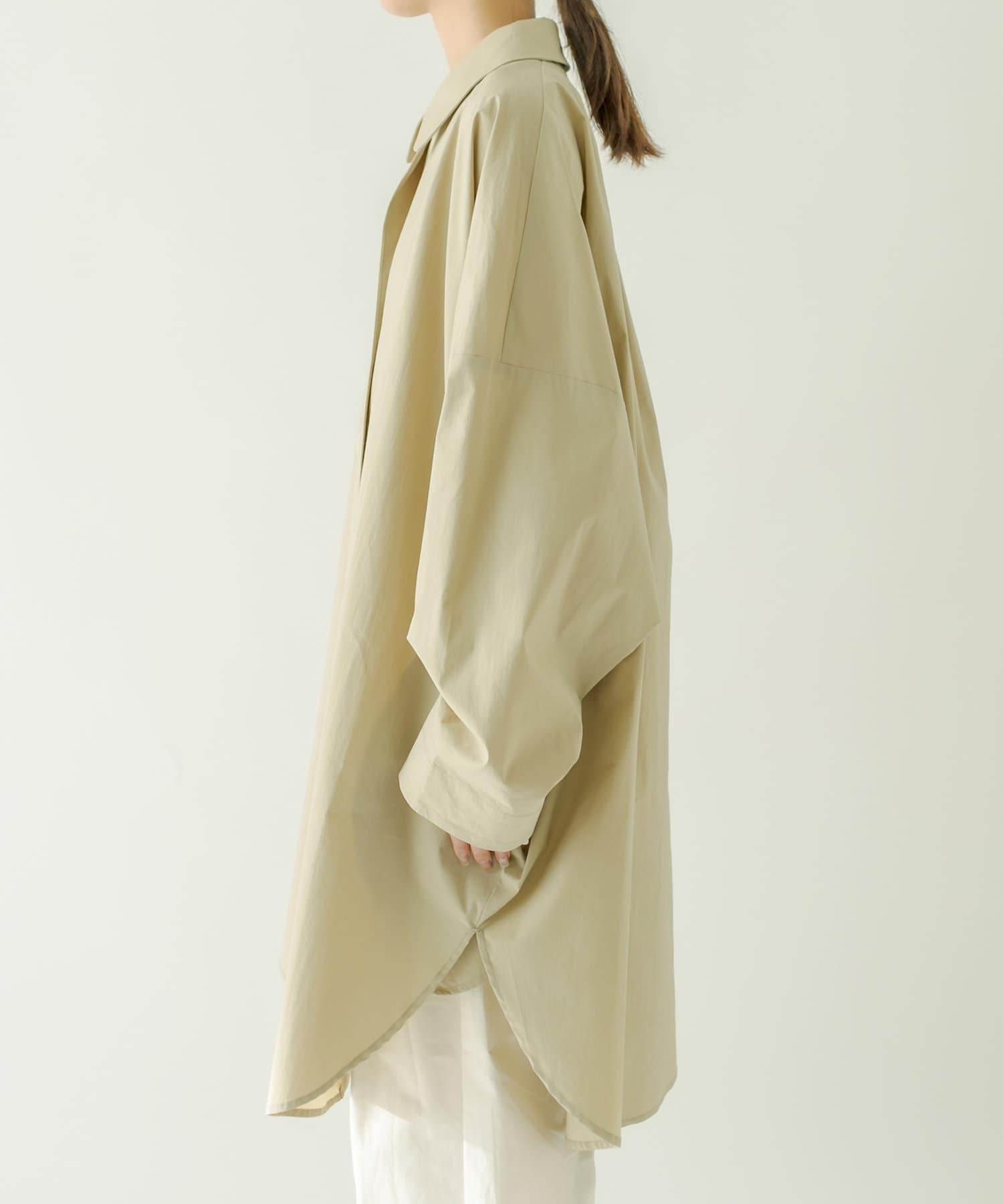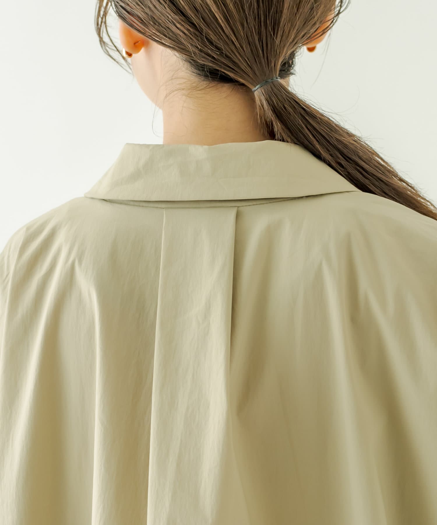 ・たっぷりと余裕を持ったオーバーシルエットのコットンナイロンシャツ。