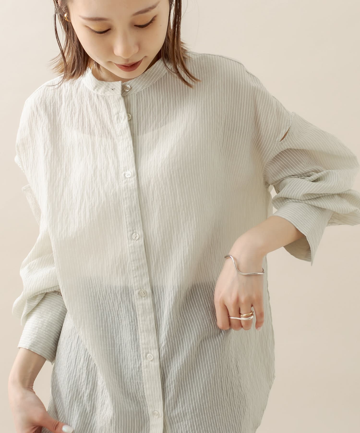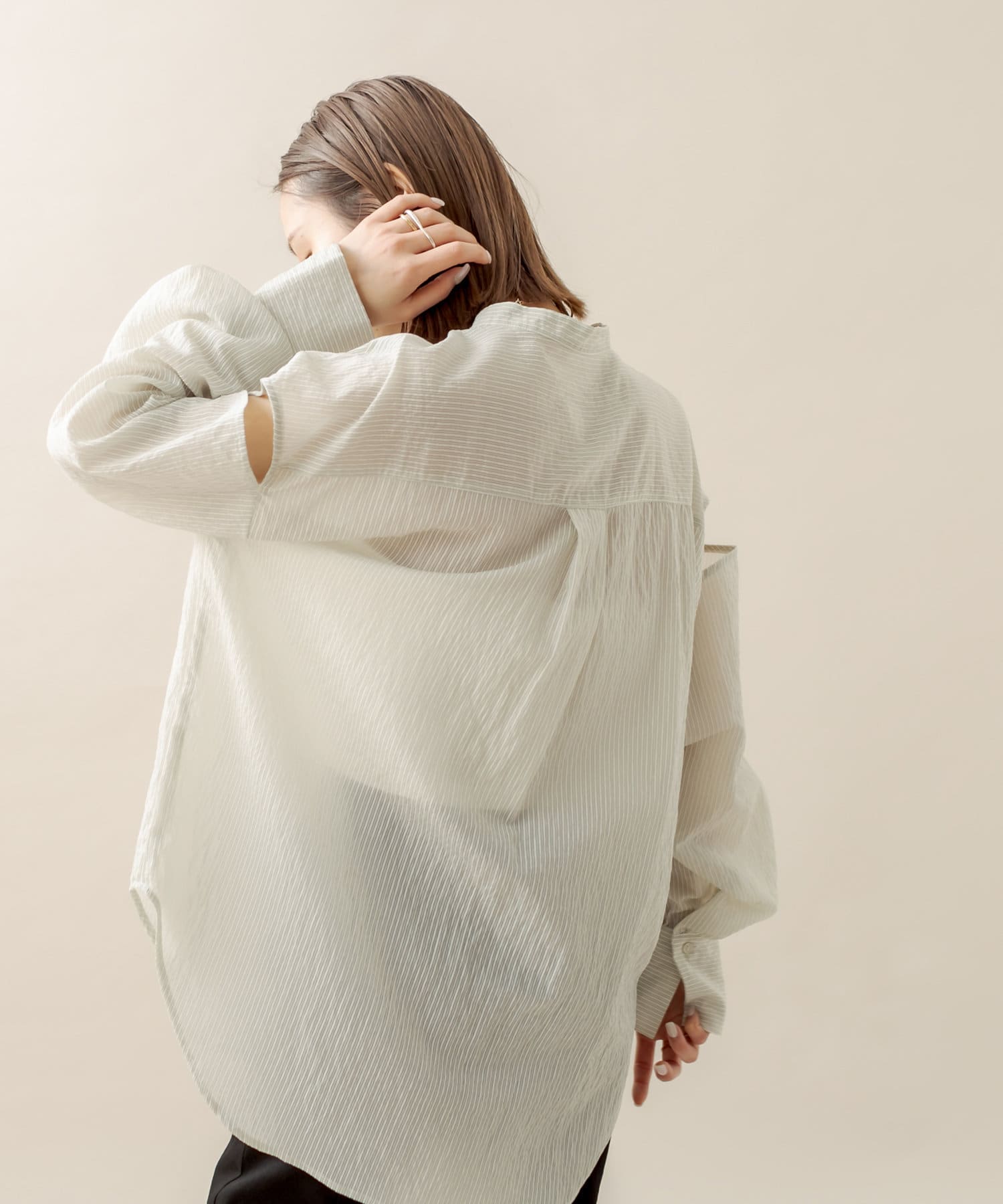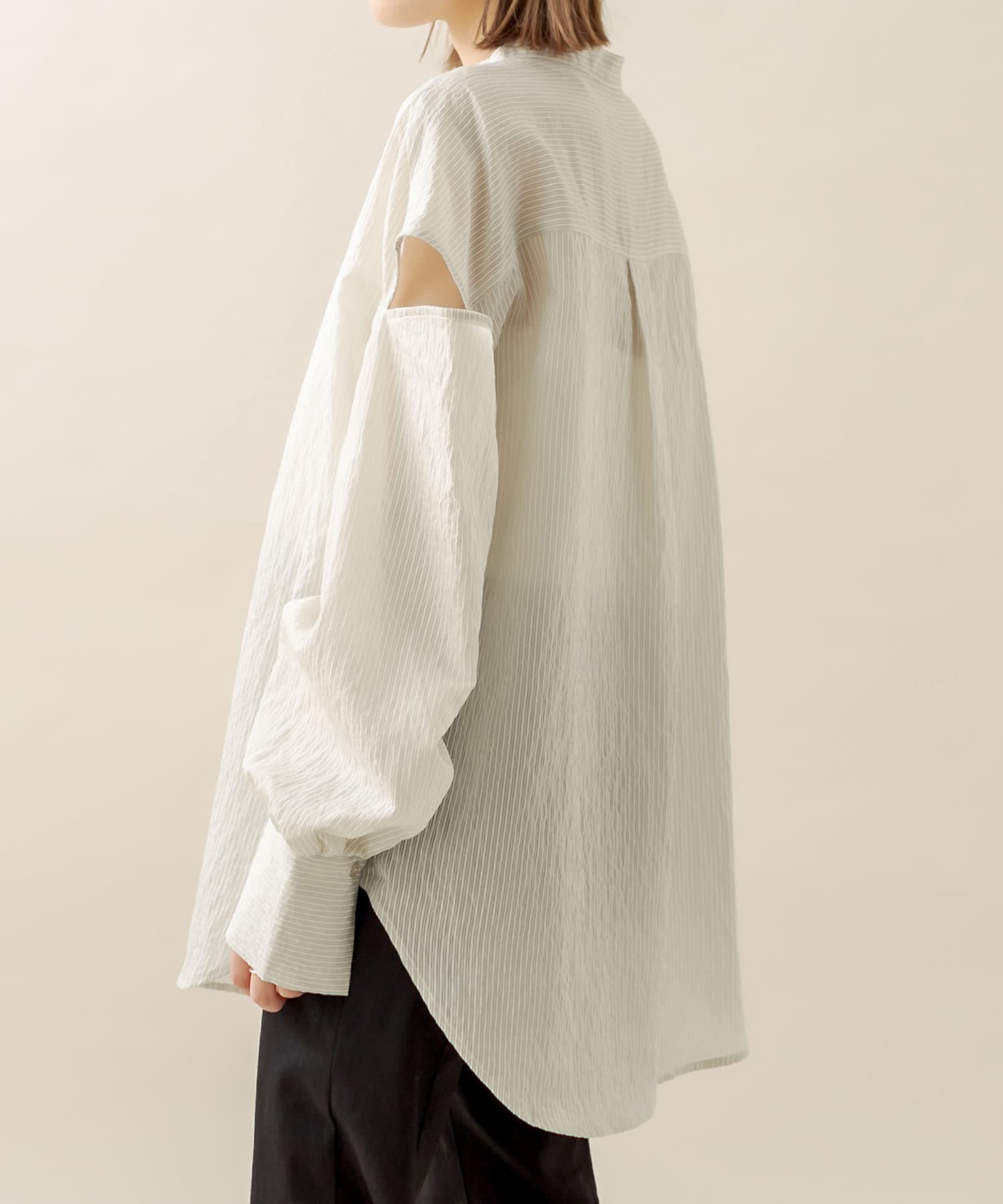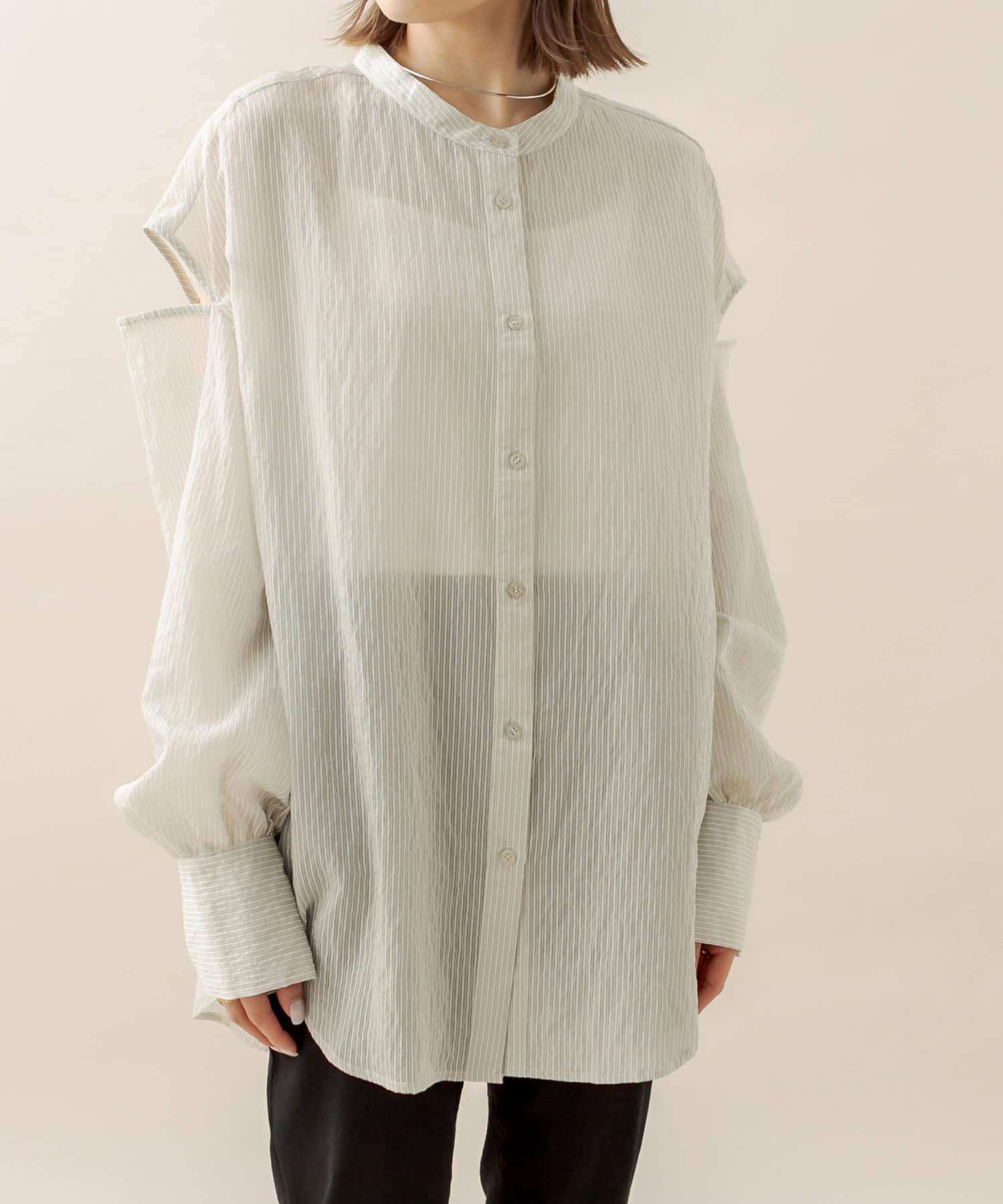 [mline] 肩開きシアーストライプシャツ