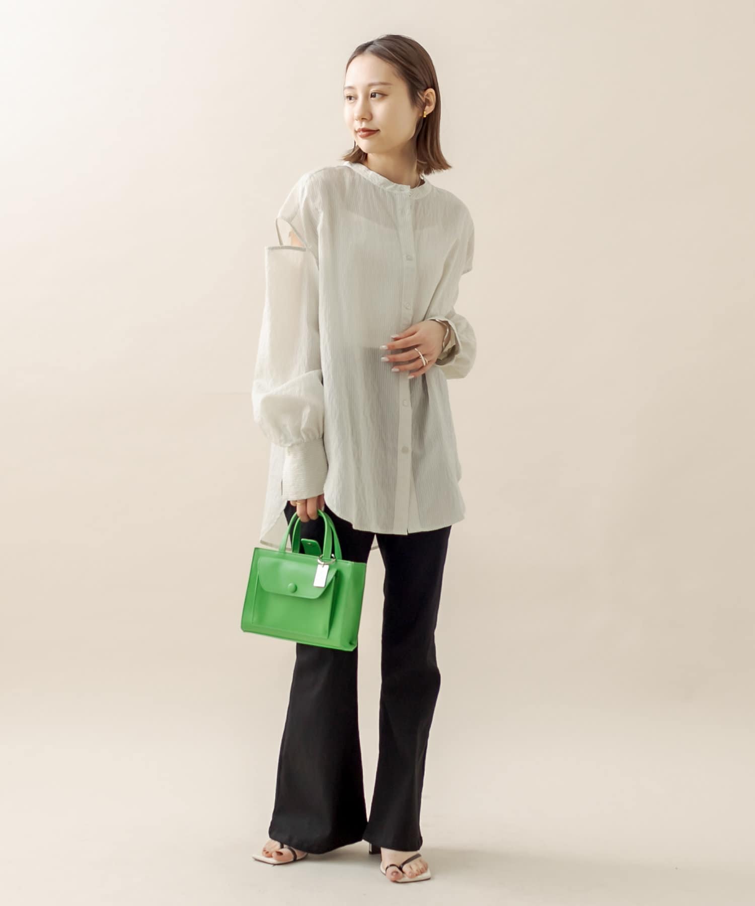 今季トレンドのカラーアイテム、涼しげなGRNはデニムやホワイトボトムとの相性は抜群!!