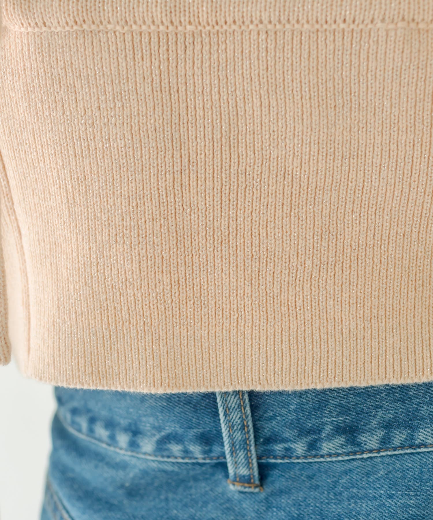 ・ラメ感のあるニットキャミで1枚プラスするだけで華やかな印象に◎