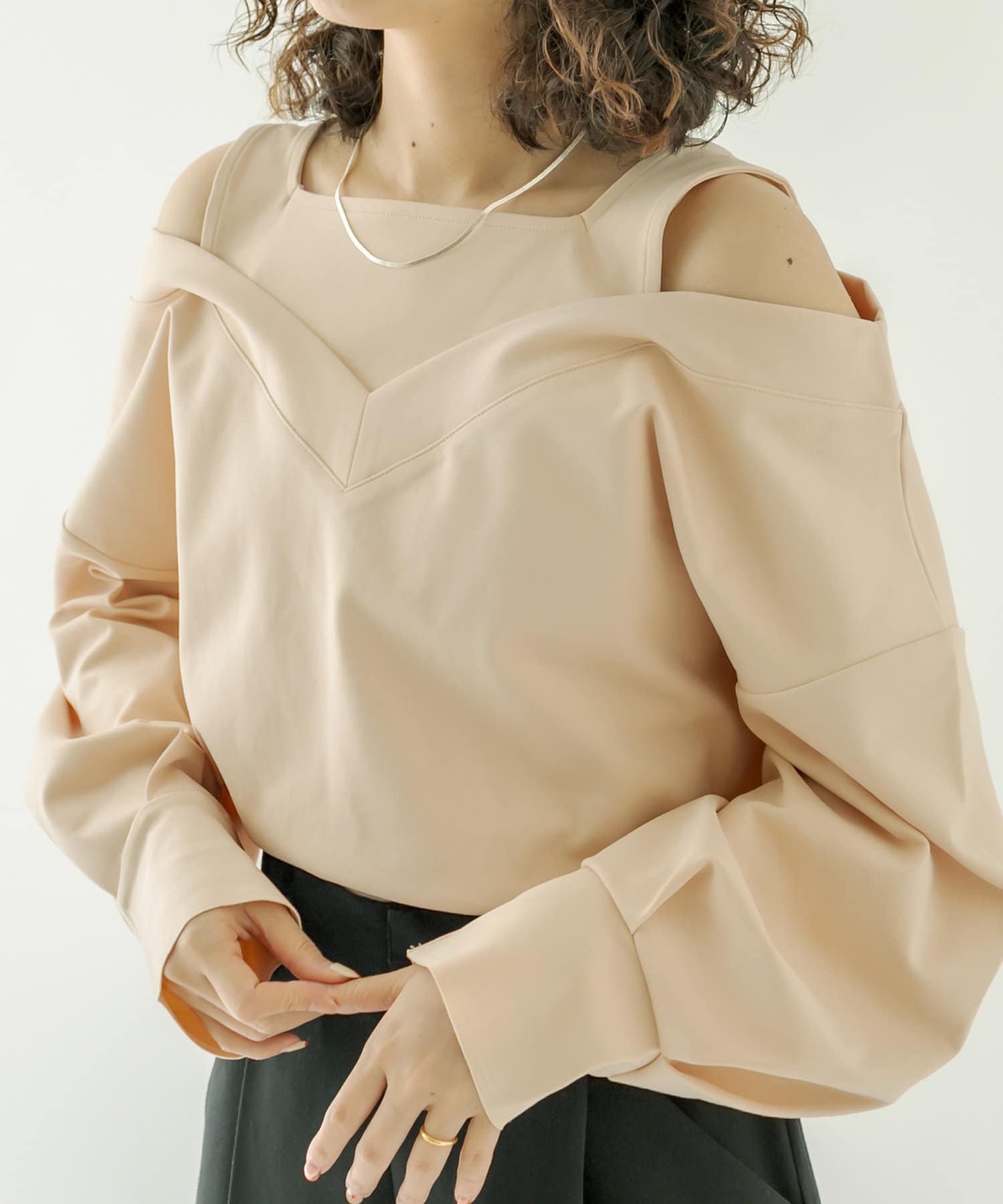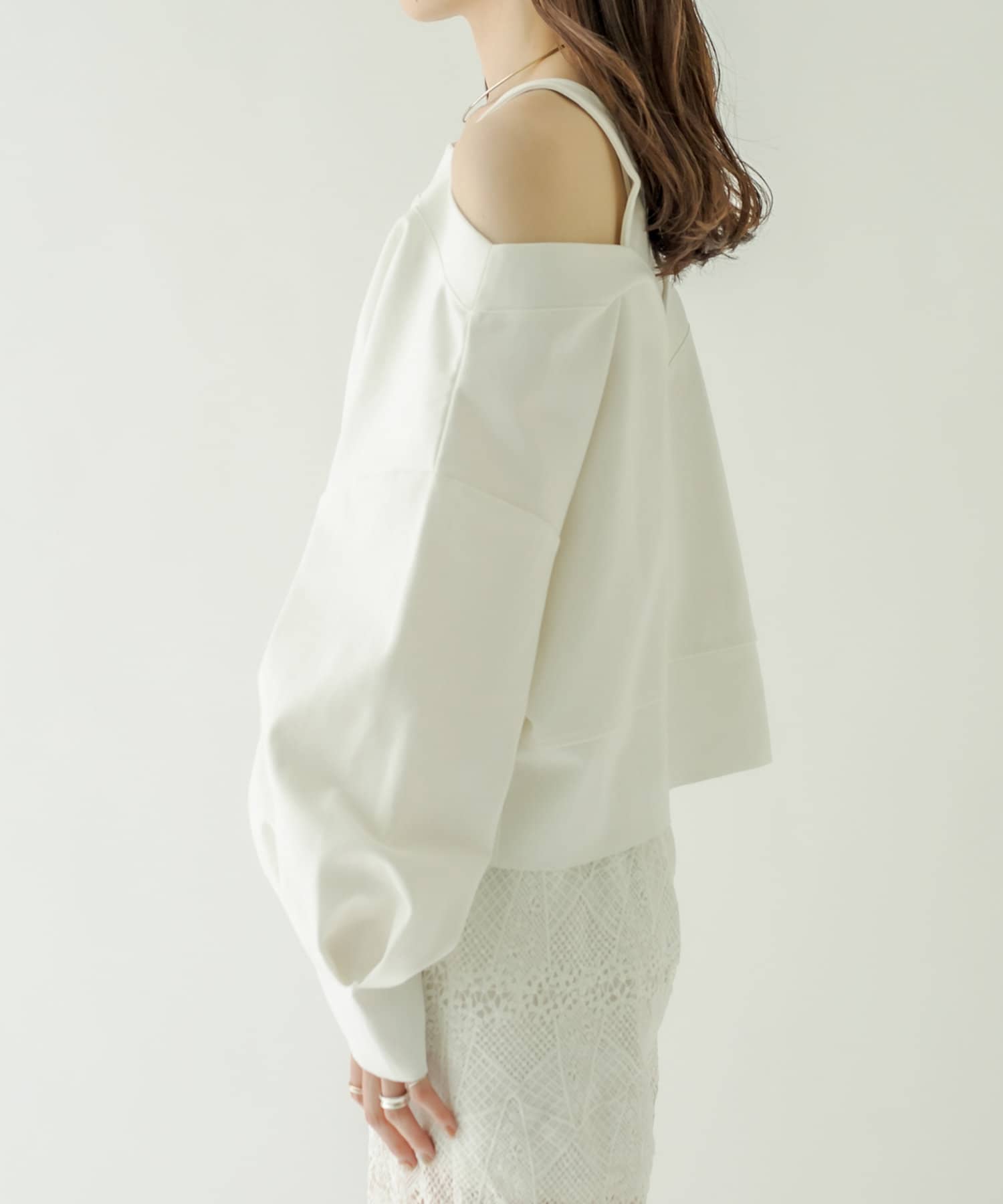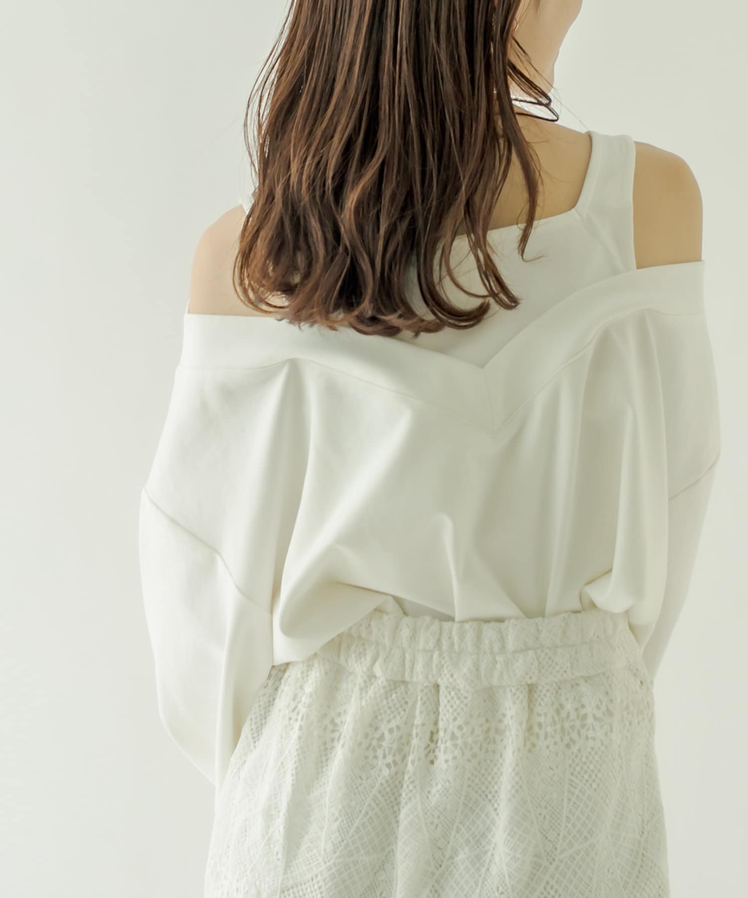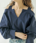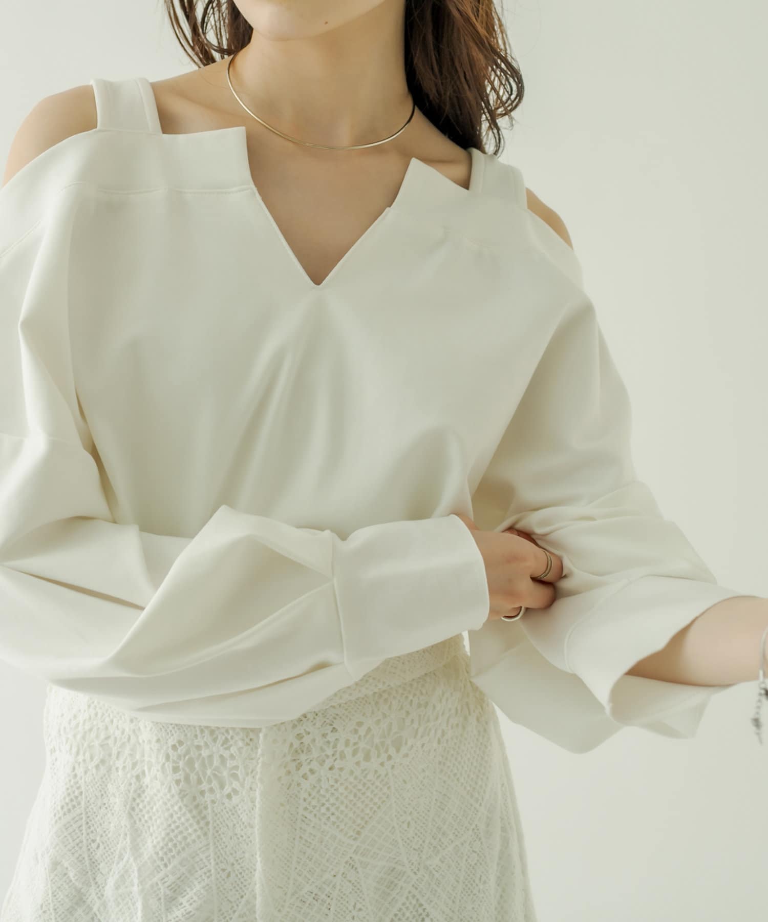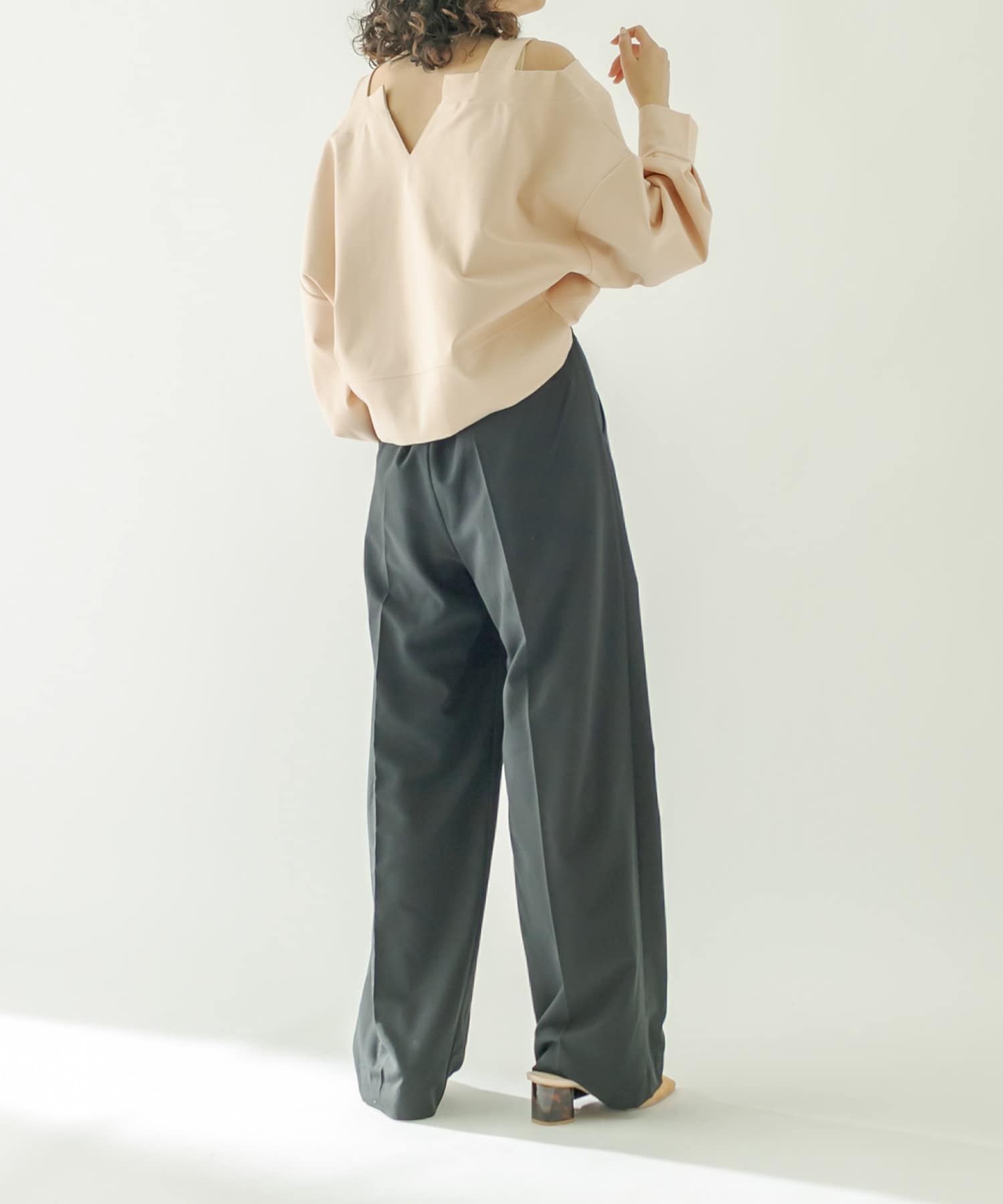・程よい肩開きデザインが抜け感のでるスタイリングに。