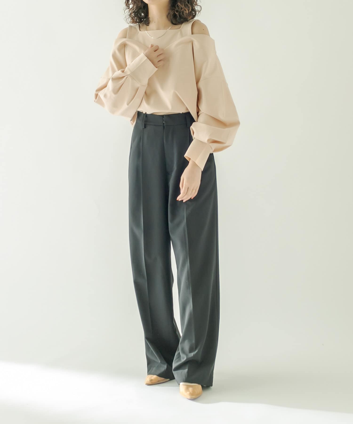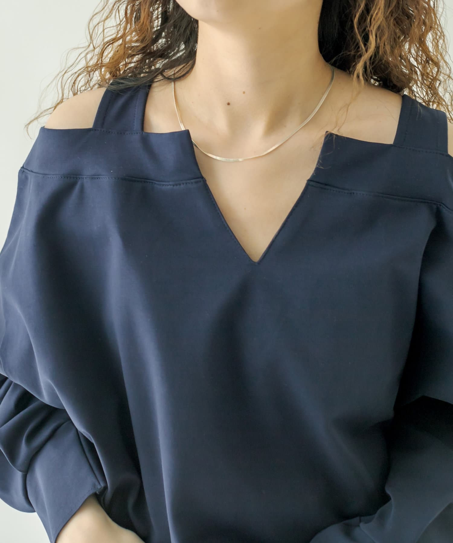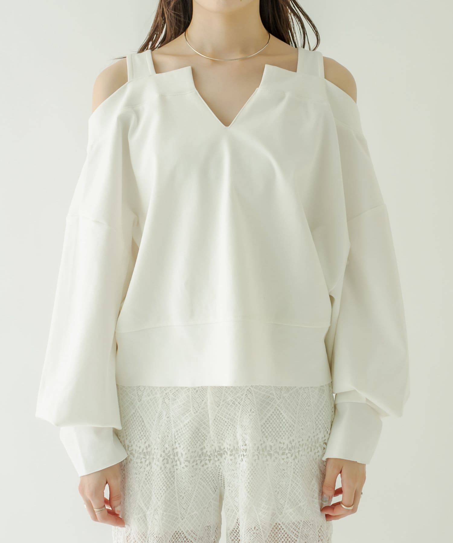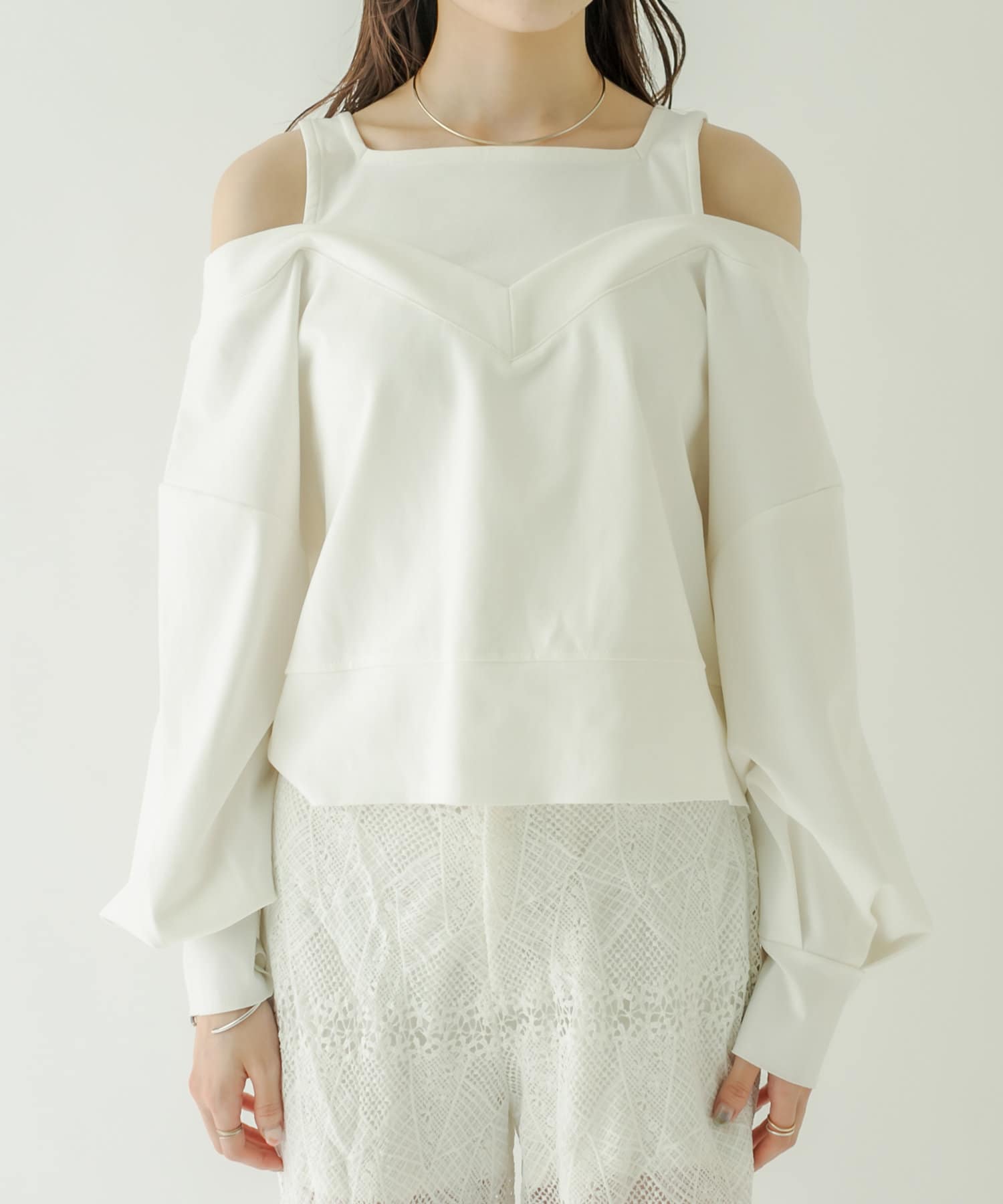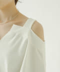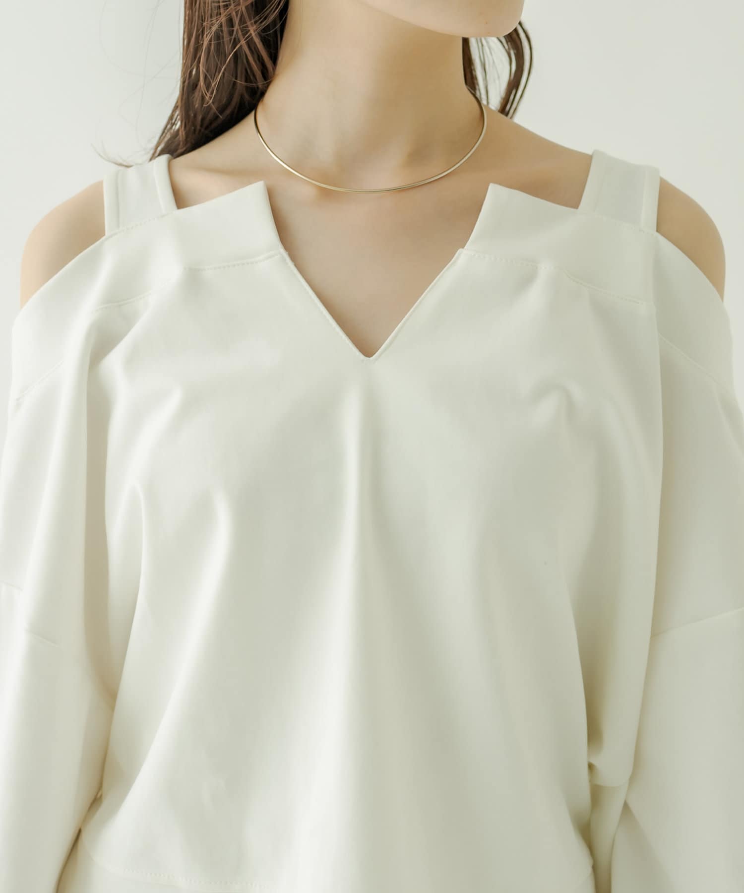 ・程よい肩開きデザインが抜け感のでるスタイリングに。