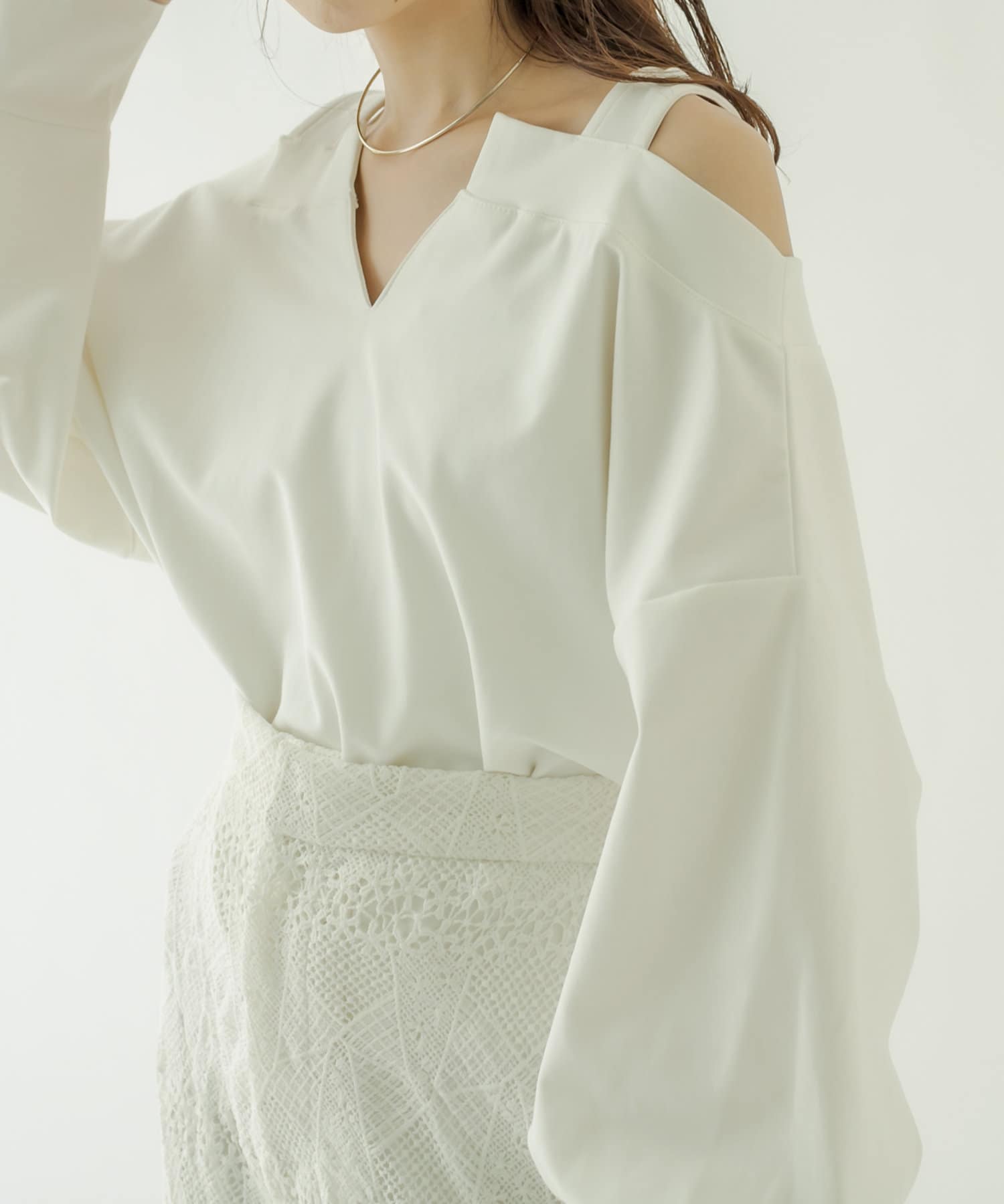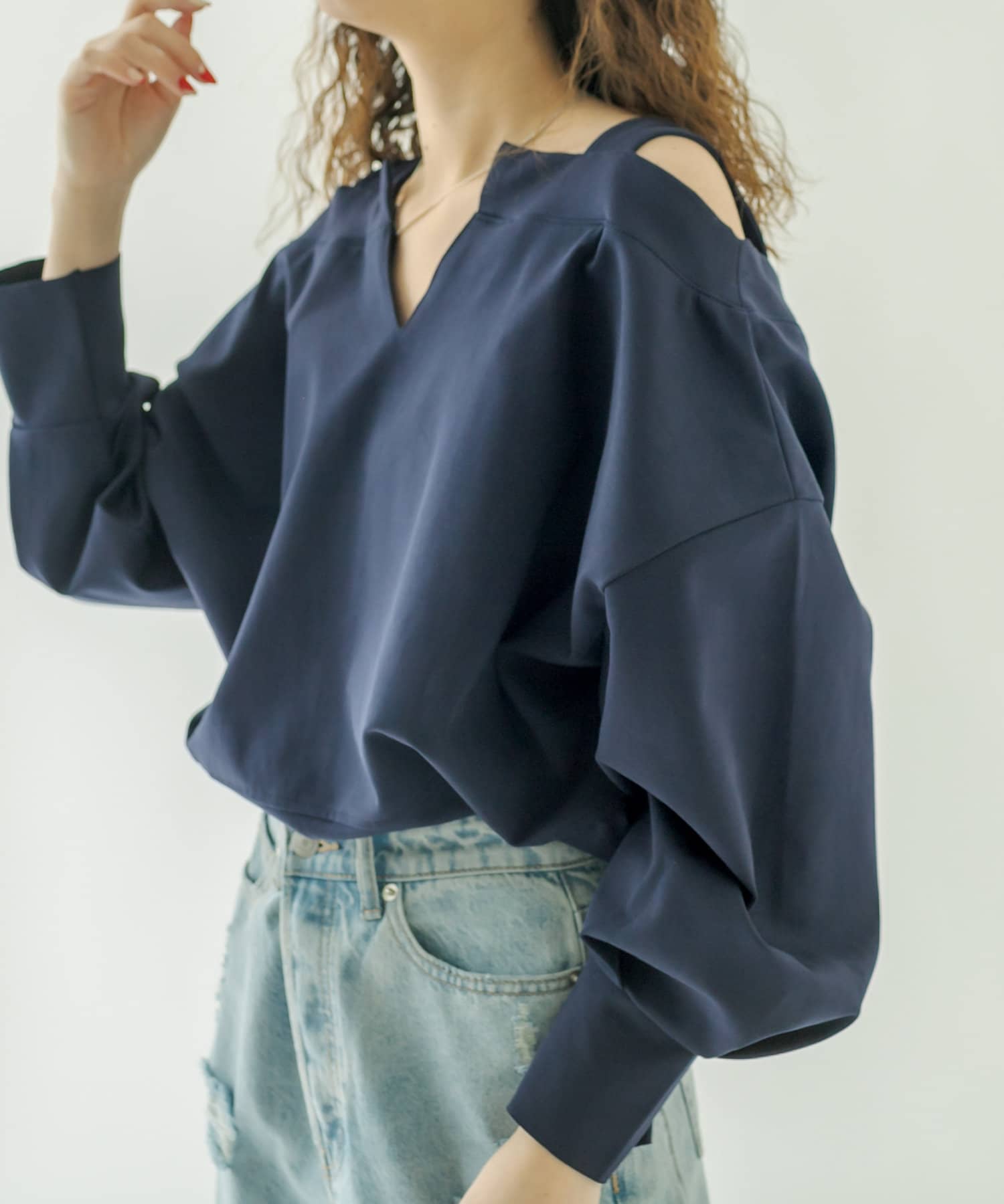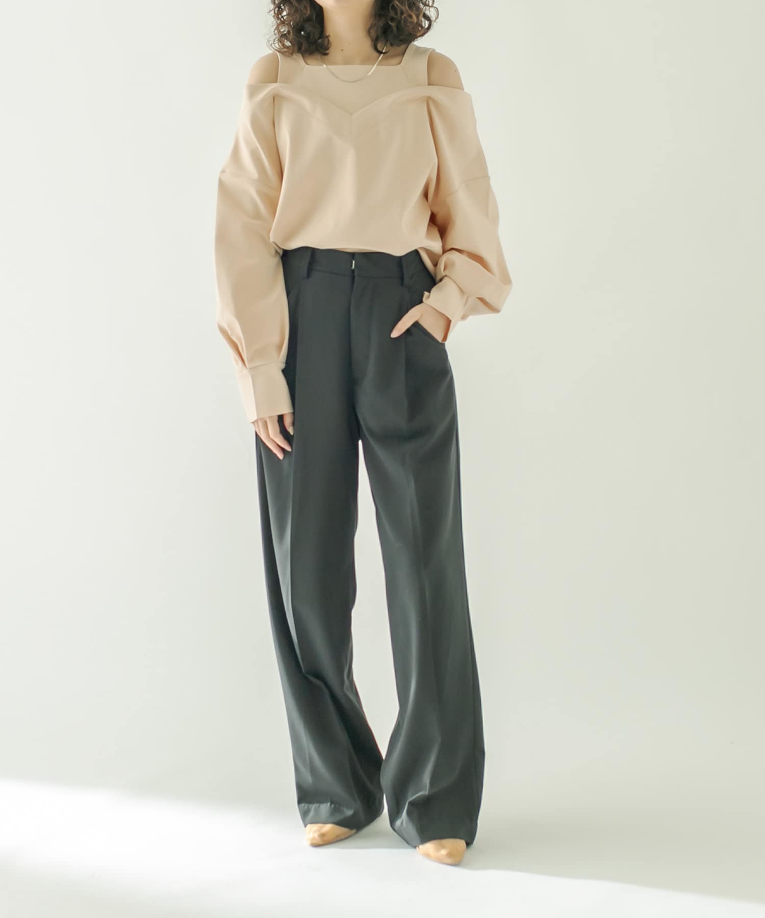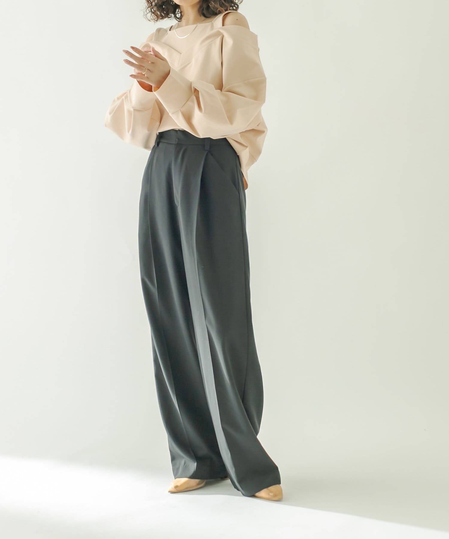 ・程よい肩開きデザインが抜け感のでるスタイリングに。