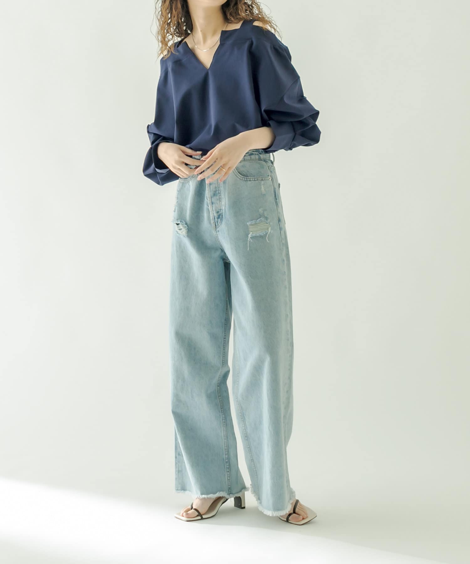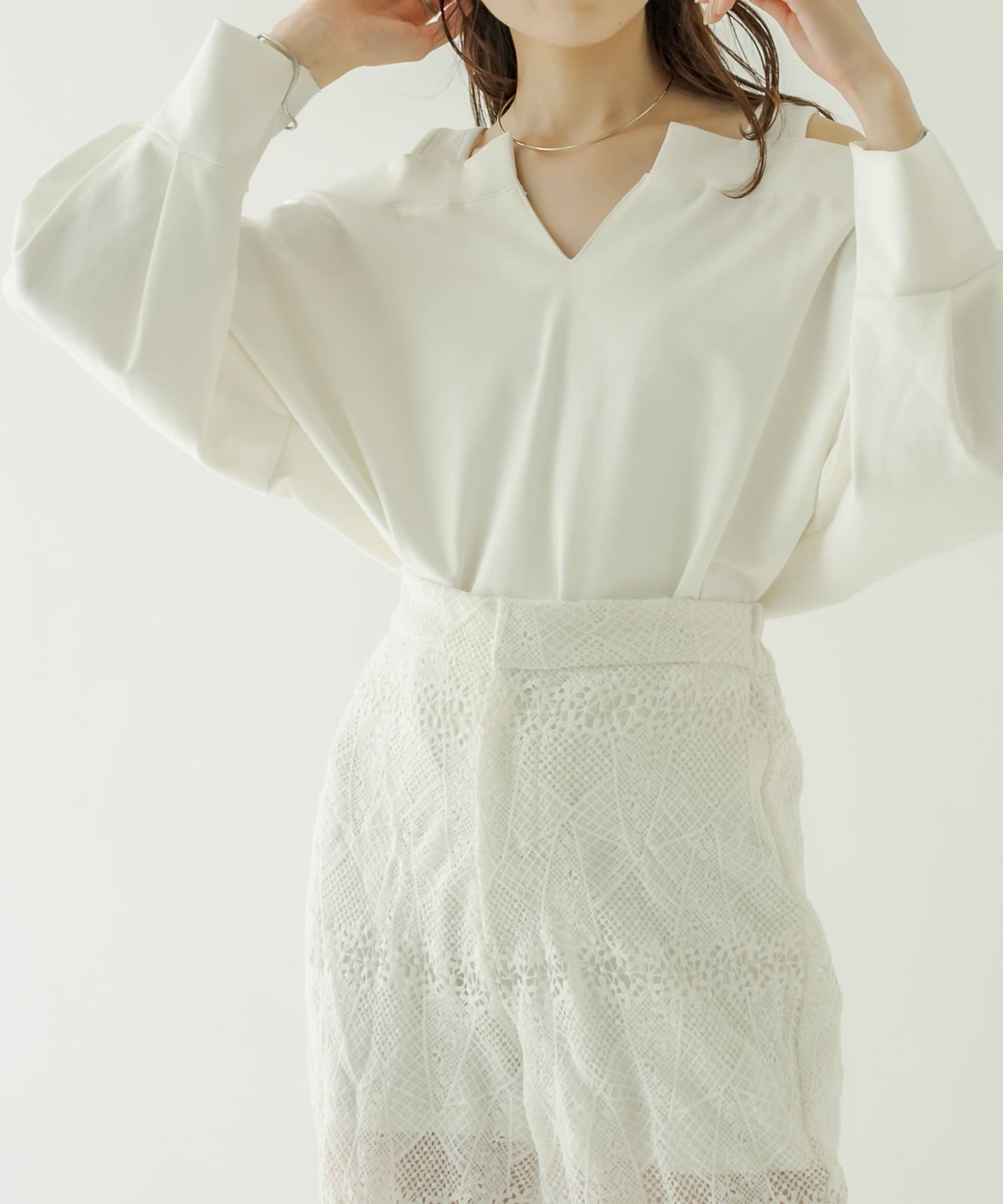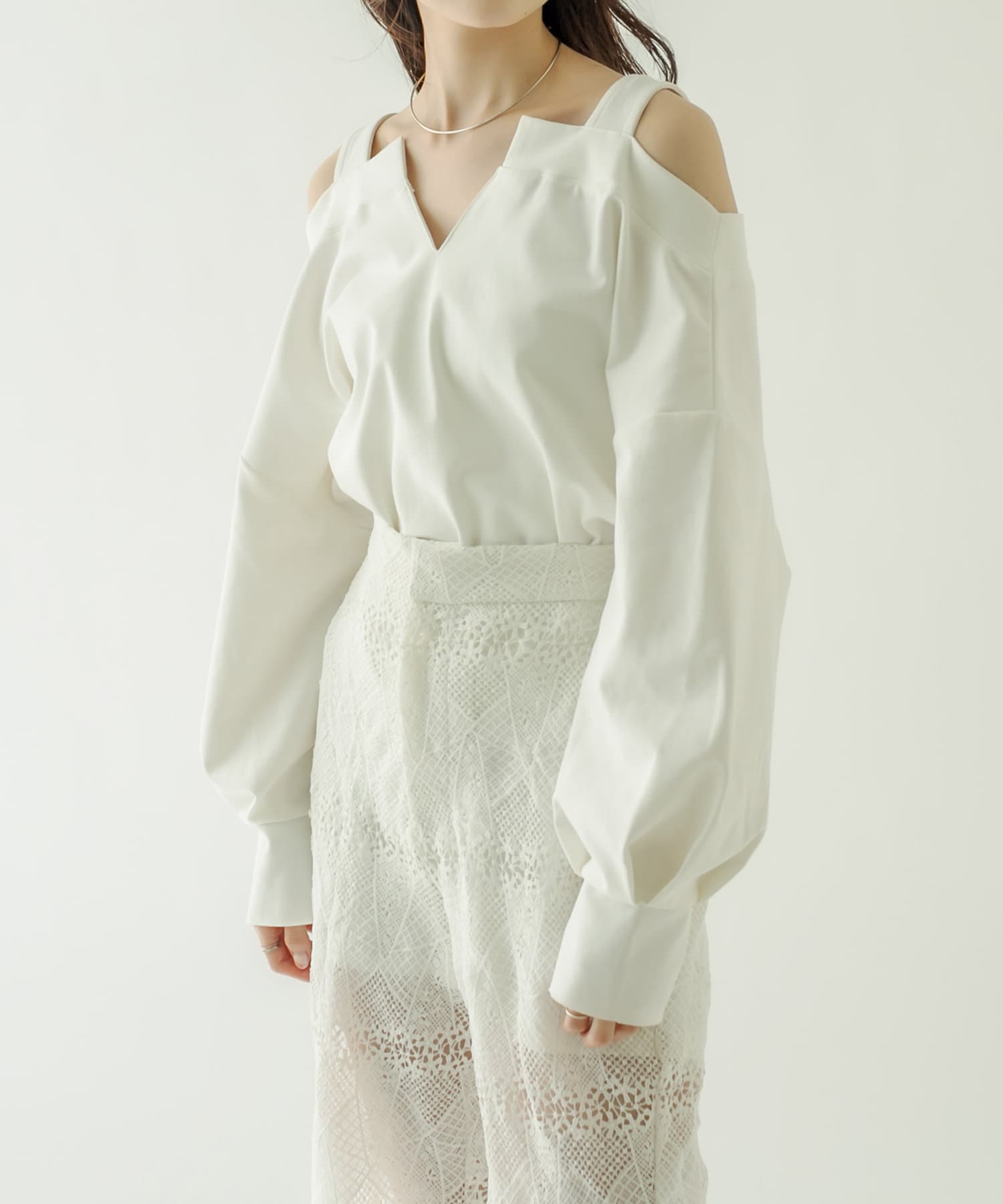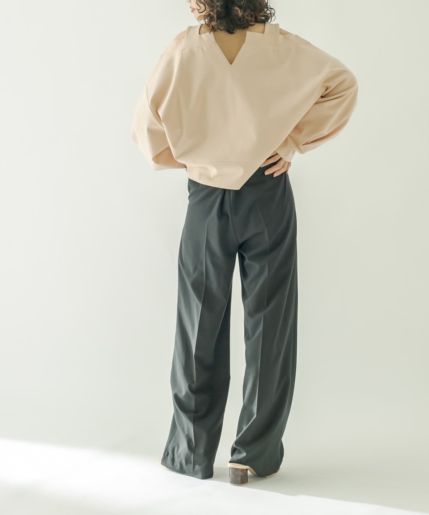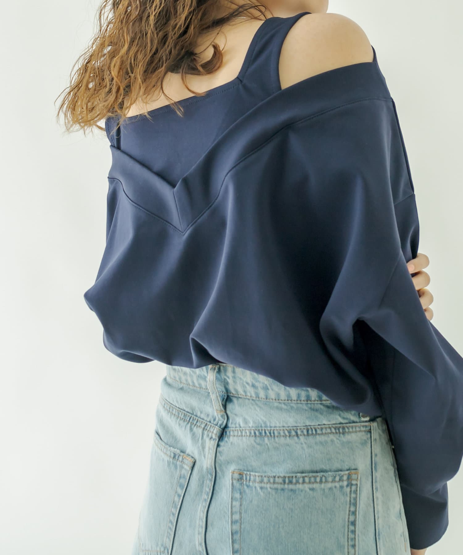 ・程よい肩開きデザインが抜け感のでるスタイリングに。