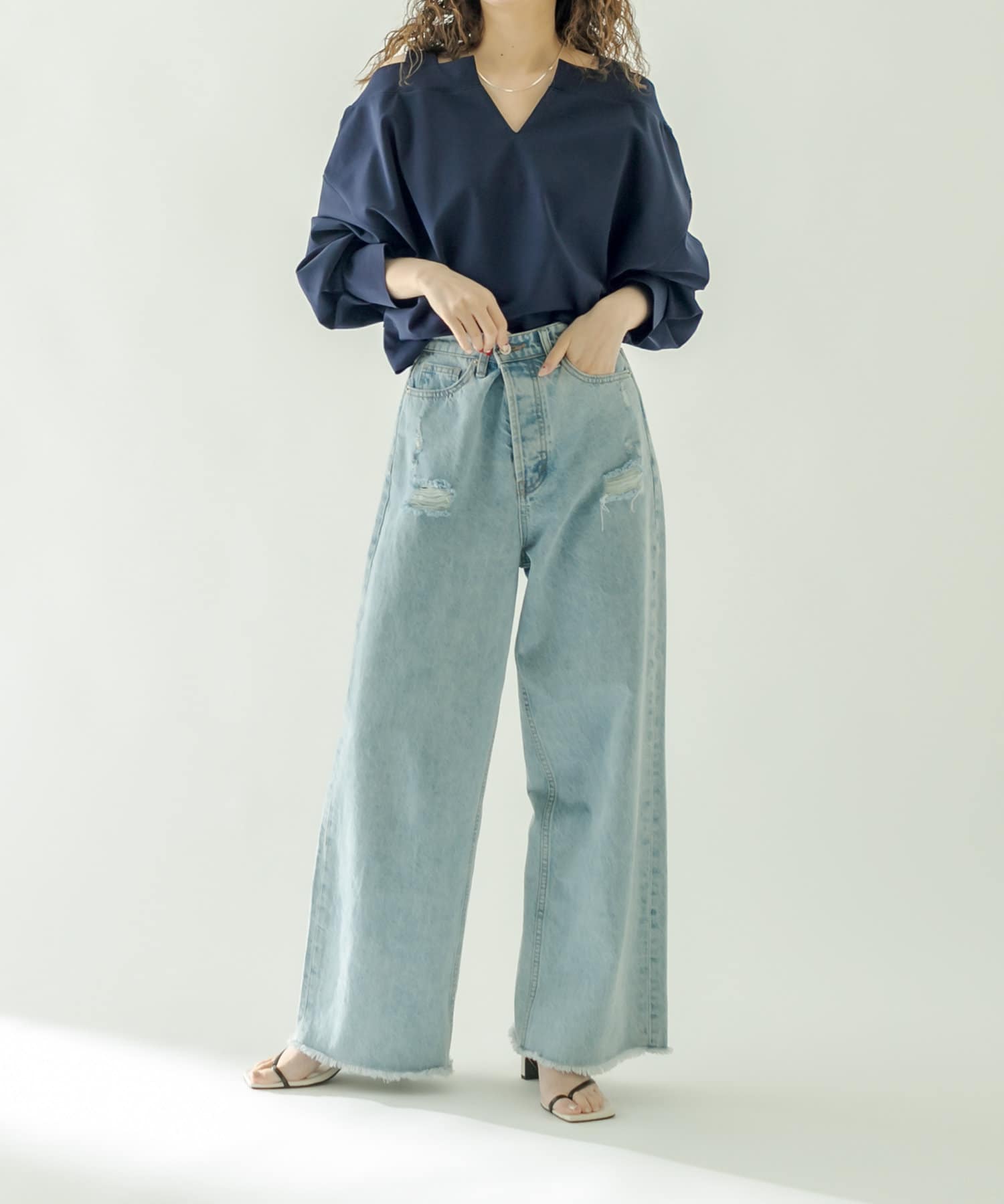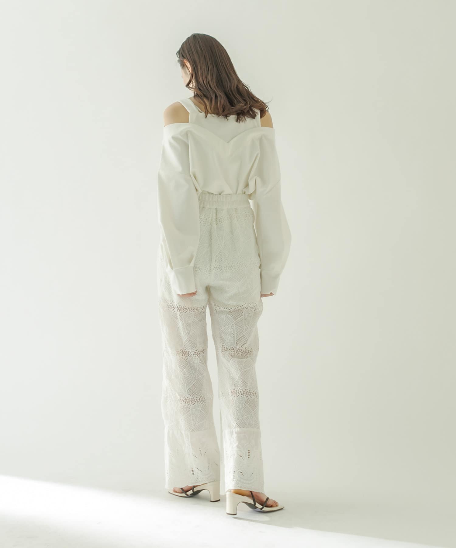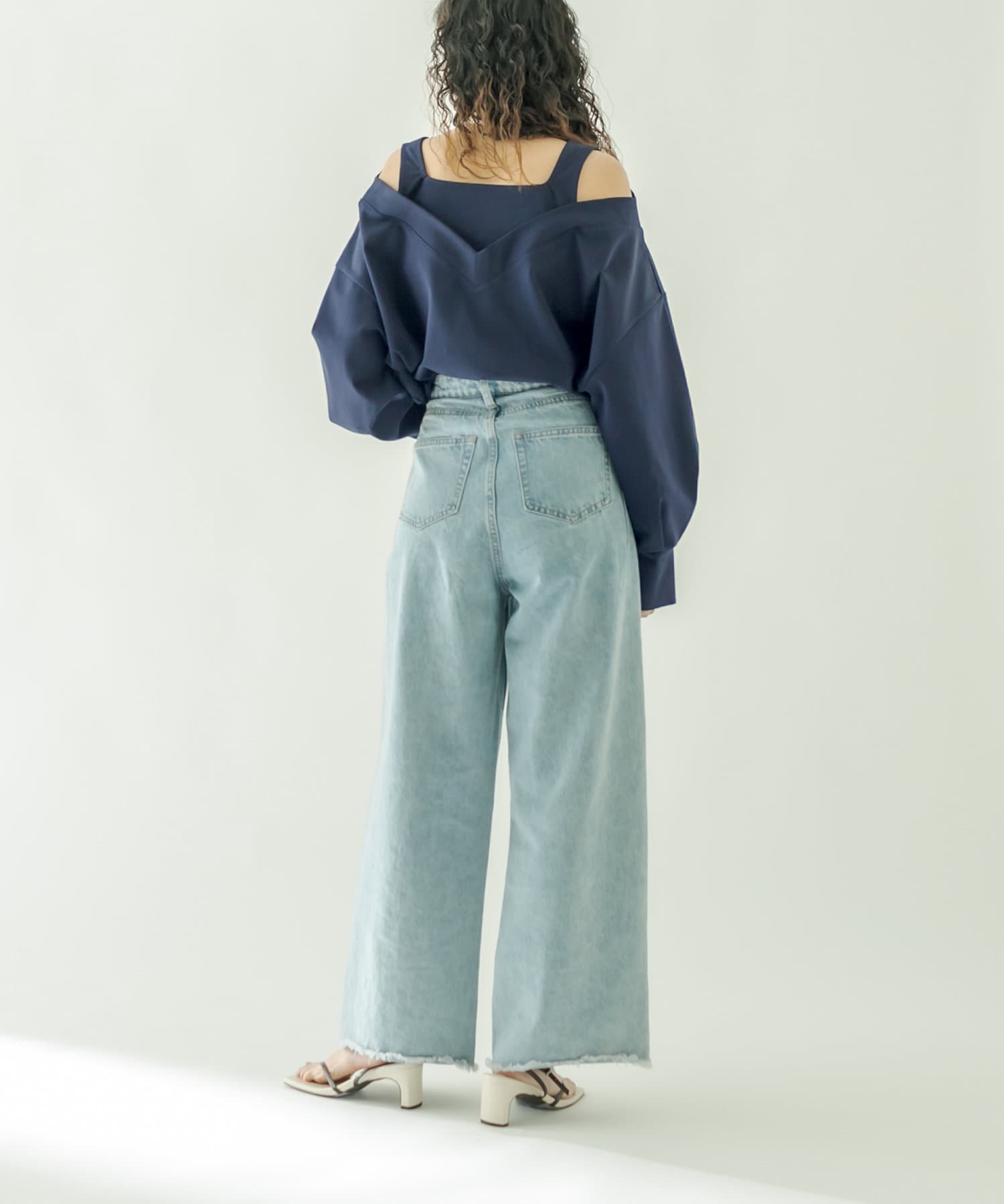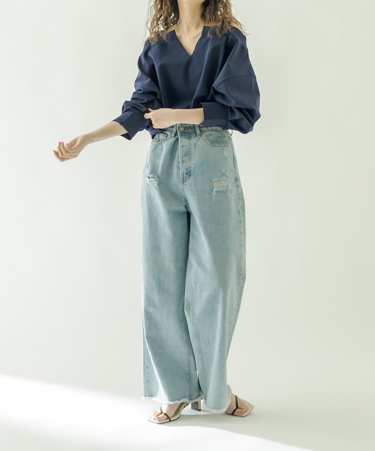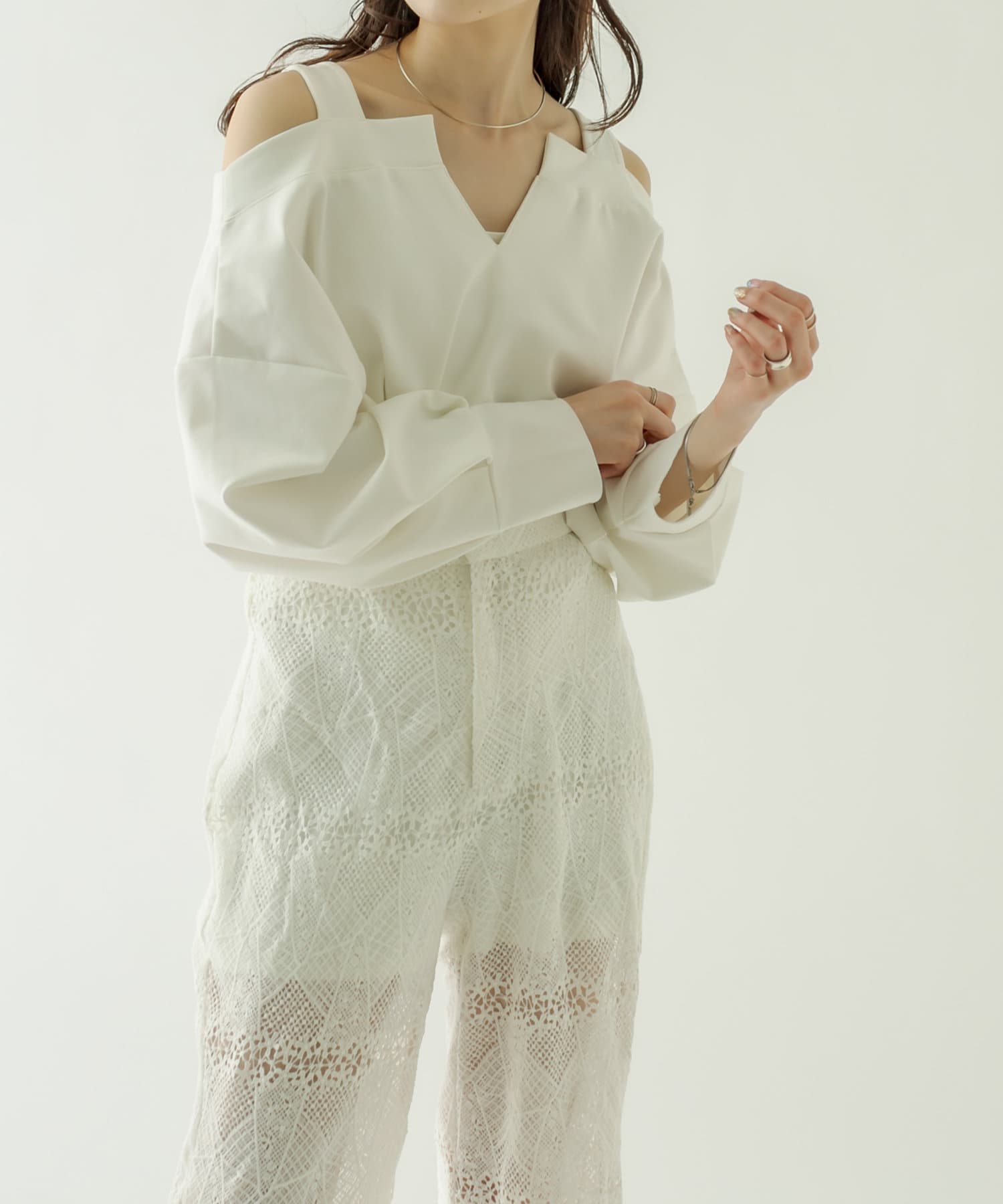 ・程よい肩開きデザインが抜け感のでるスタイリングに。