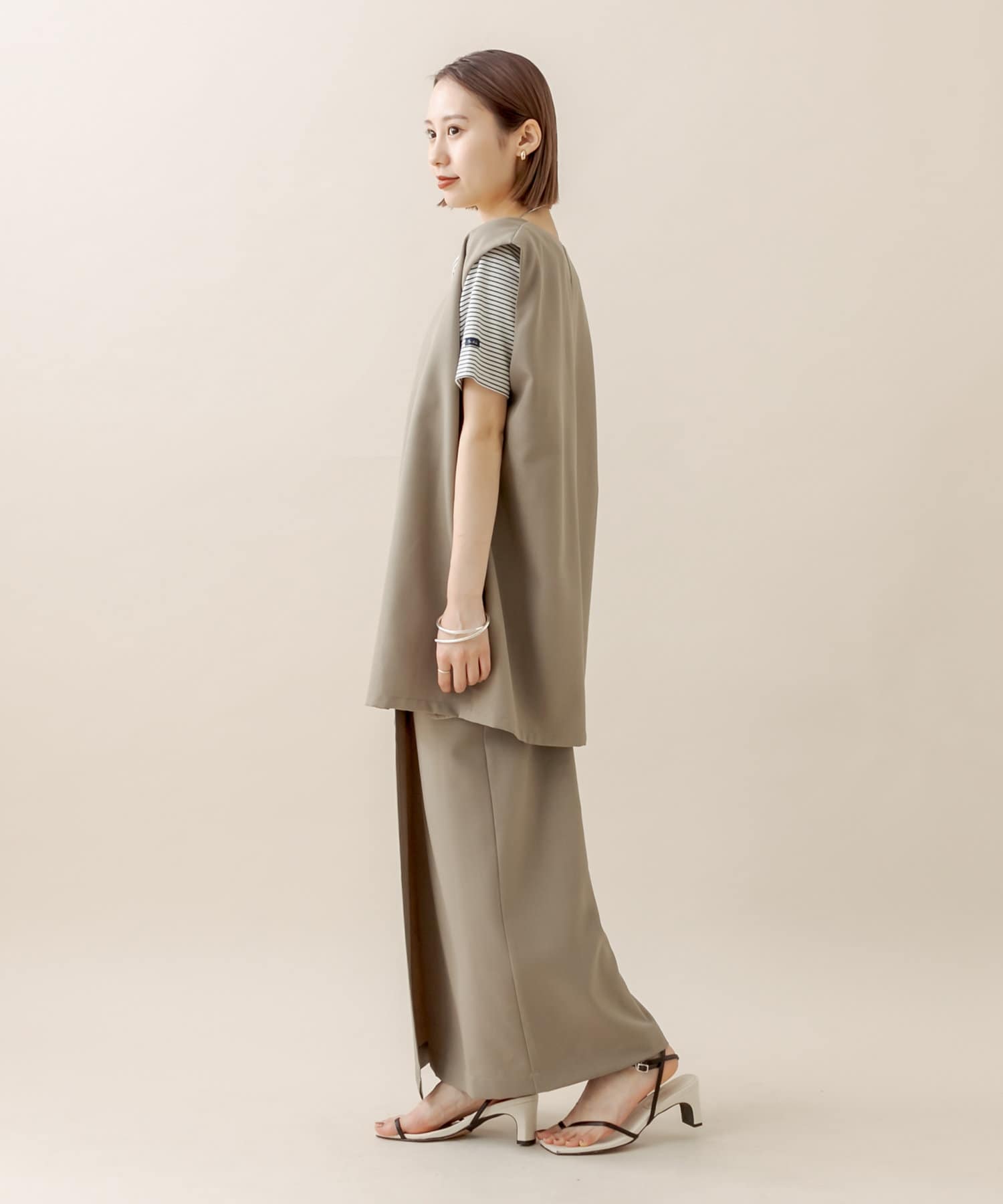 ・マーメイドスカートを合わせて女性らしく、パンツあわせで大人カジュアルな印象に