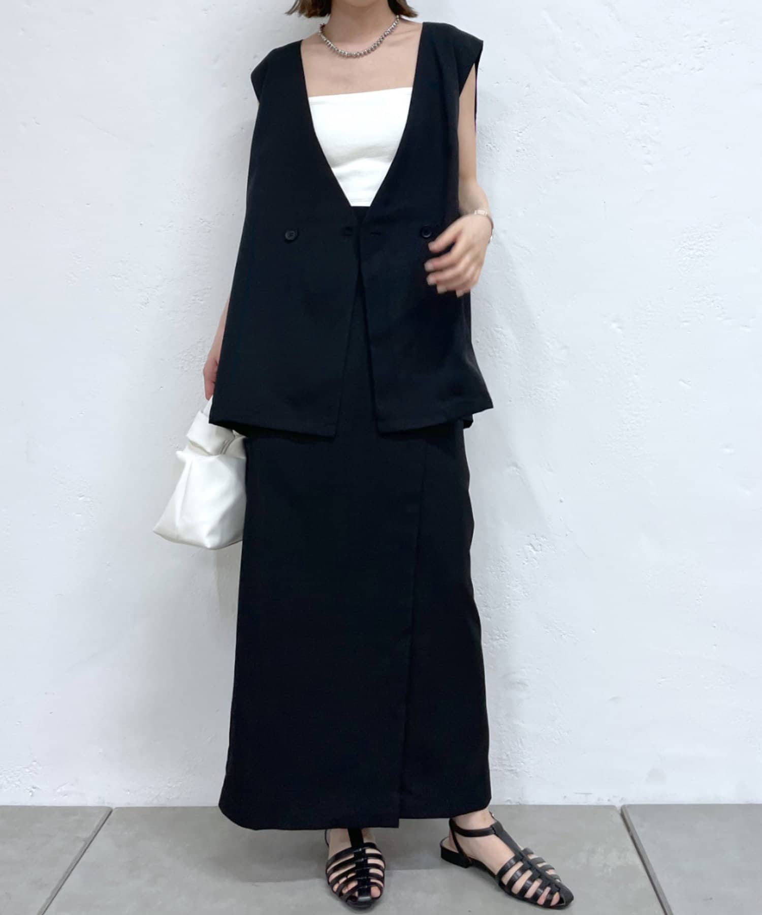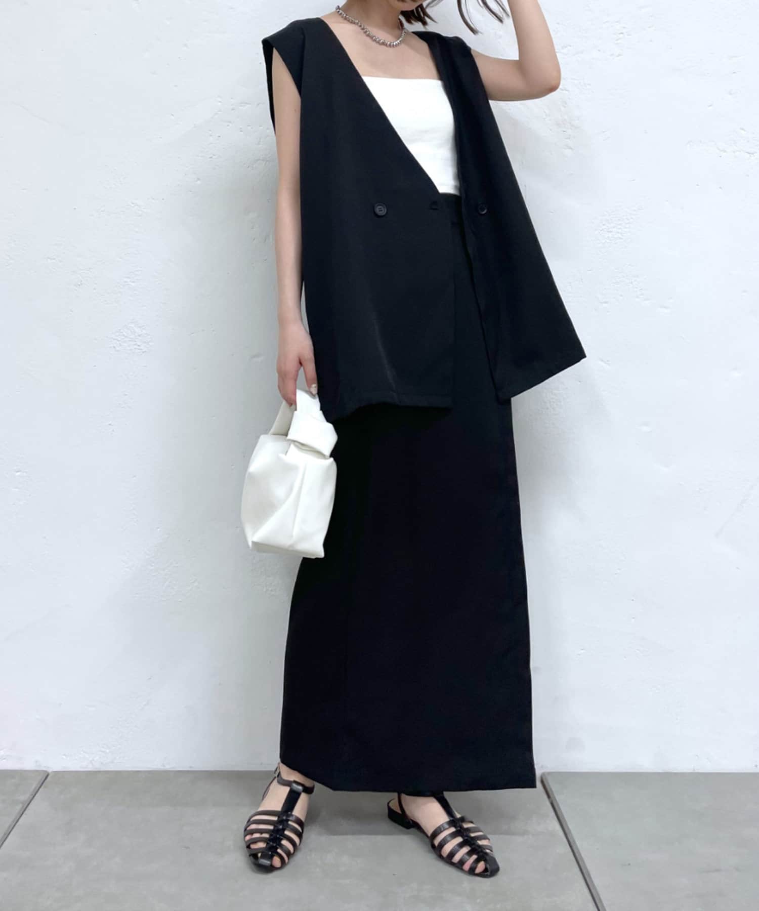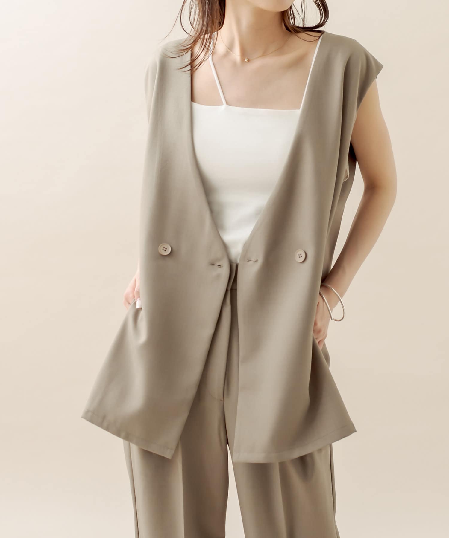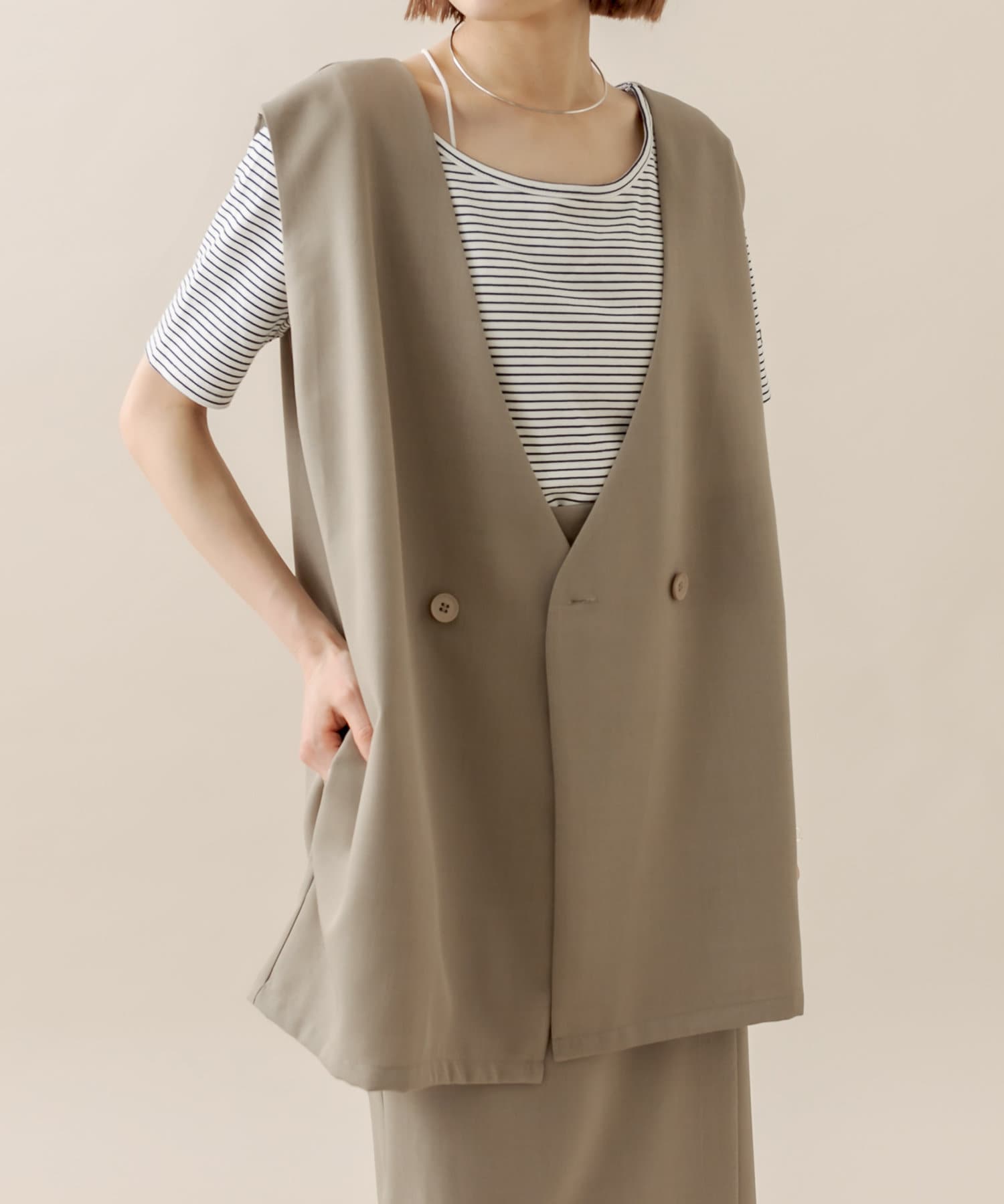トレンド感の強いジレですがシンプルで大人な印象にもあるデザインで