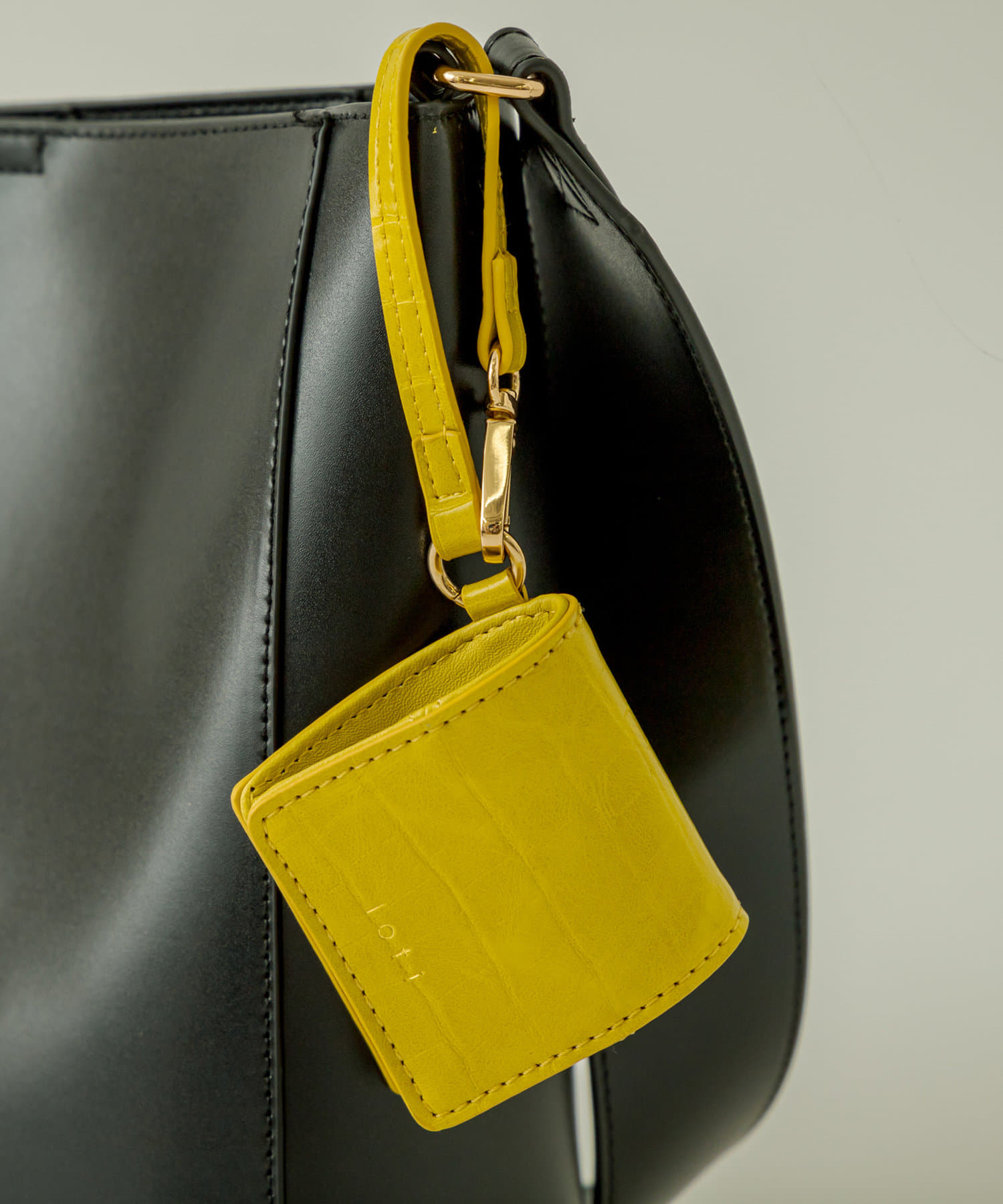 ・クロコ素材のコインケースは配色になっておりスタイリングのポイントに。