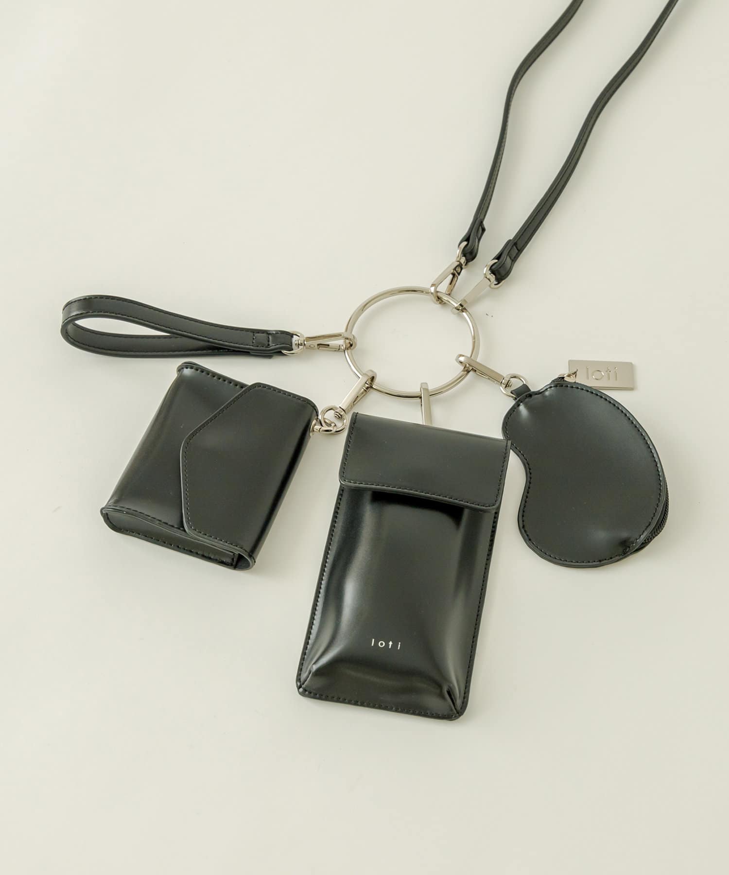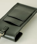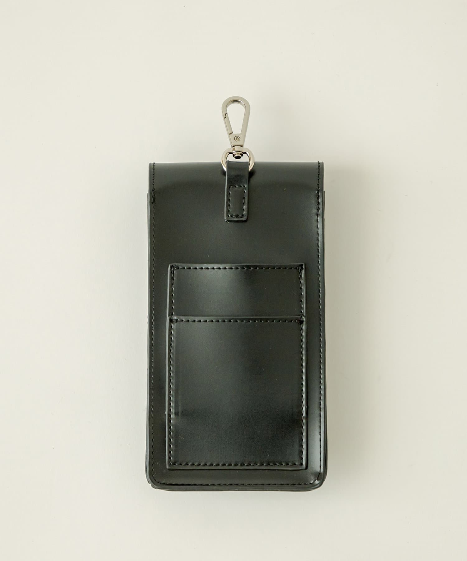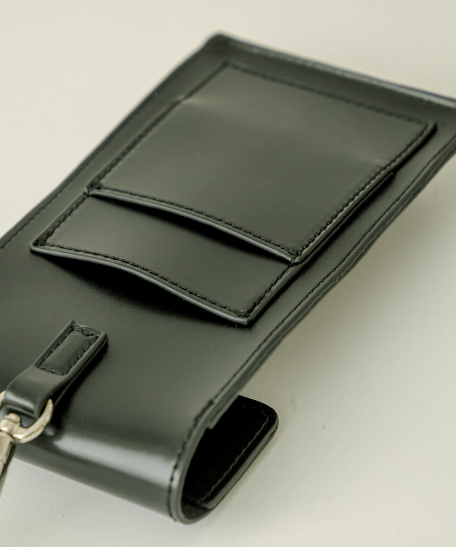 ・縦長デザインのポーチには携帯ケースが収納可能。裏面にはカードケースもついており機能性も◎