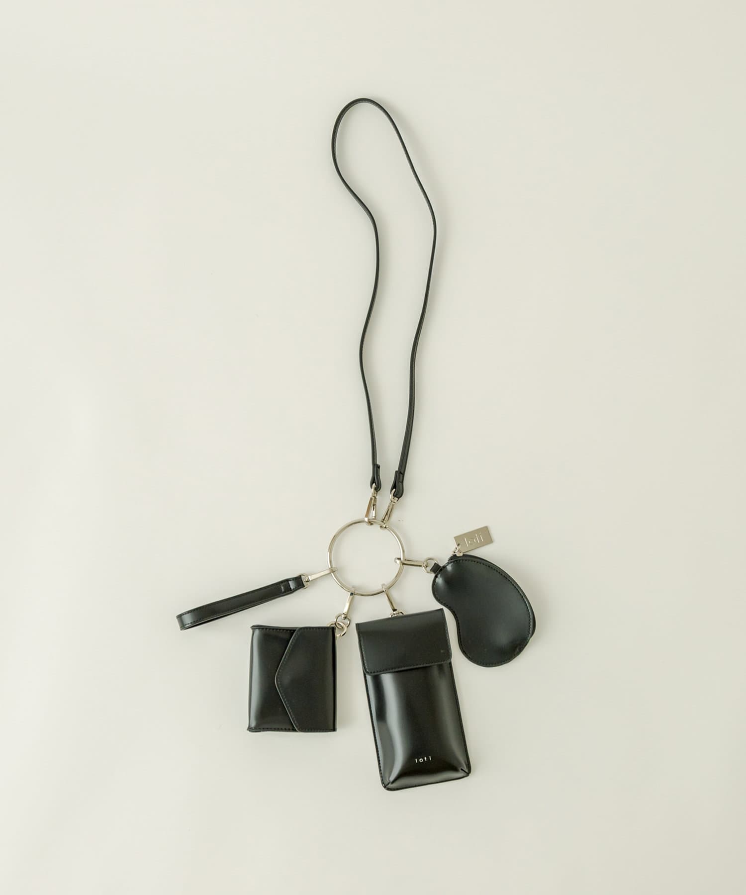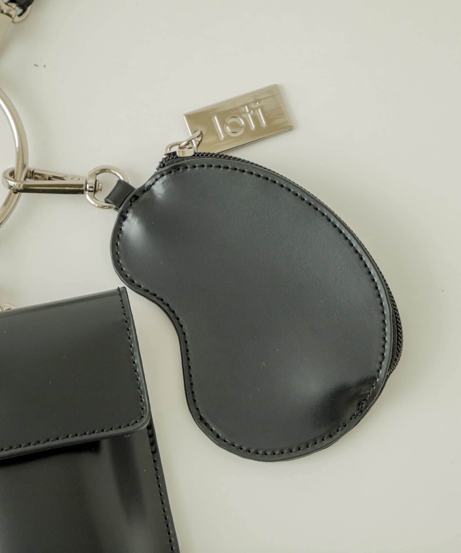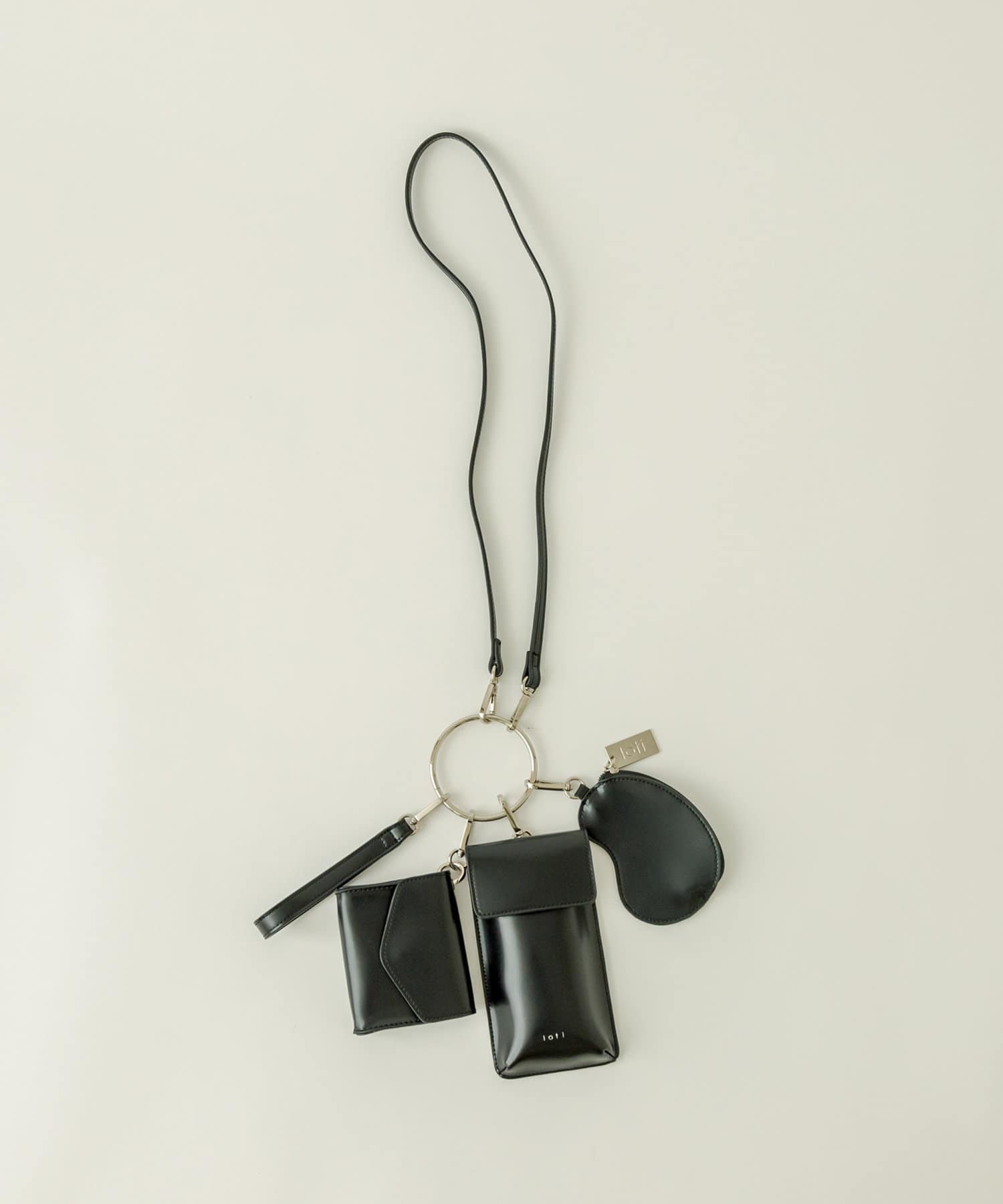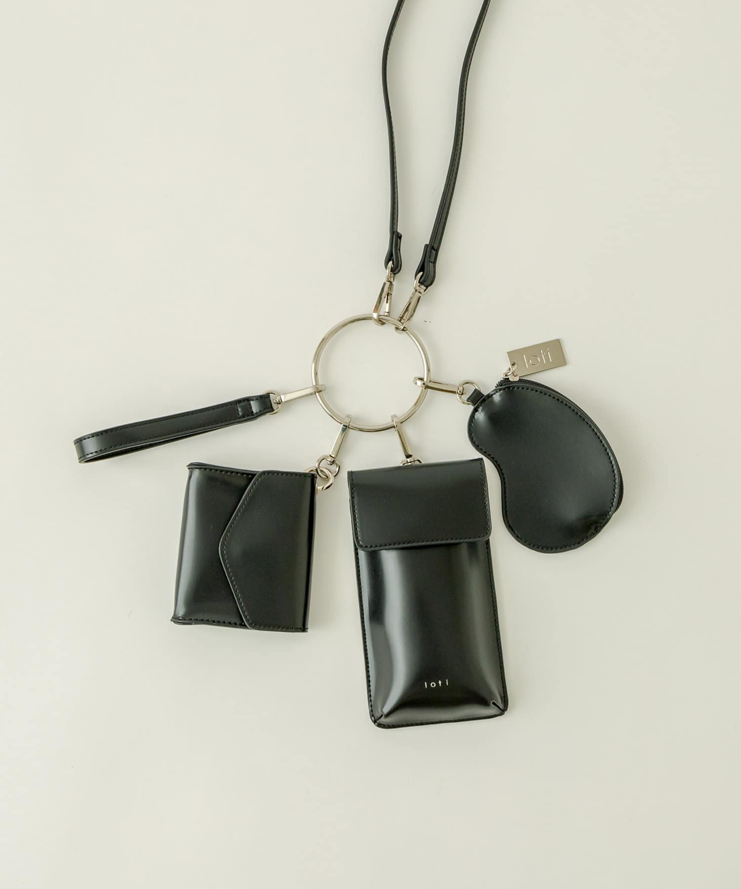 ・縦長デザインのポーチには携帯ケースが収納可能。裏面にはカードケースもついており機能性も◎