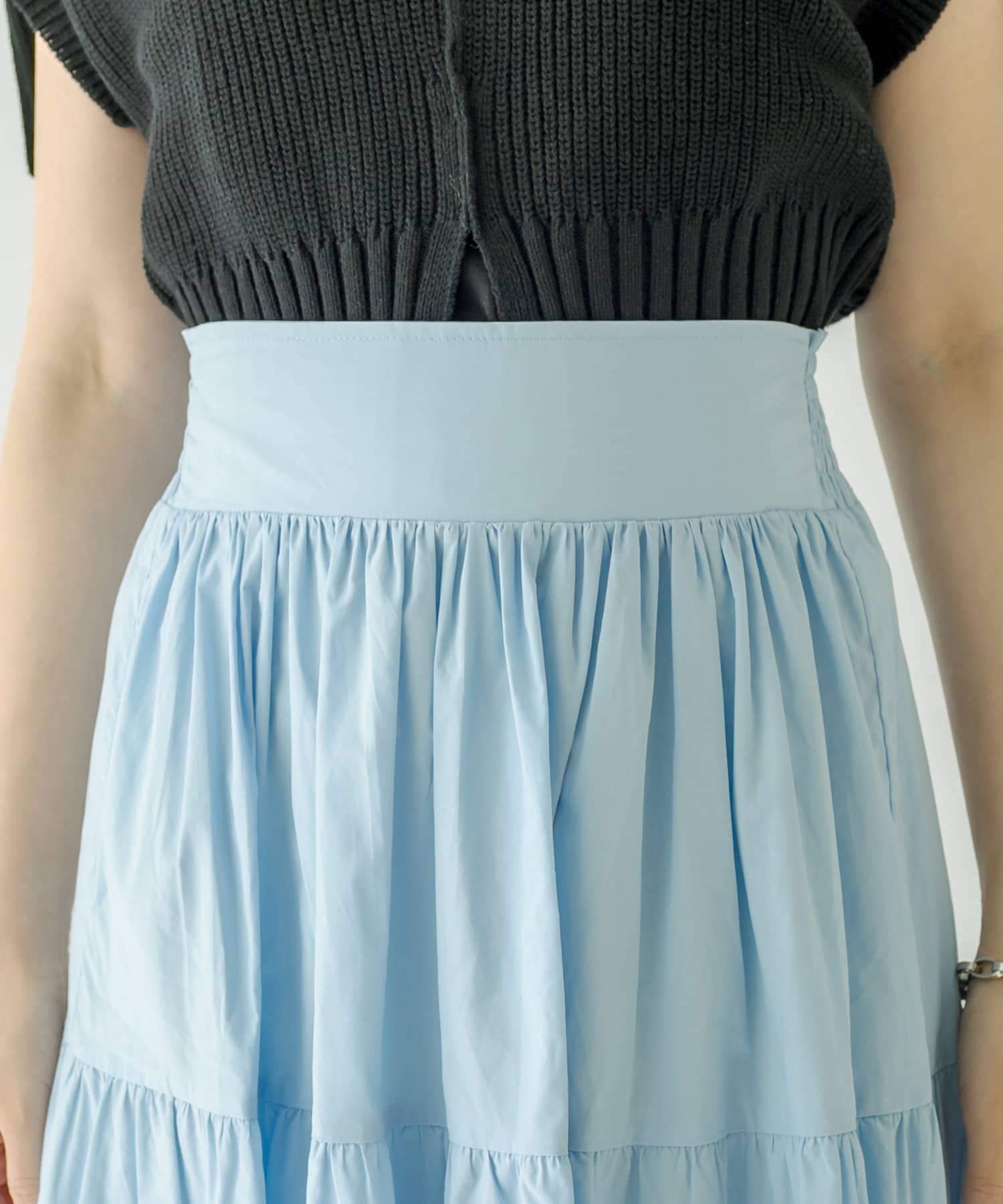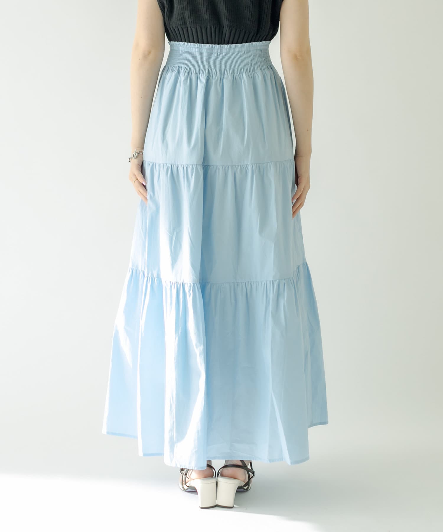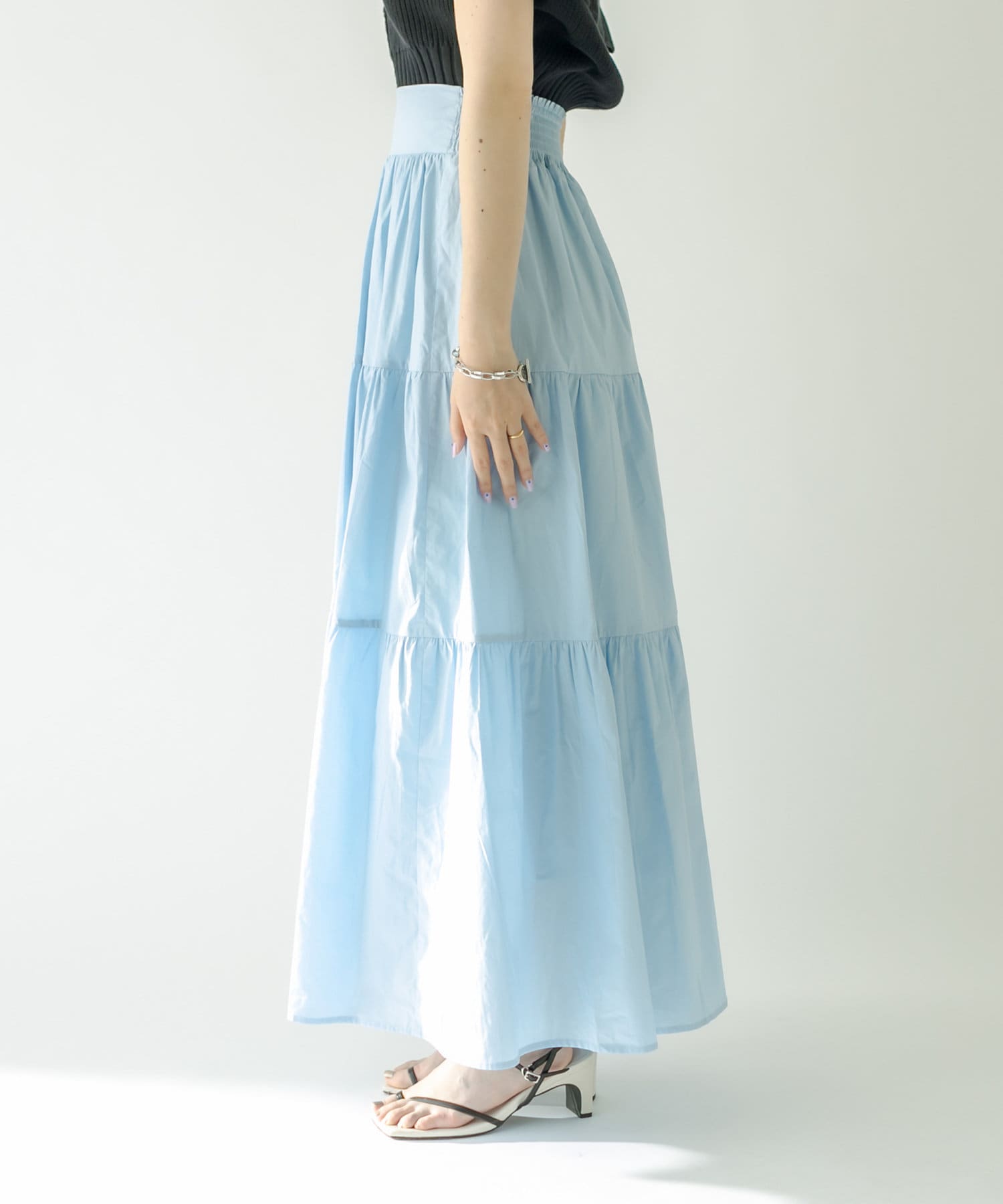 ・細かなシャーリングとティアードデザインが目を惹くスカート。