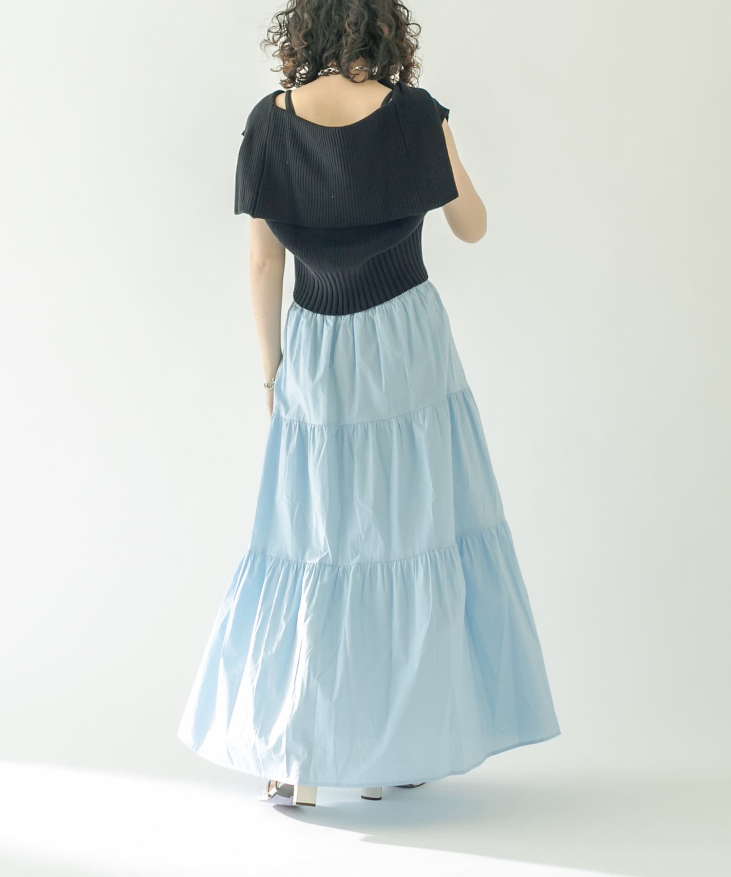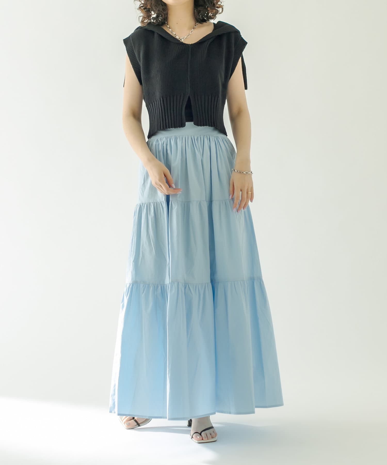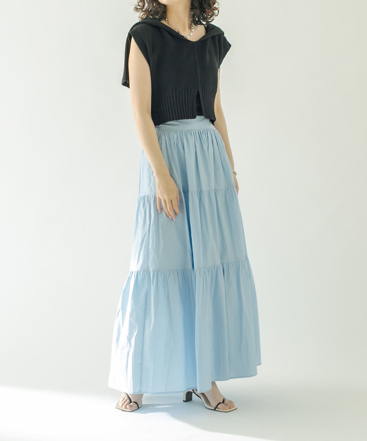 ・細かなシャーリングとティアードデザインが目を惹くスカート。