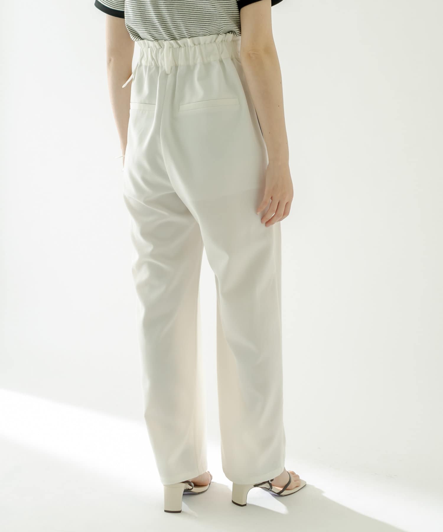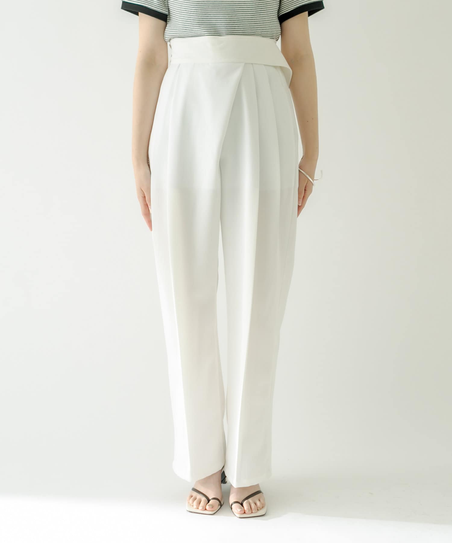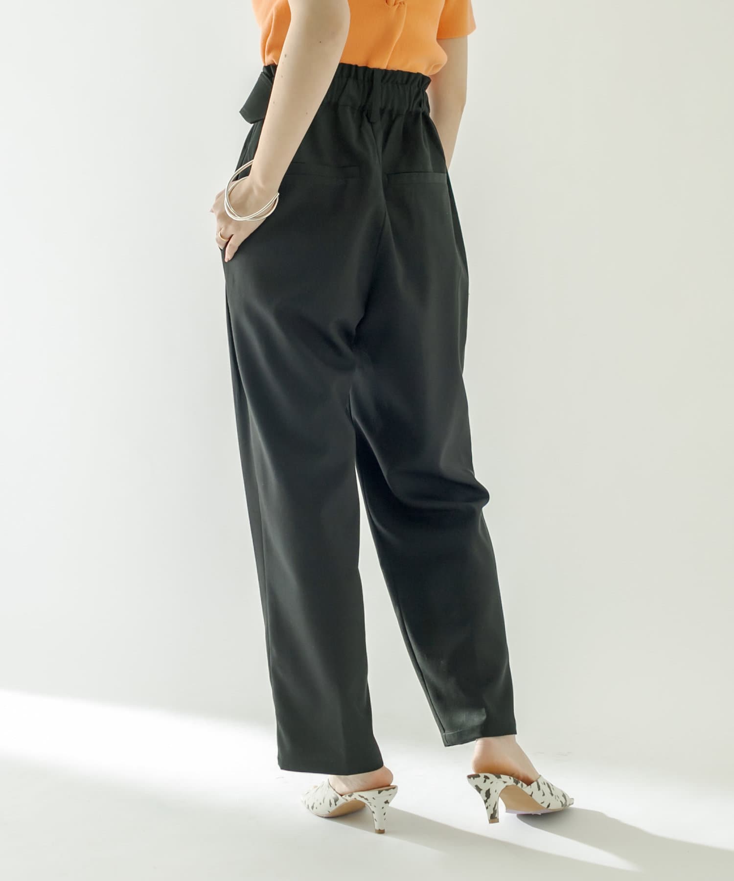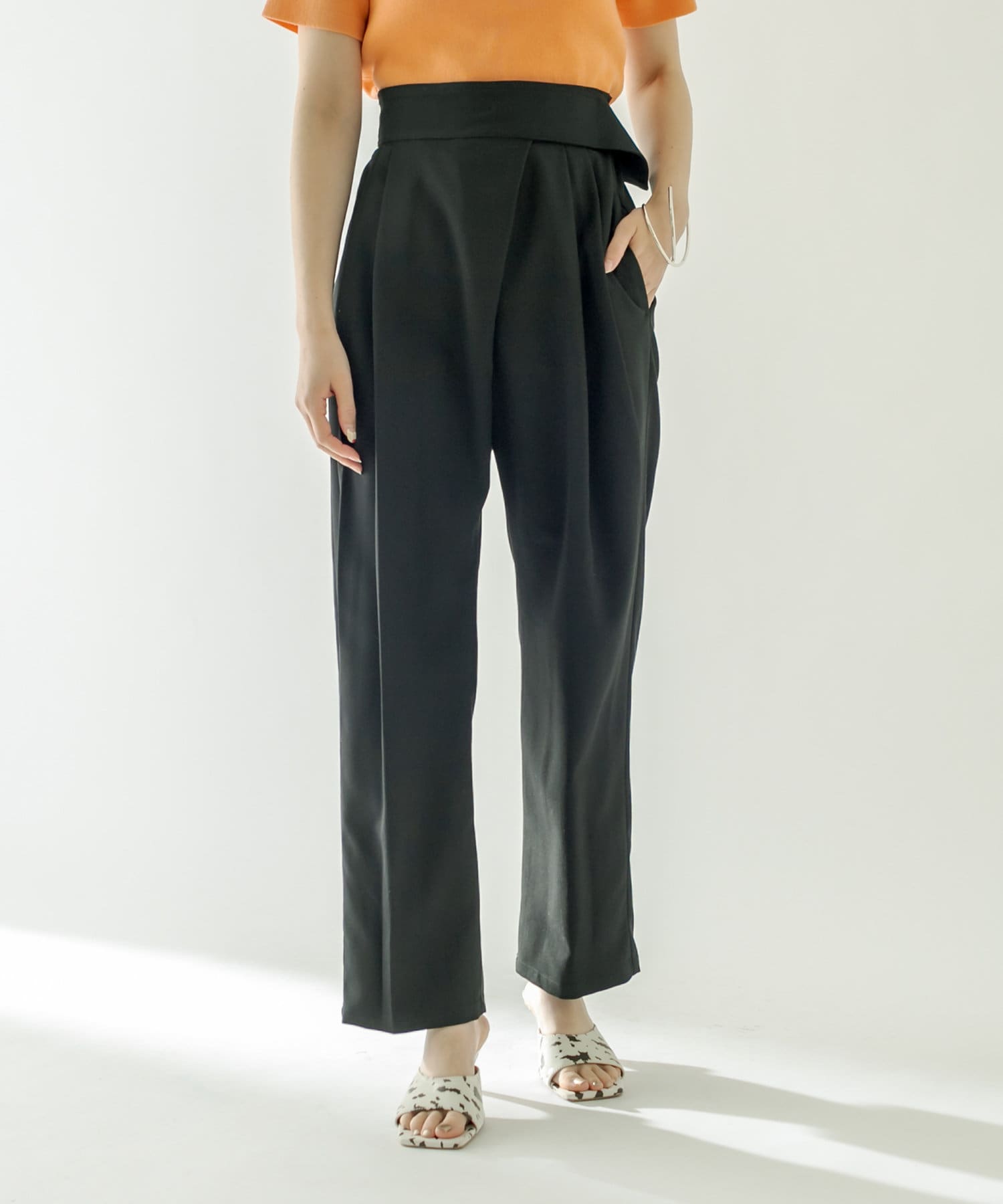・フロント部分にタックが入った美脚見え間違いなしのハイウエストパンツ。