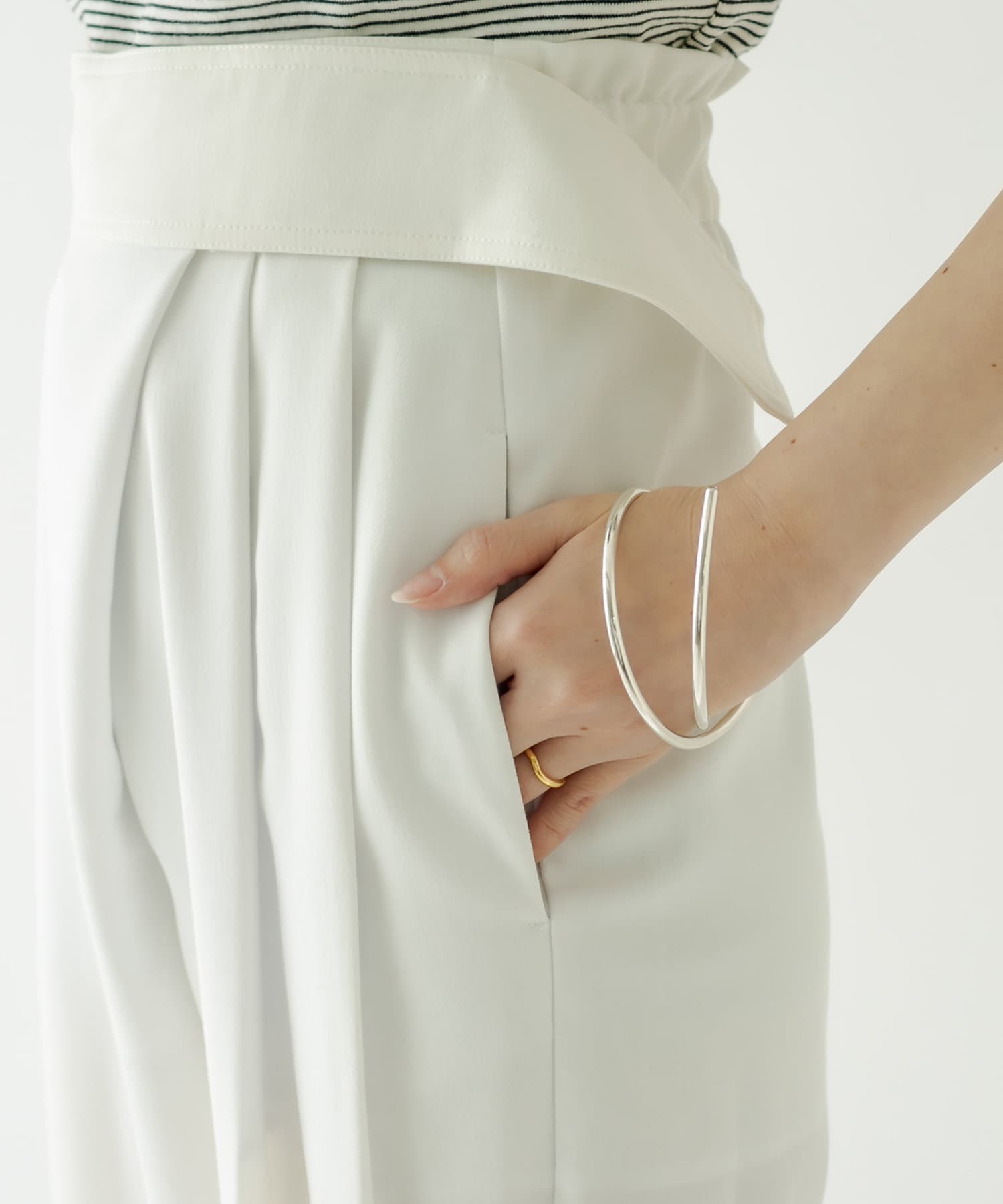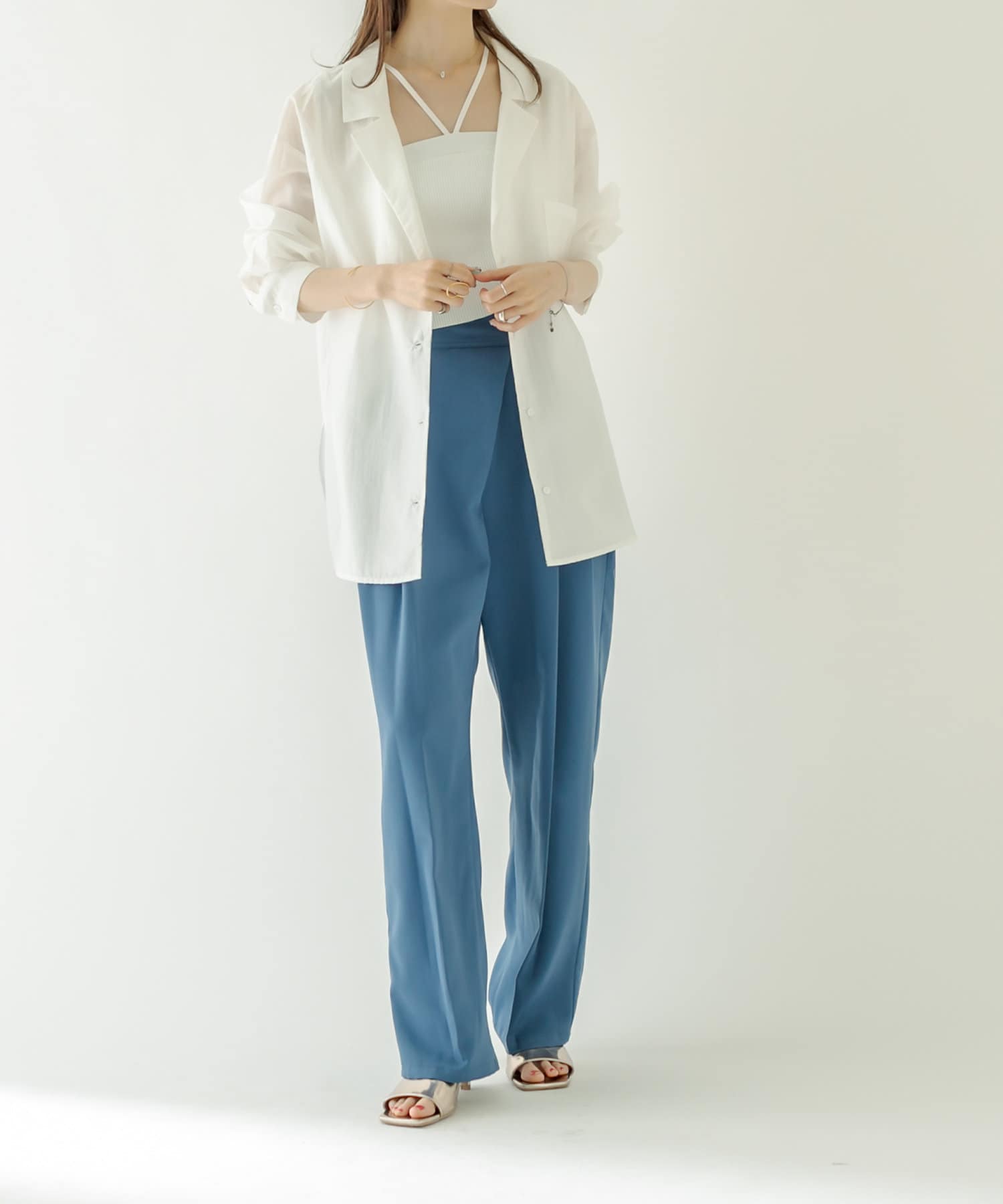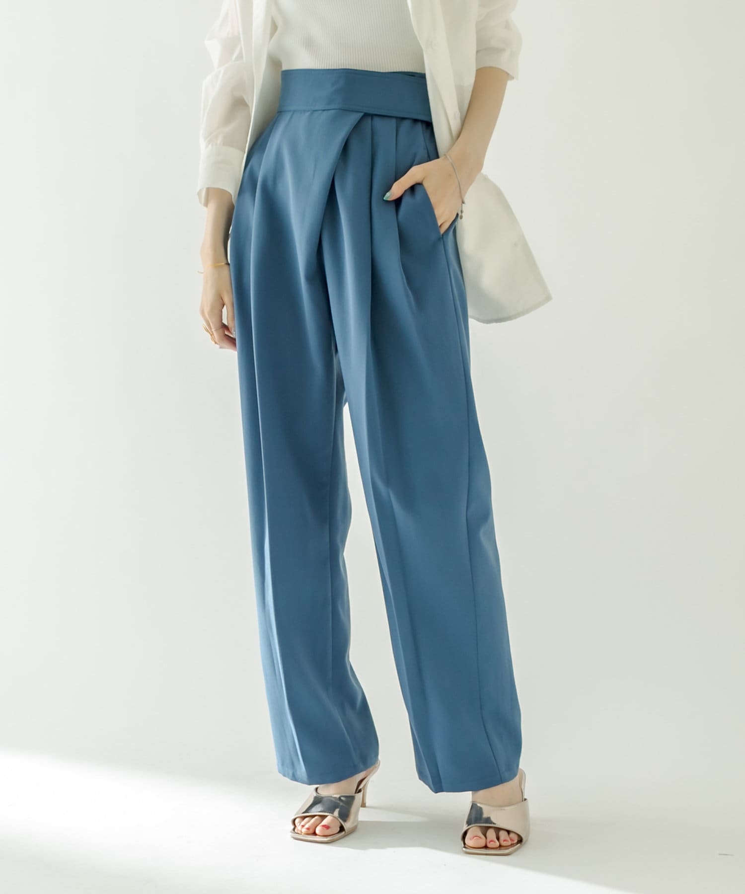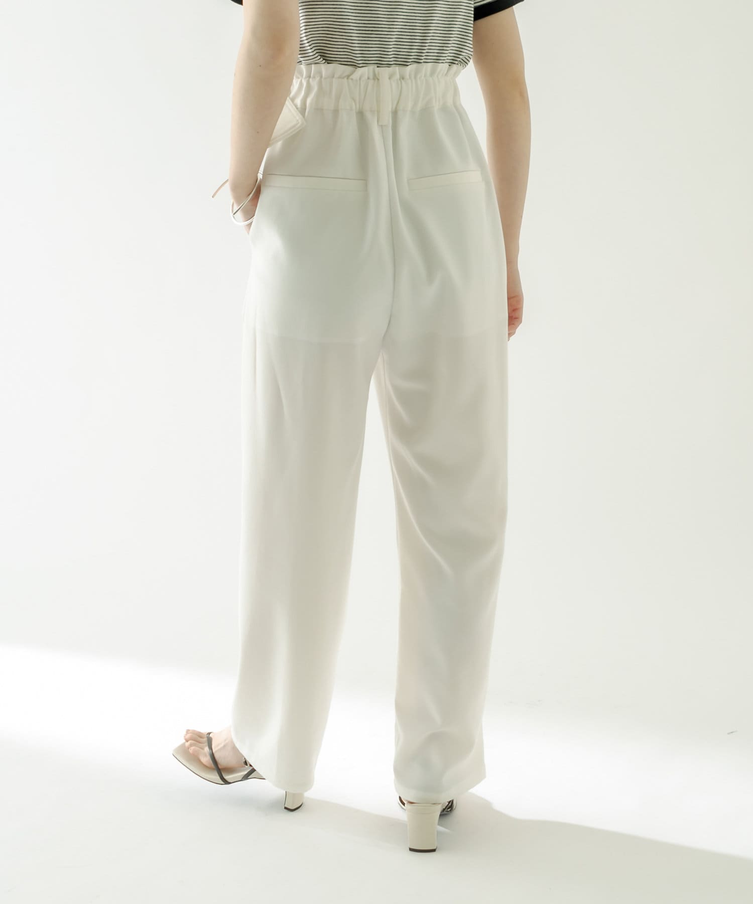 ・フロント部分にタックが入った美脚見え間違いなしのハイウエストパンツ。