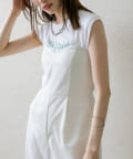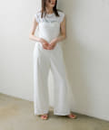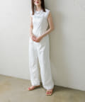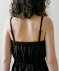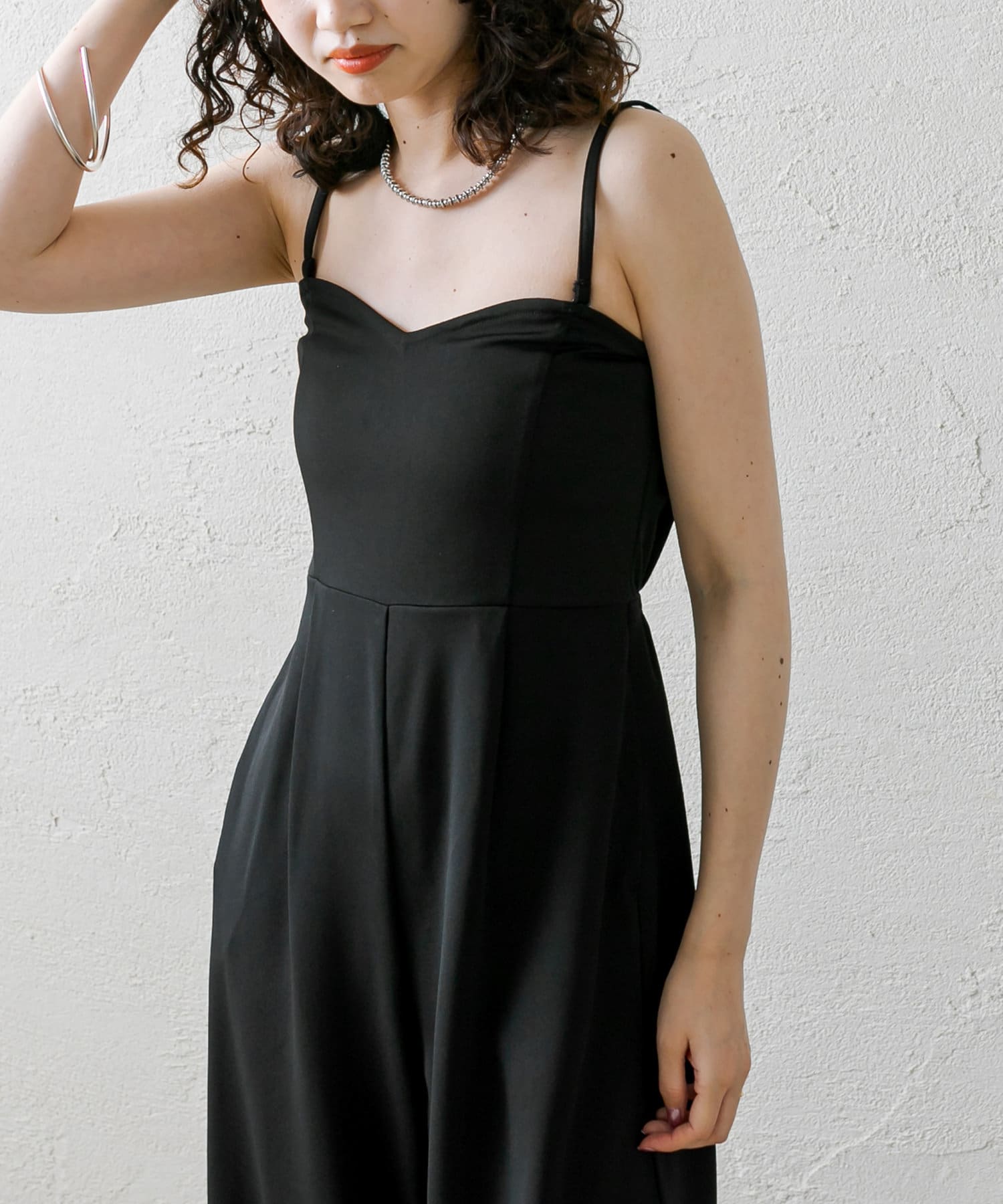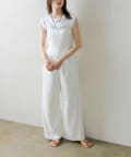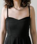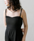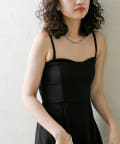 デコルテラインがすっきり見えるデザインなので全体的なシルエットに程よく抜け感をプラスしてくれます。パット付きのキャミソールに合わせて夏らしく涼しげな印象に◎