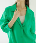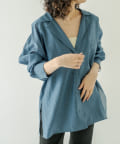 デコルテラインがすっきりみえる開襟シャツ!パット付きインナーと合わせるのがオススメ◎