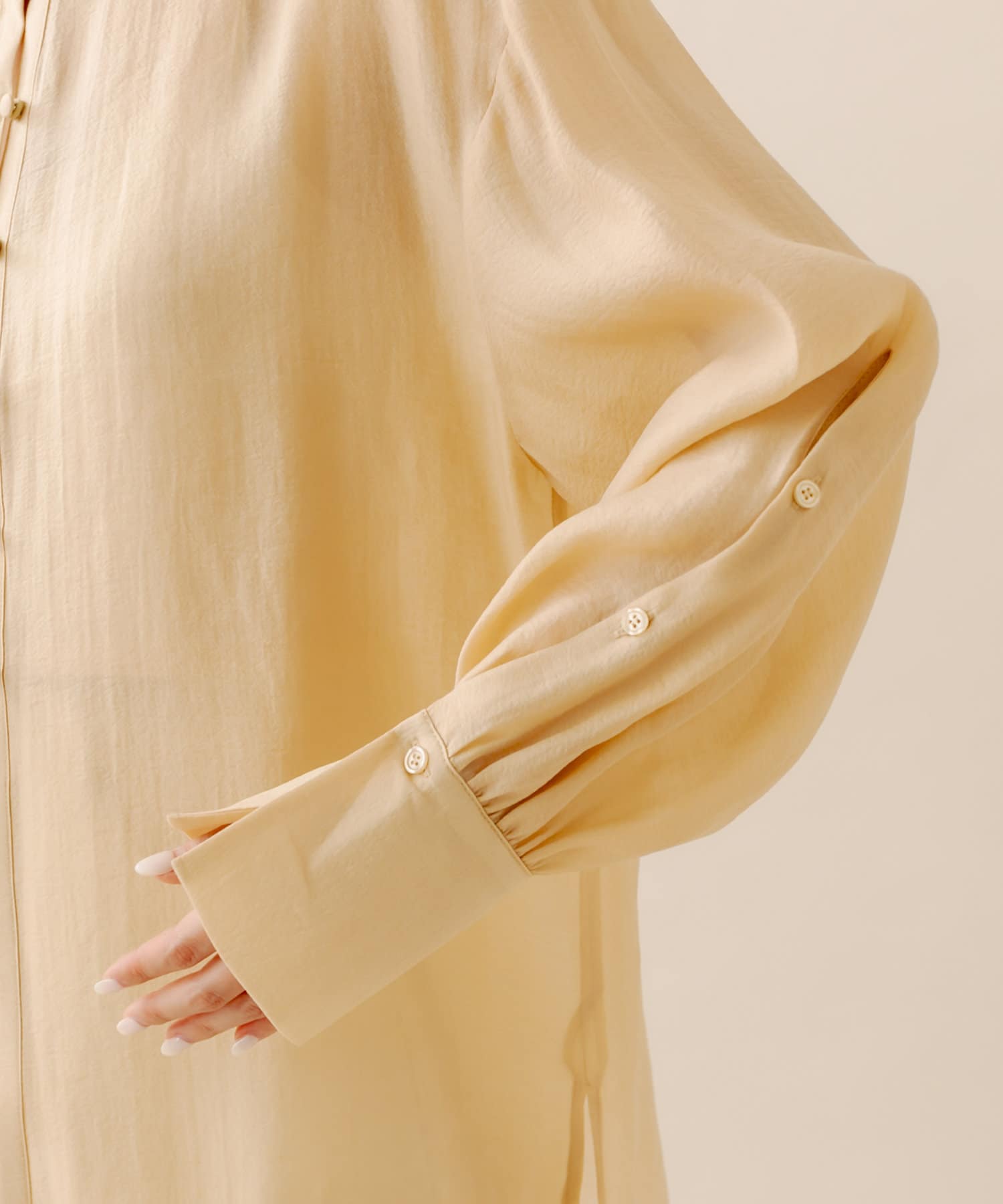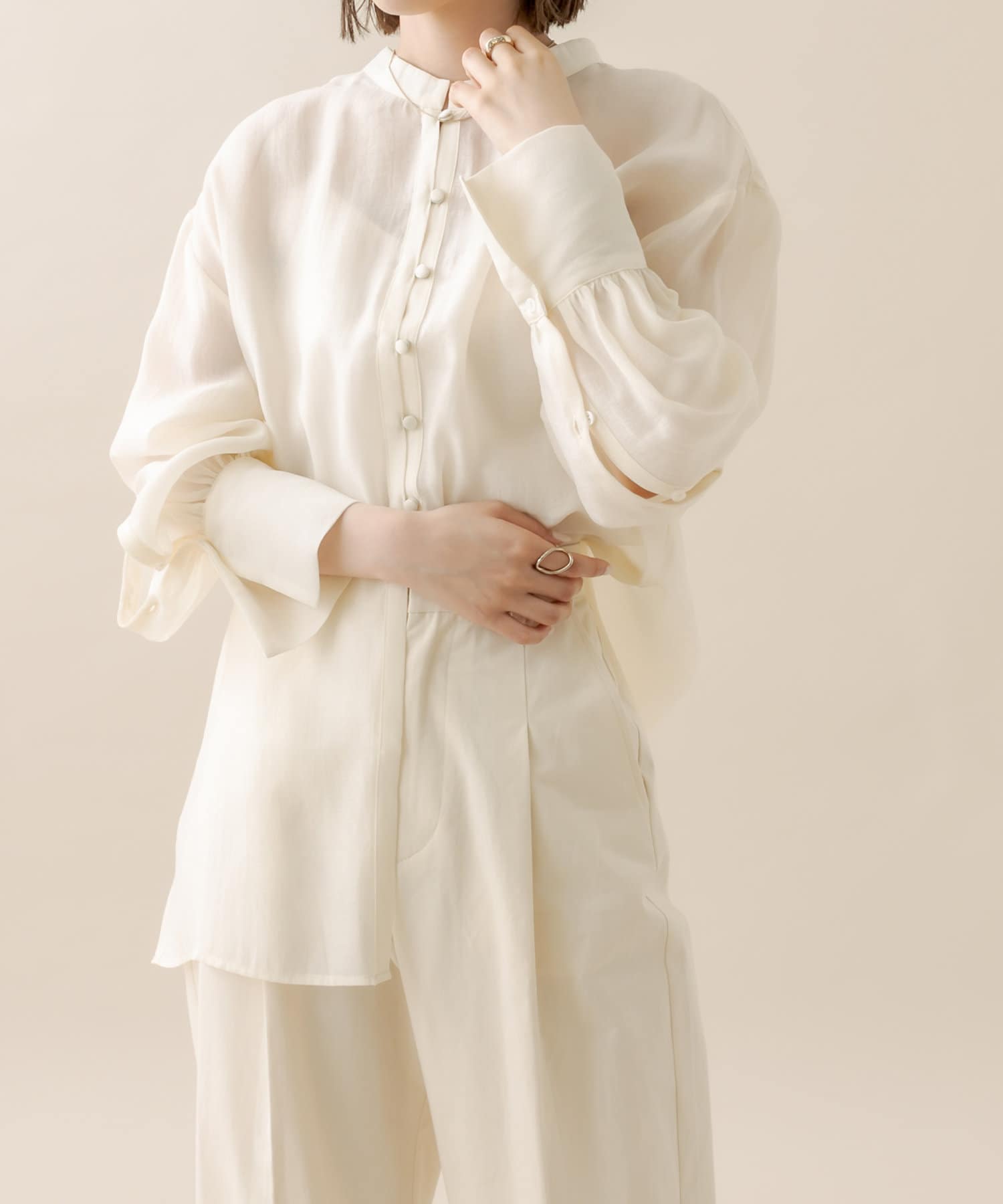 ・ビックカフスデザイン、袖元のボタンもポイントに、お袖ボタンを取ってコーデに抜け感を