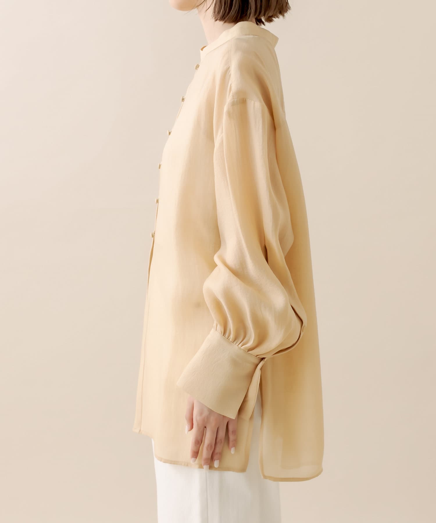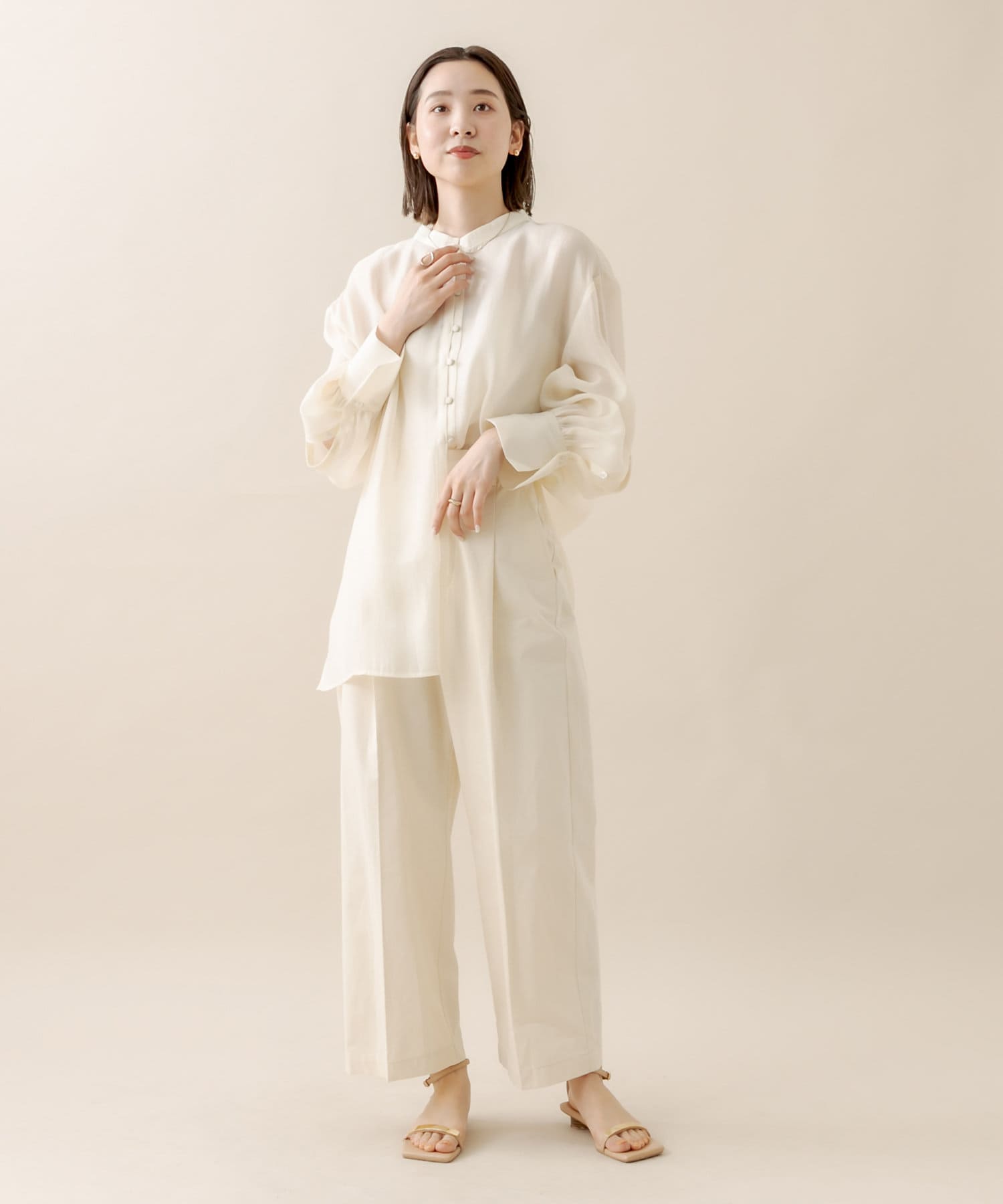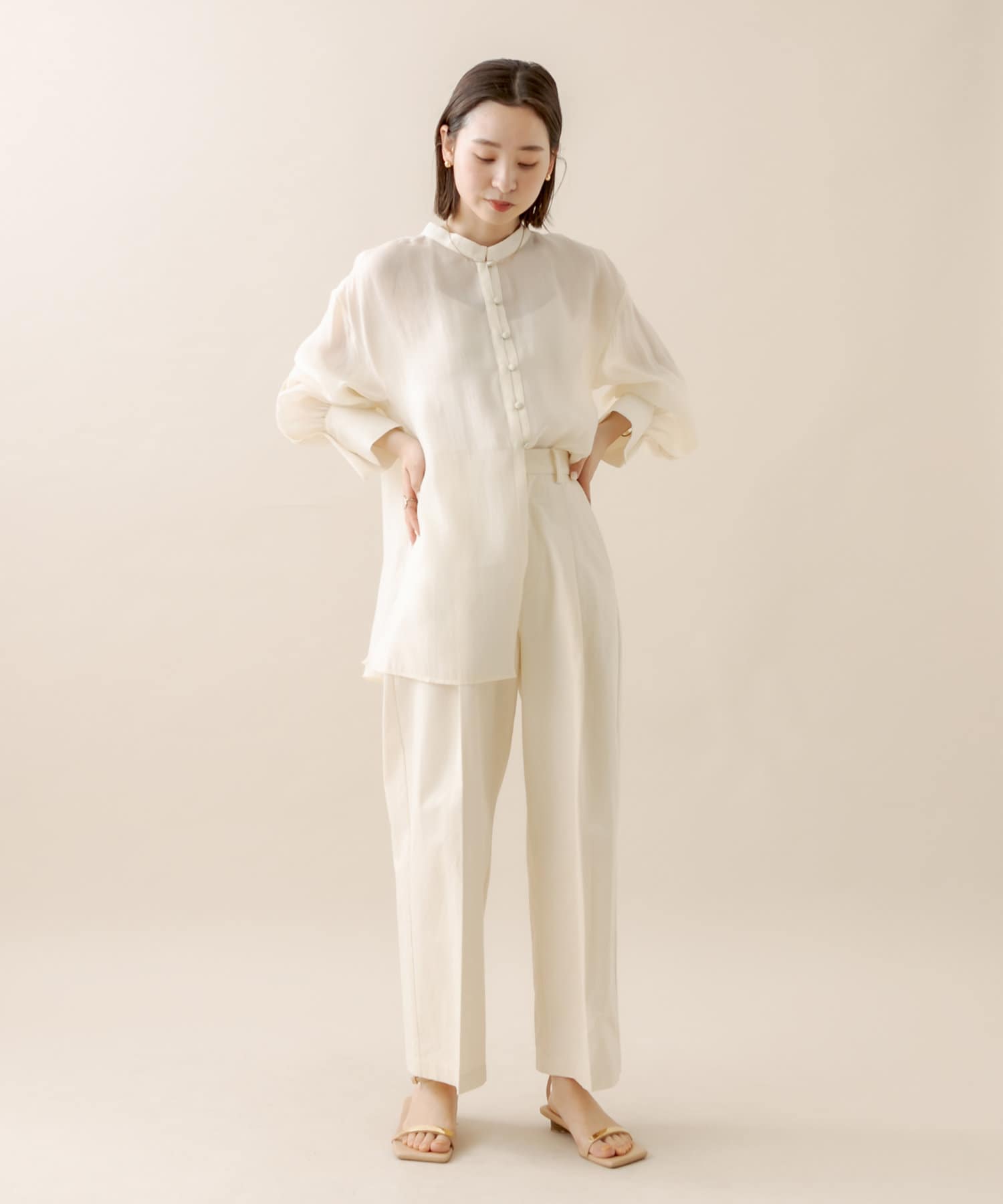 ・上品かつ洗練されたシアー素材がコーディネートに高級感を演出