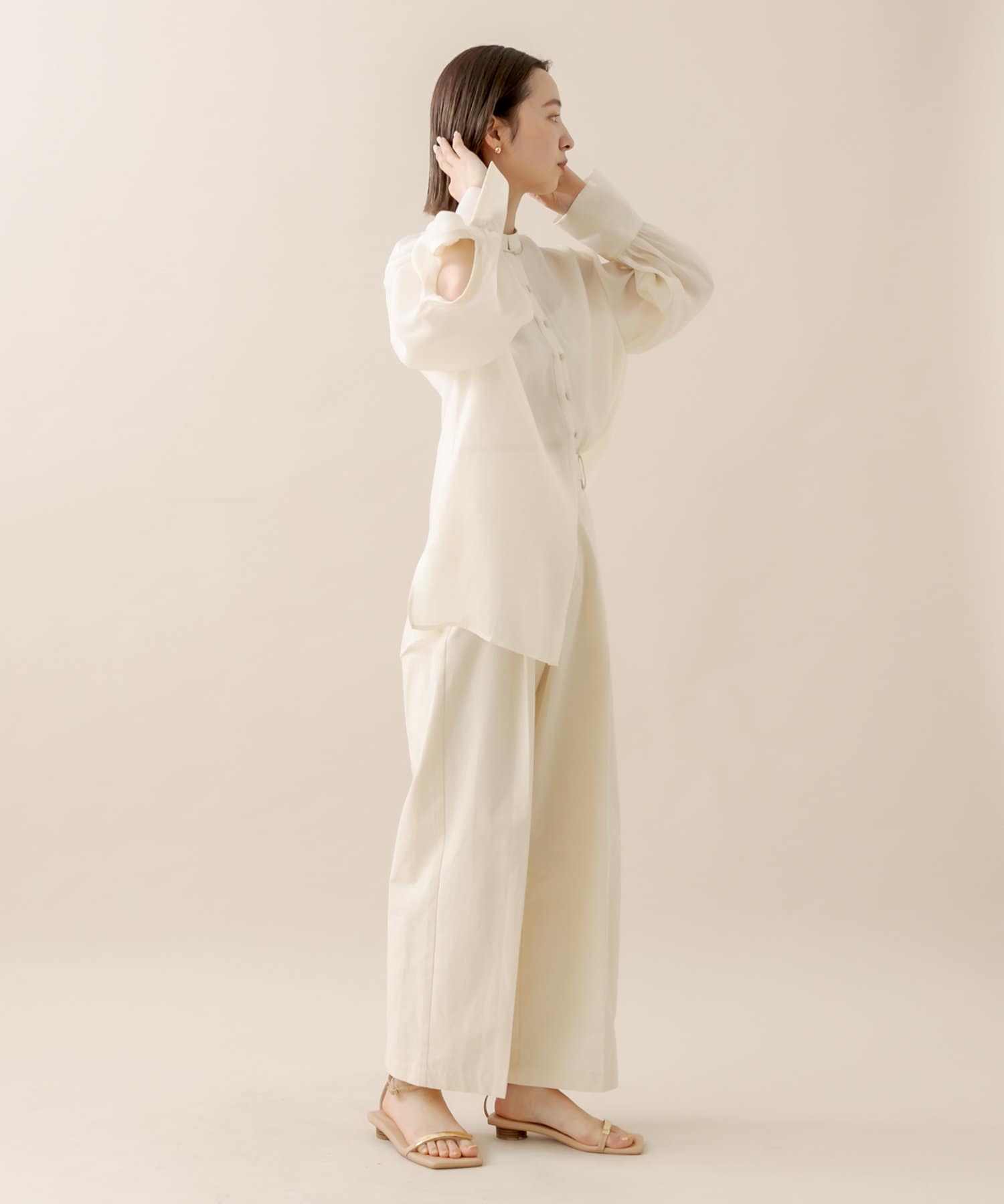 カラーパンツとの相性も◎ショートインナーと合わせてサラッと羽織りスタイルで夏のバランスコーデが実現‼