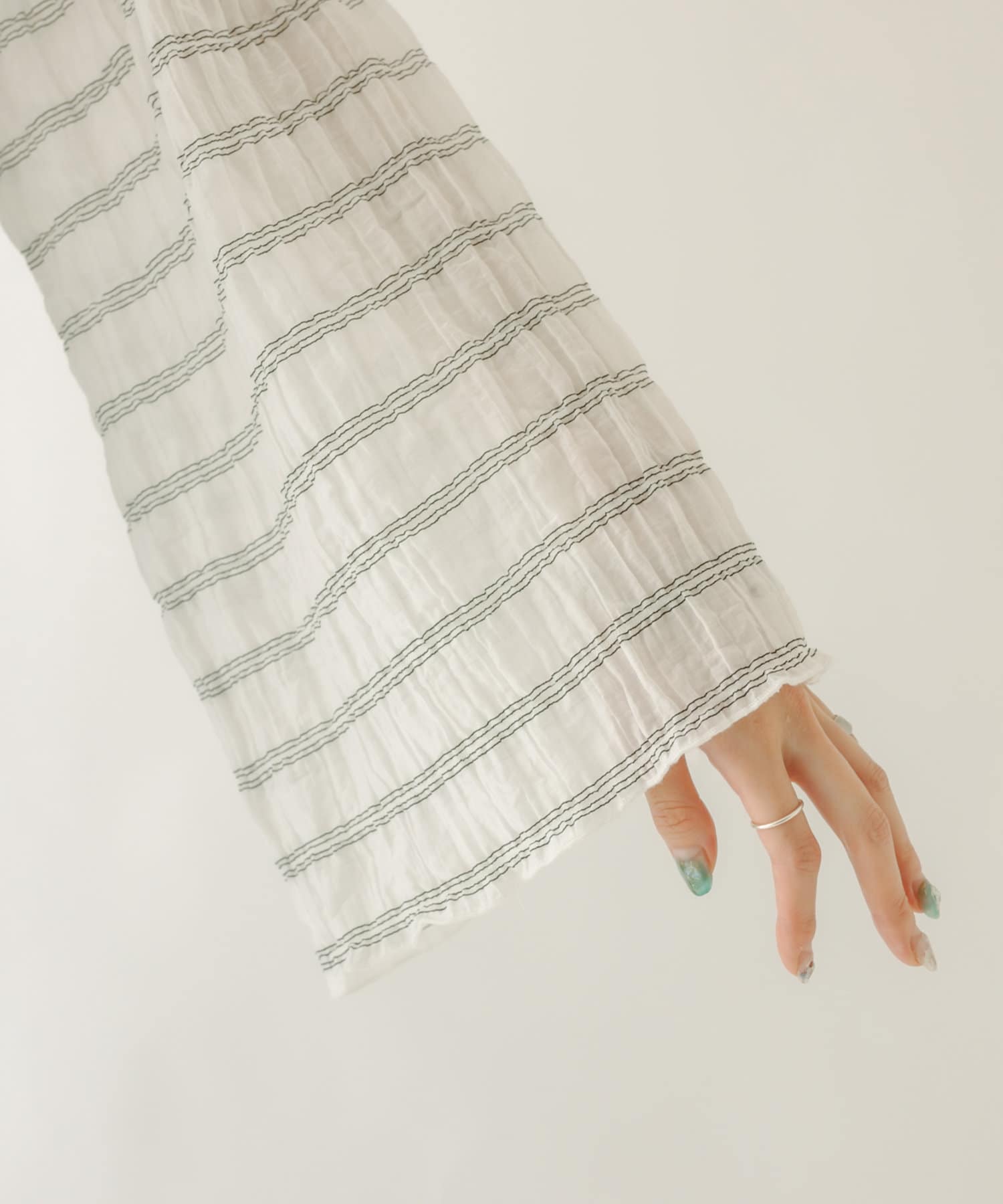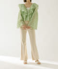 ボリューム感のあるブラウスなので羽織として首回りをすっきり見せるのがオススメです!