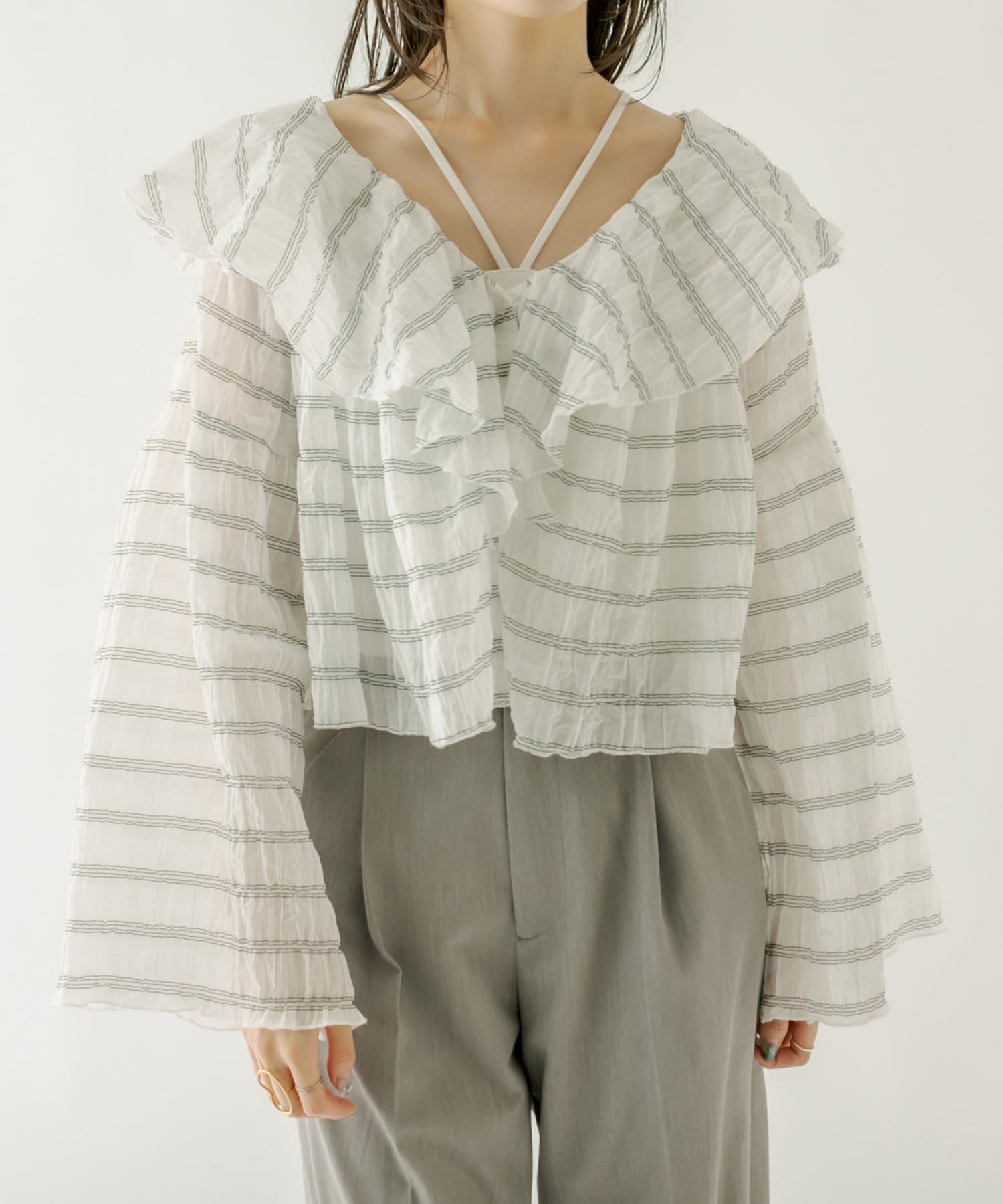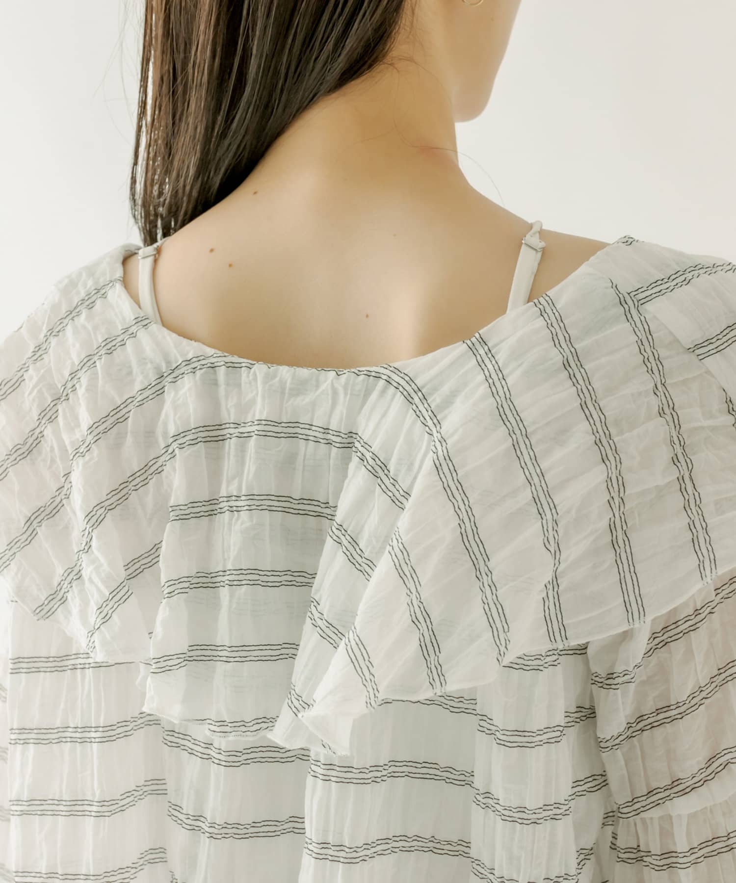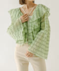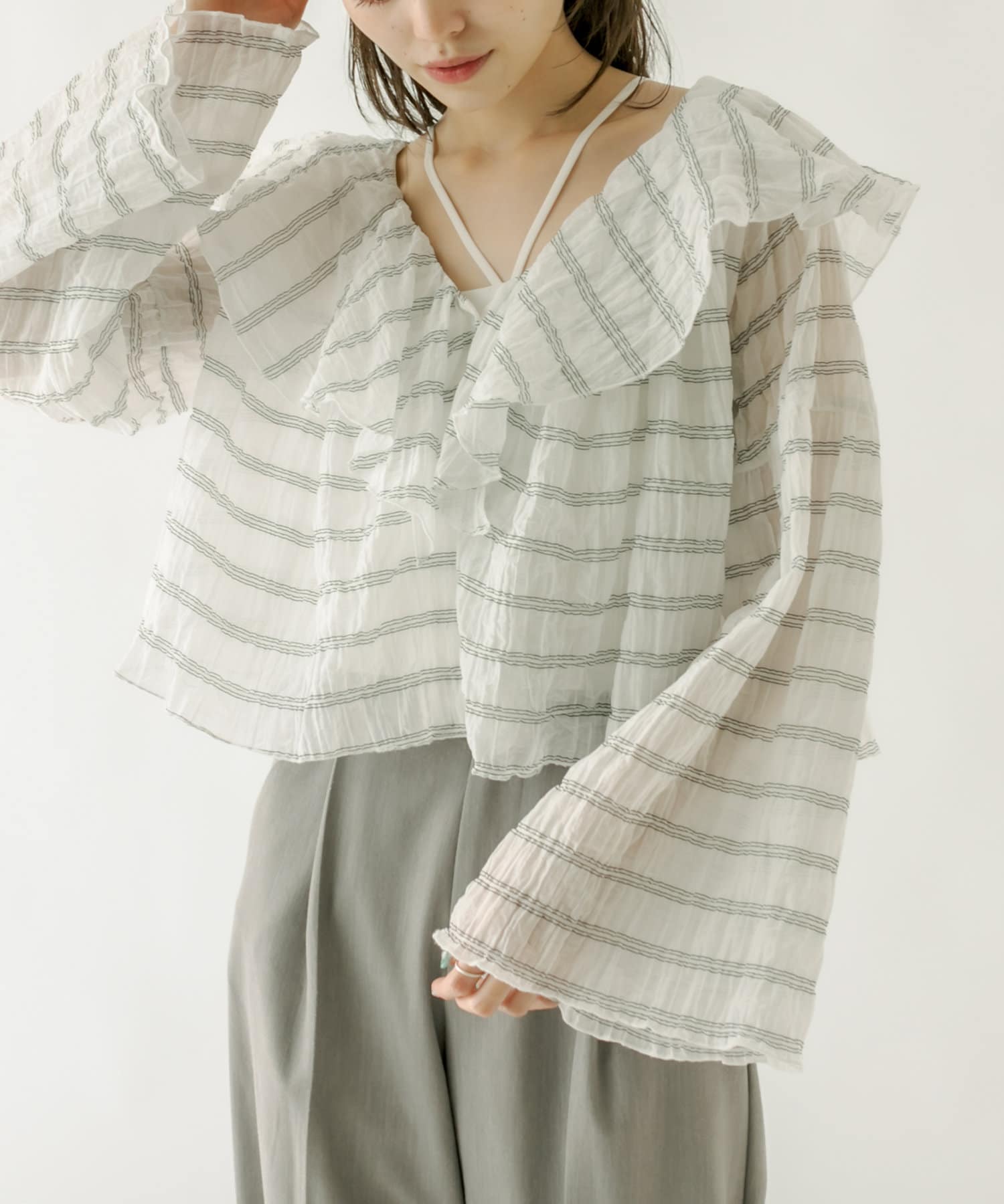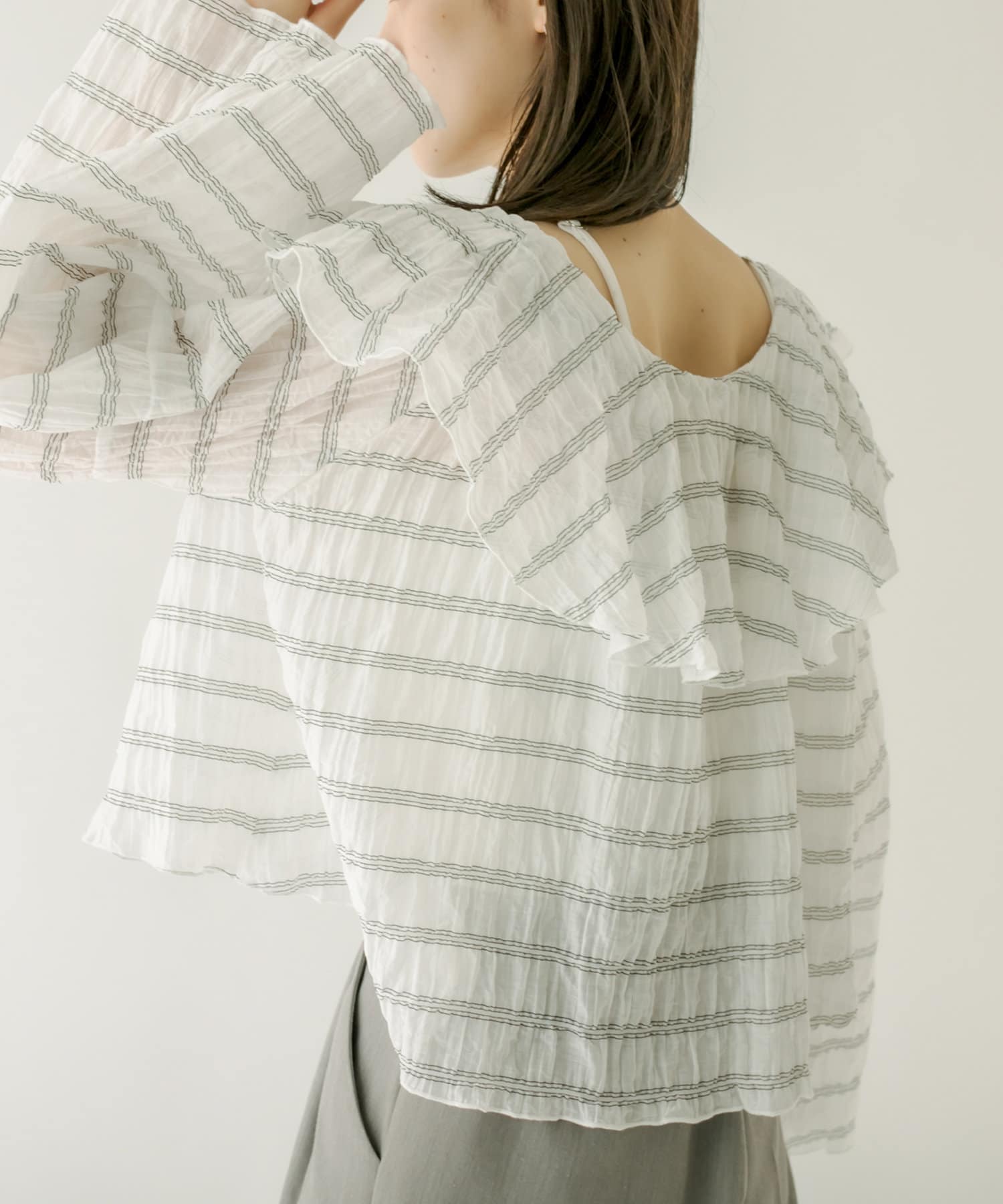 ラッフルデザインが華やかな印象のシアーブラウス!