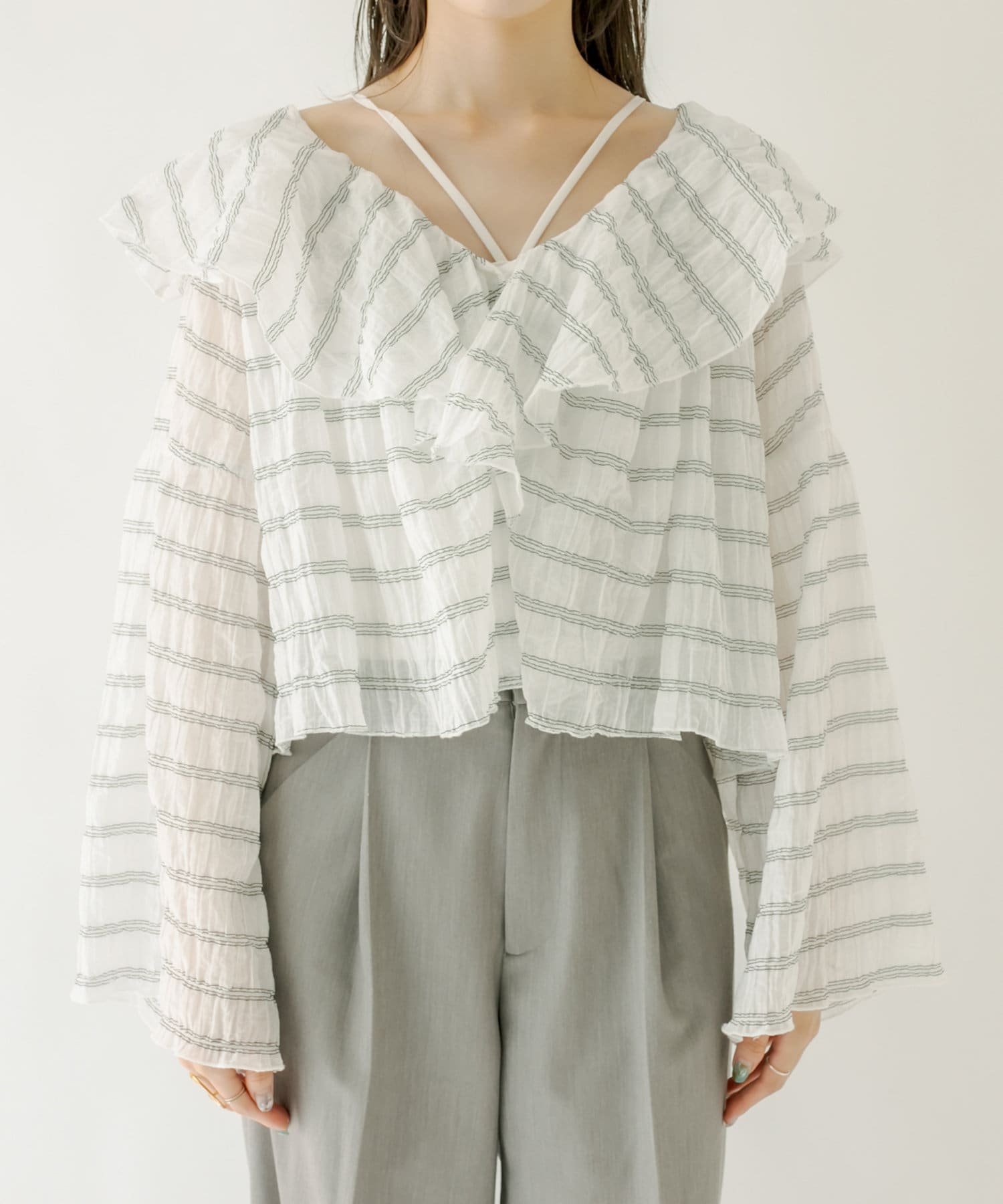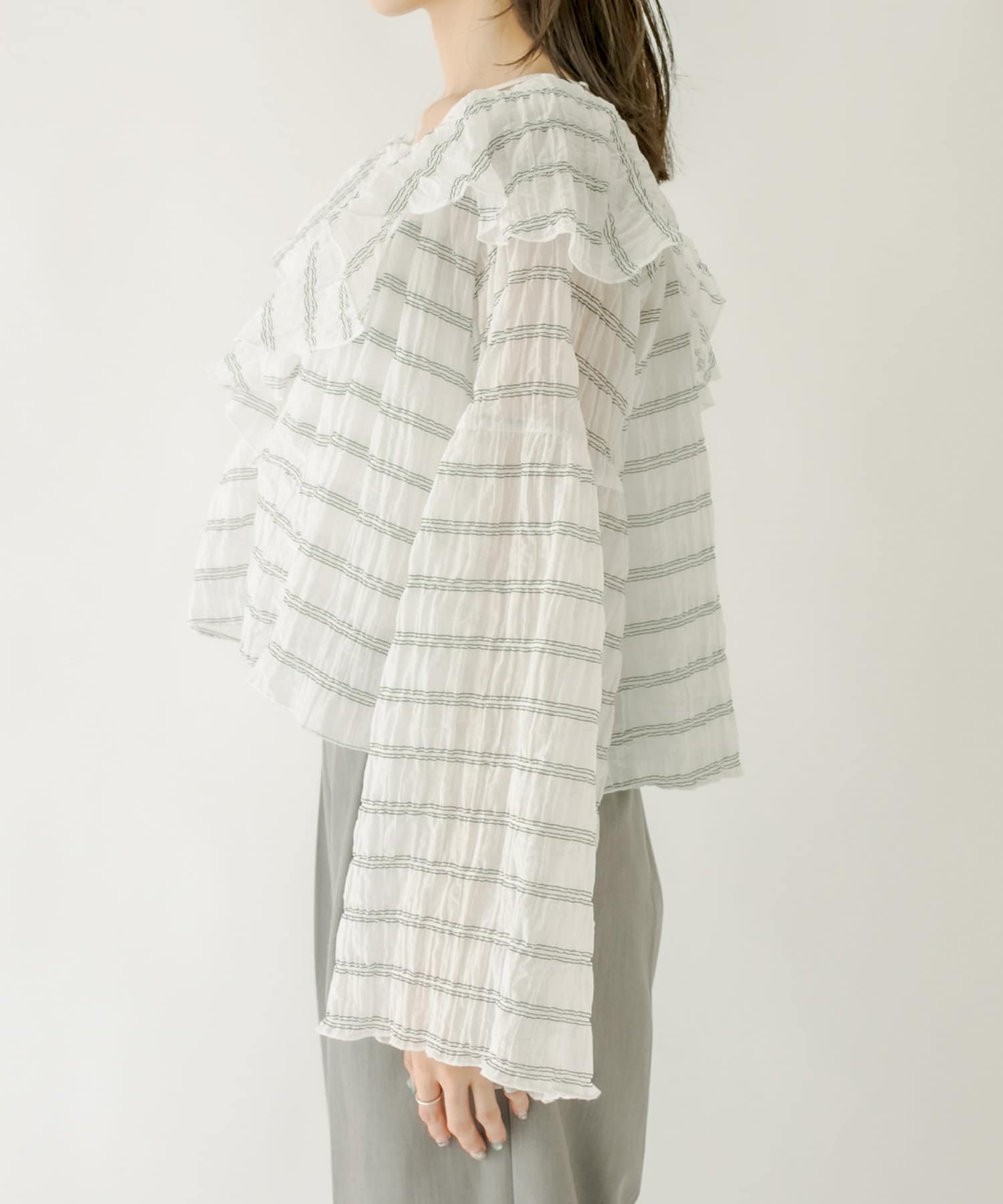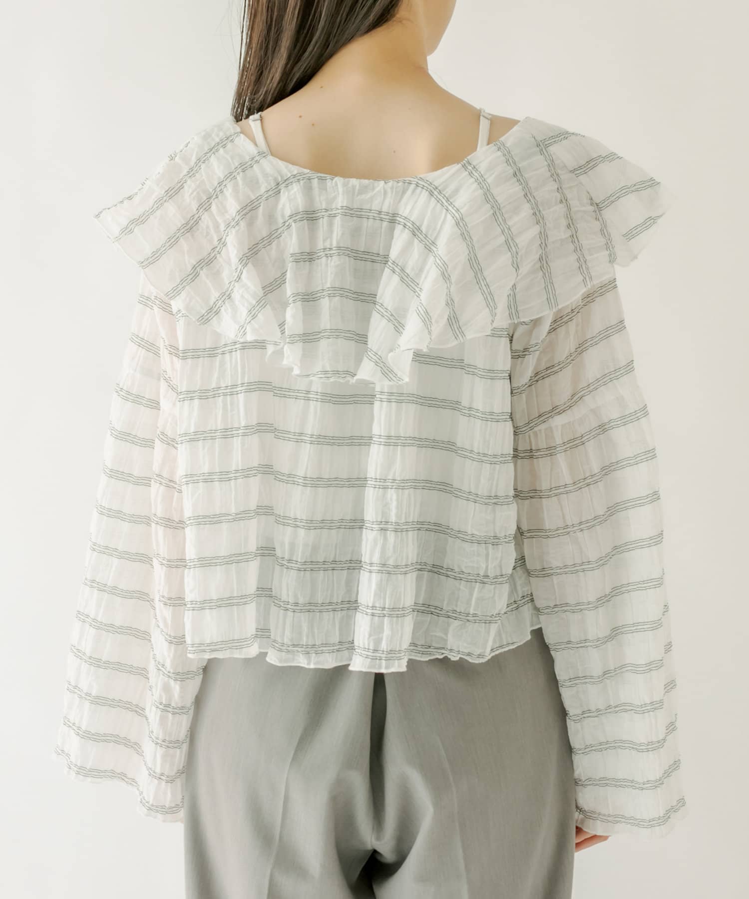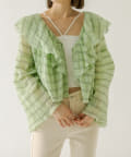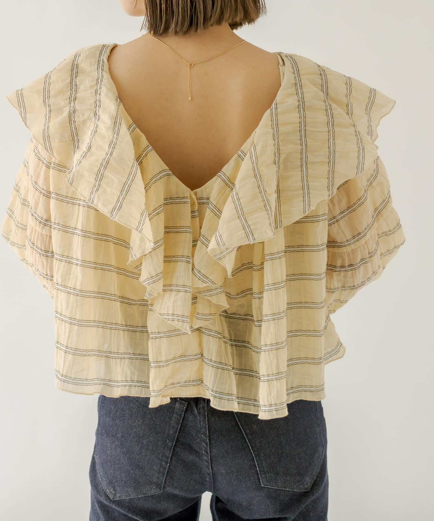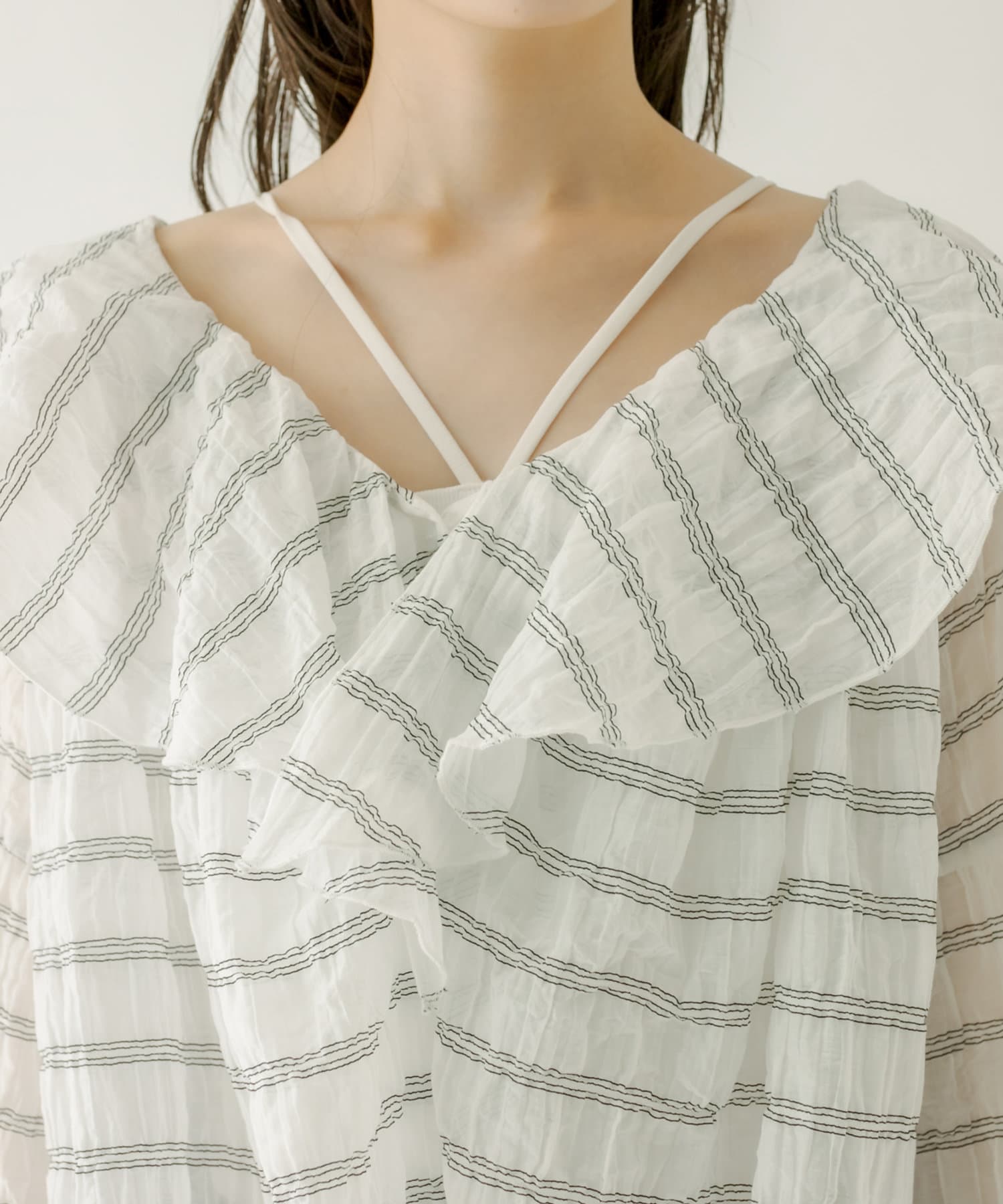 ラッフルデザインが華やかな印象のシアーブラウス!