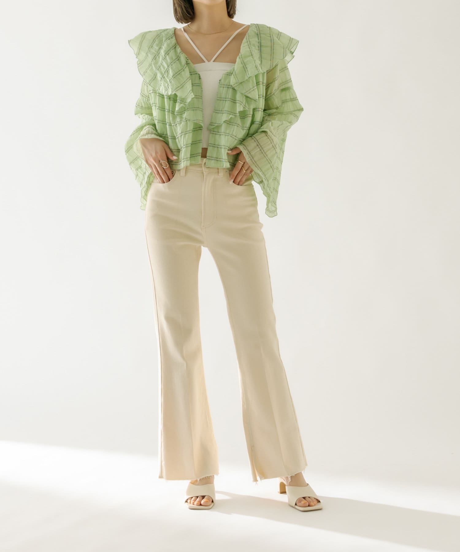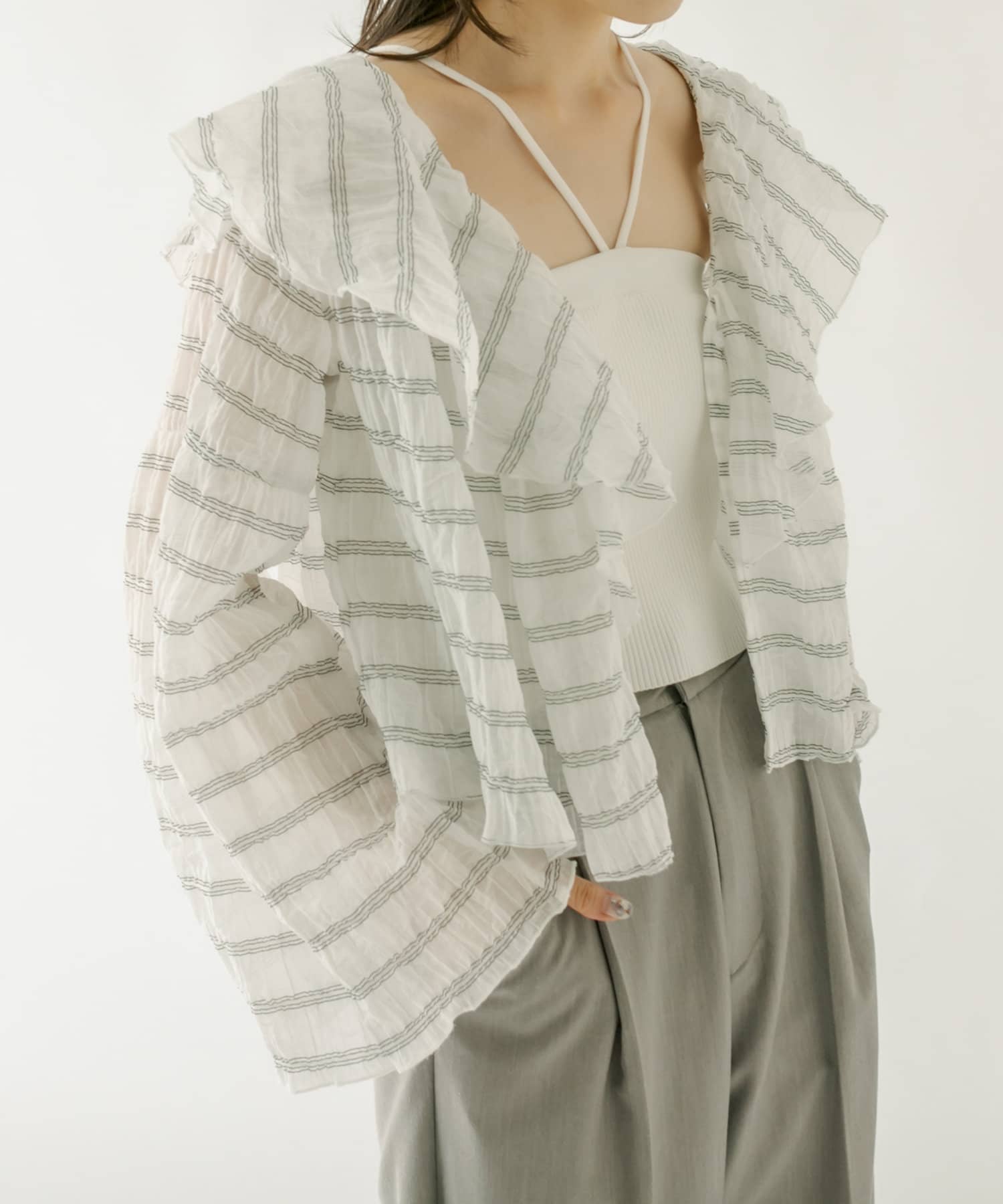 ・1枚でスタイリングが決まるラッフルデザインが目を惹くデザイン。