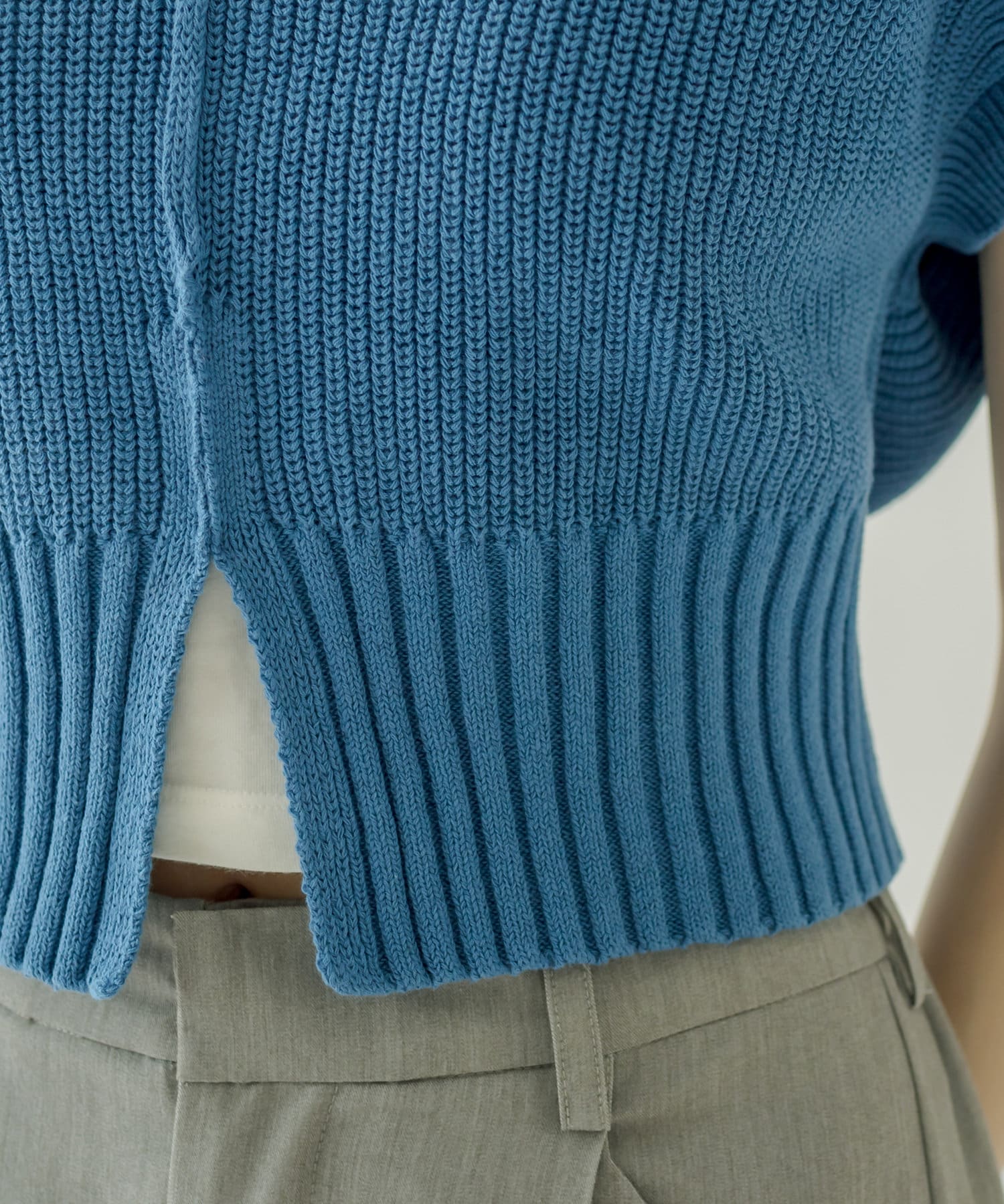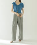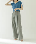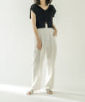 ・コンパクトな丈感なのでハイウエストのボトムに合わせてスタイルアップに。