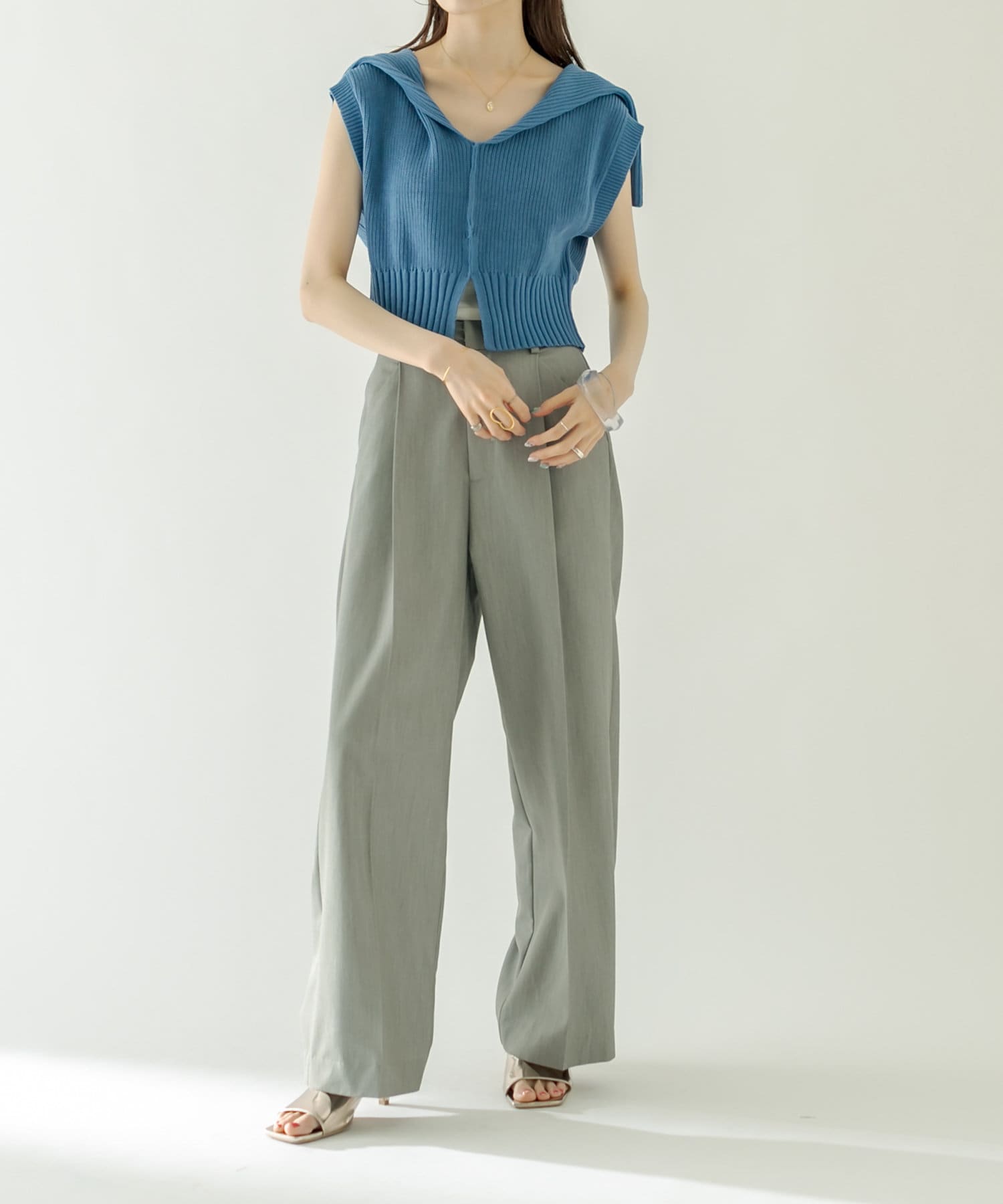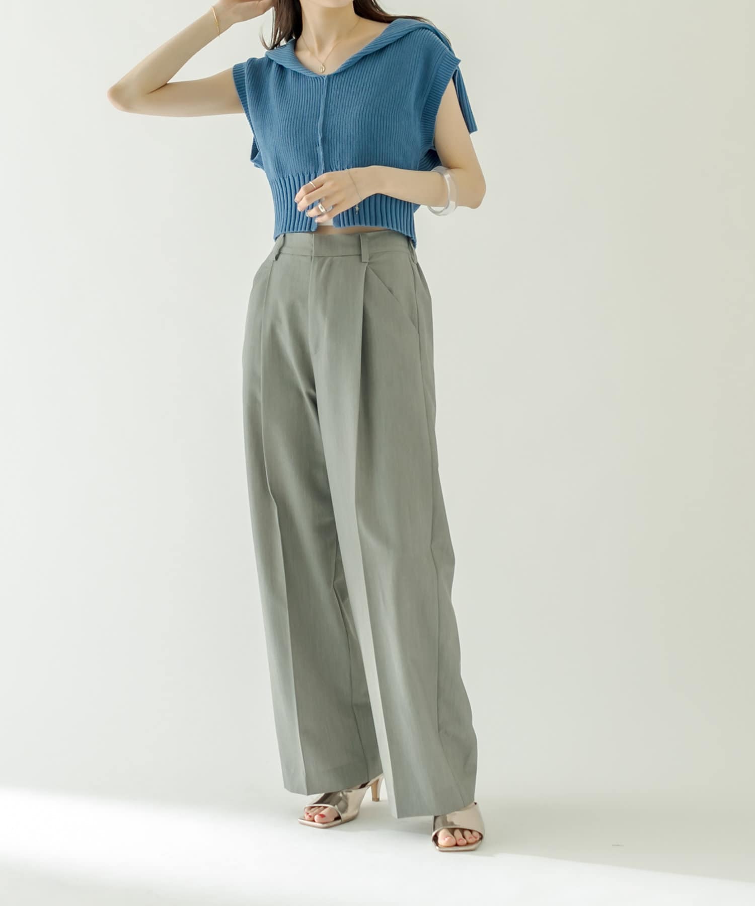 オススメです!ハイウエストパンツに合わせてよりスタイルアップに見せると◎