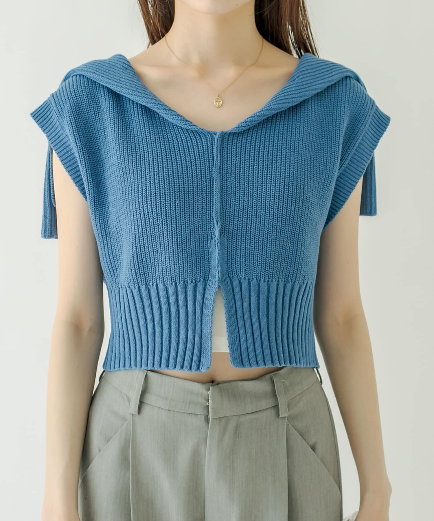 着回し抜群!トレンドのセーラー衿が目を惹くベスト!