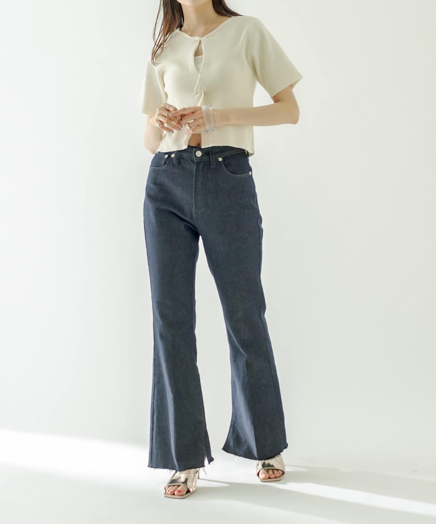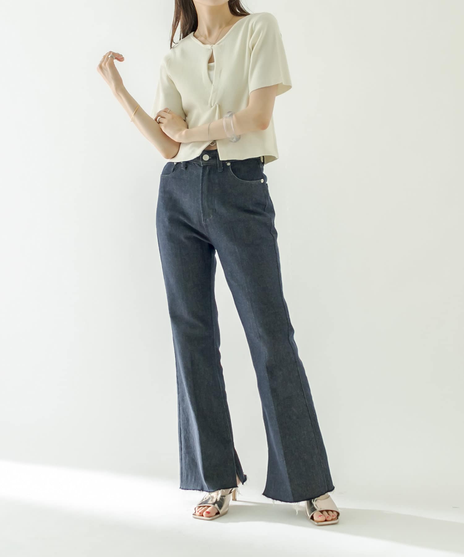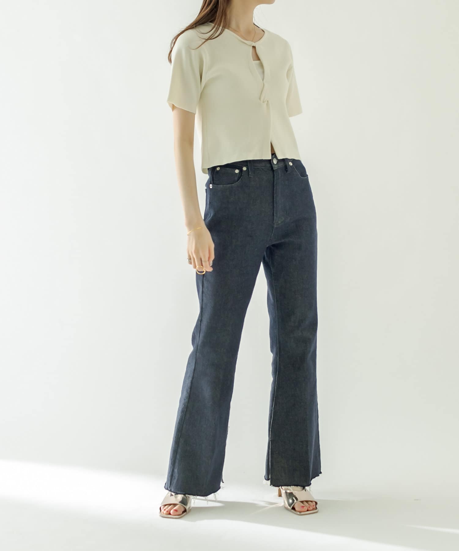 ・ハイウエストボトムに合わせてスタイルアップに。