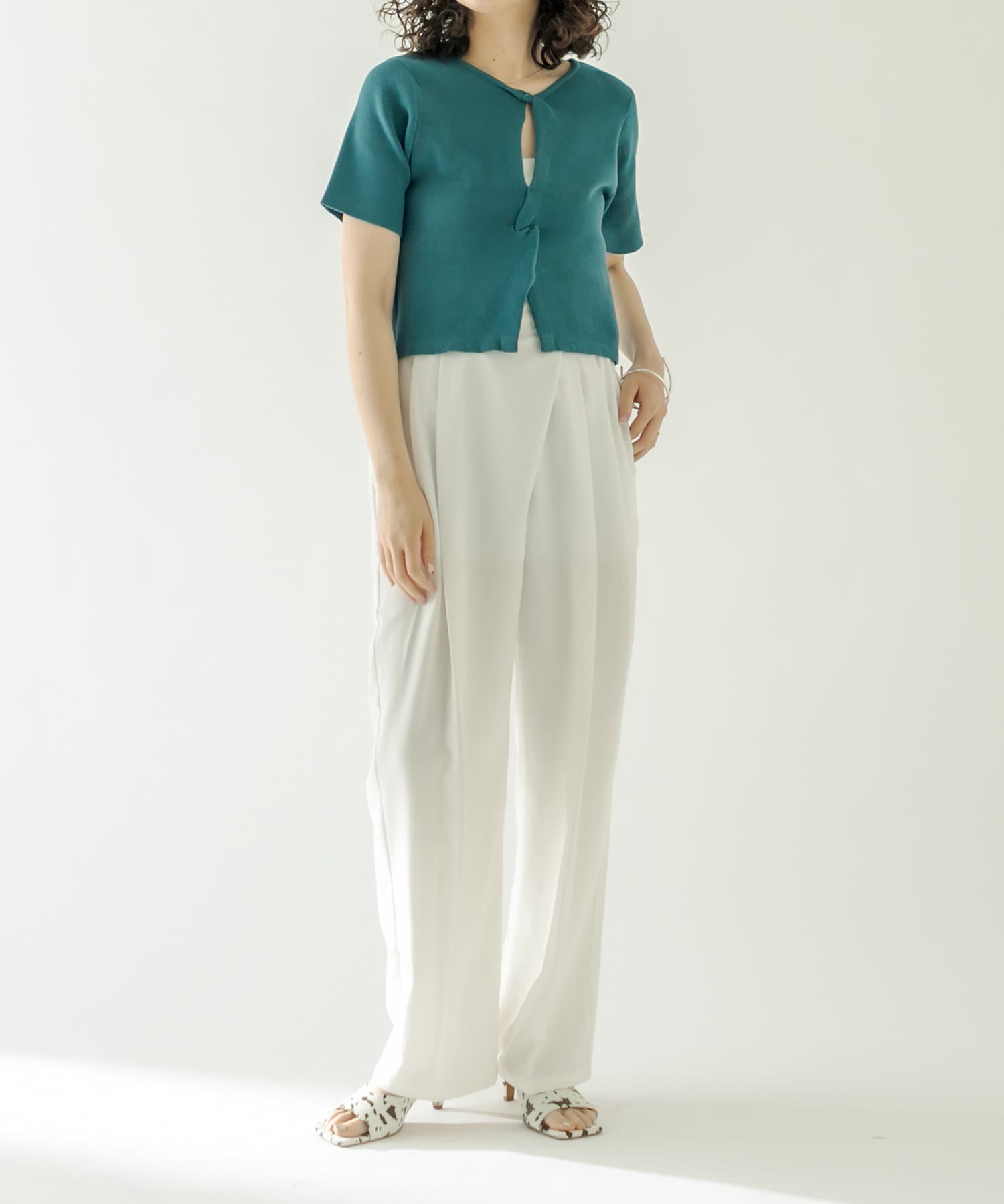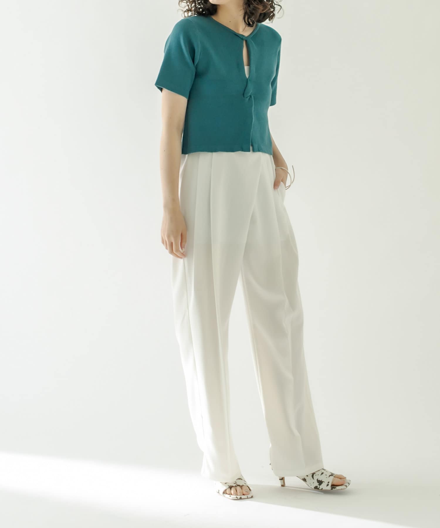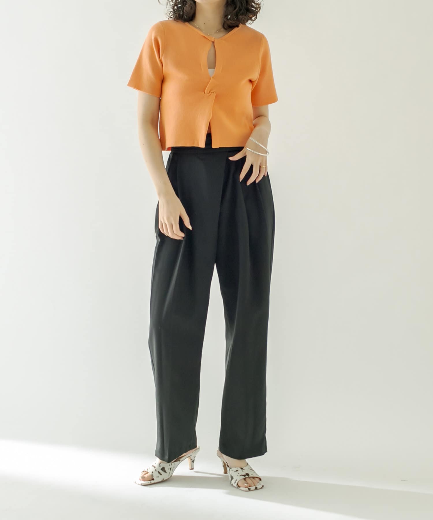 ・ハイウエストボトムに合わせてスタイルアップに。